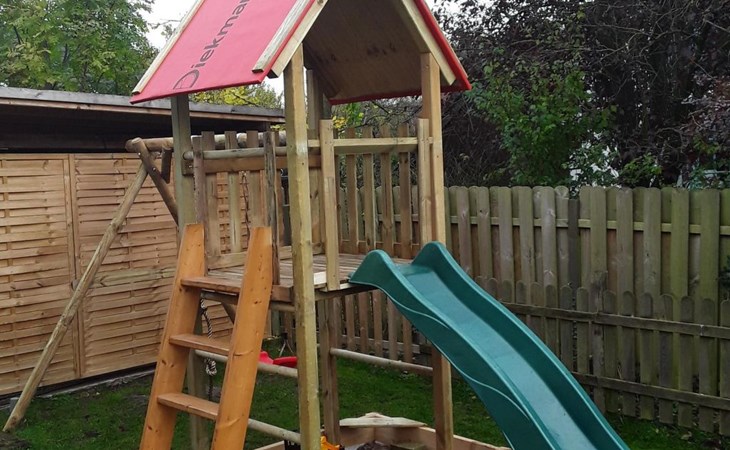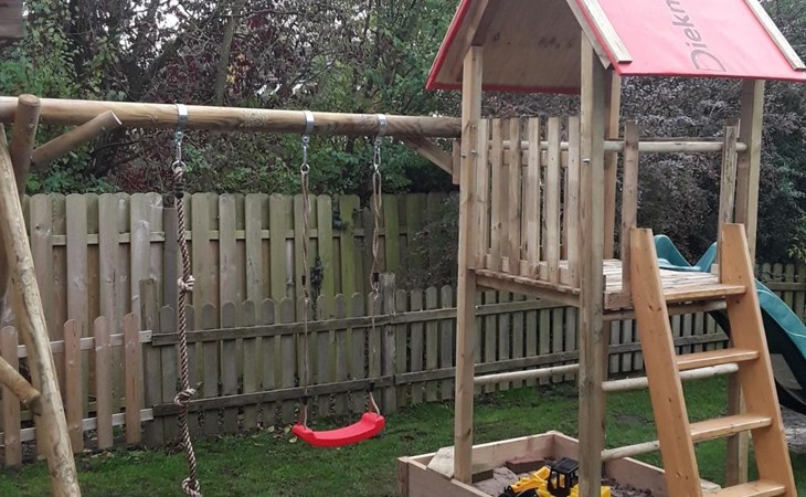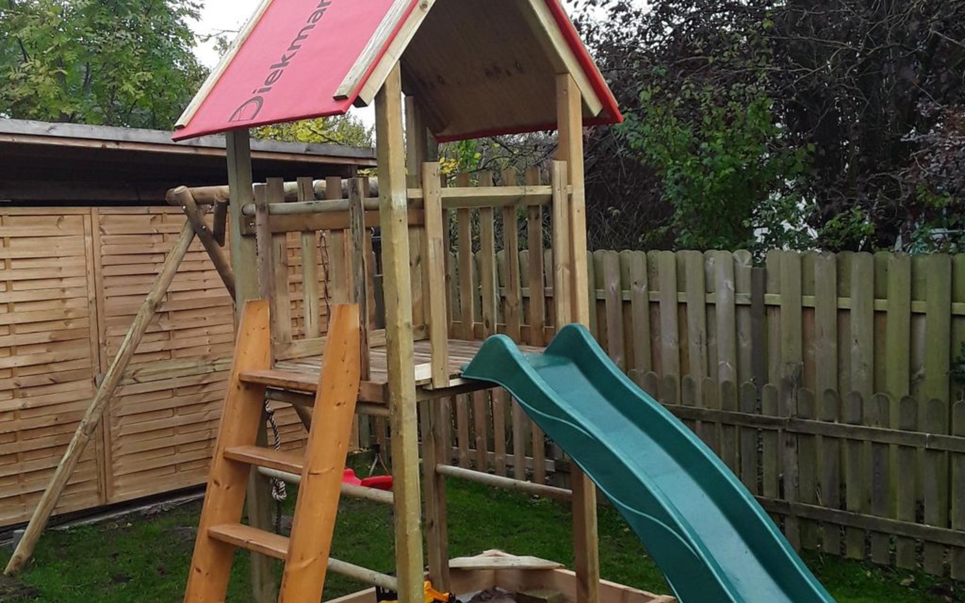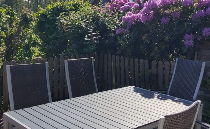 Der Außenbereich des Ferienhauses ist ebenso ansprechend gestaltet. Gäste können es sich auf der Terrasse gemütlich machen oder den zur alleinigen Nutzung bestimmten Garten erkunden, der komplett eingezäunt ist und sicherheit für mitgebrachte Hunde bietet. Für bis zu 5 Hunde ist genügend Platz vorhanden. Ein überdachter Fahrradabstellplatz und ein kinderfreundlicher Spielplatz im Garten erhöhen den Freizeitwert des Angebots noch weiter.