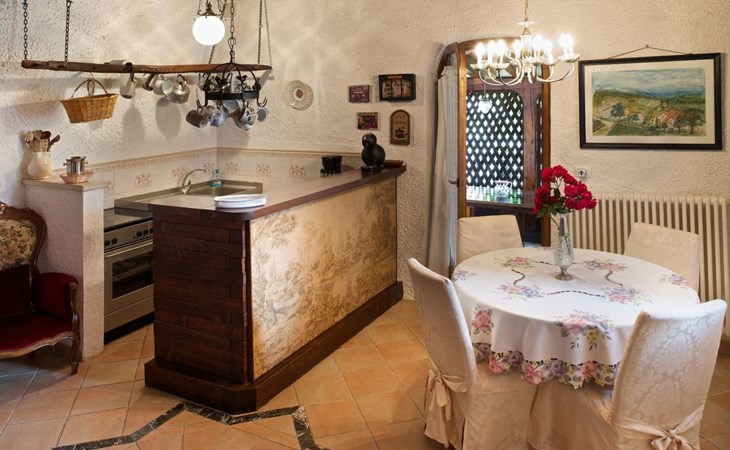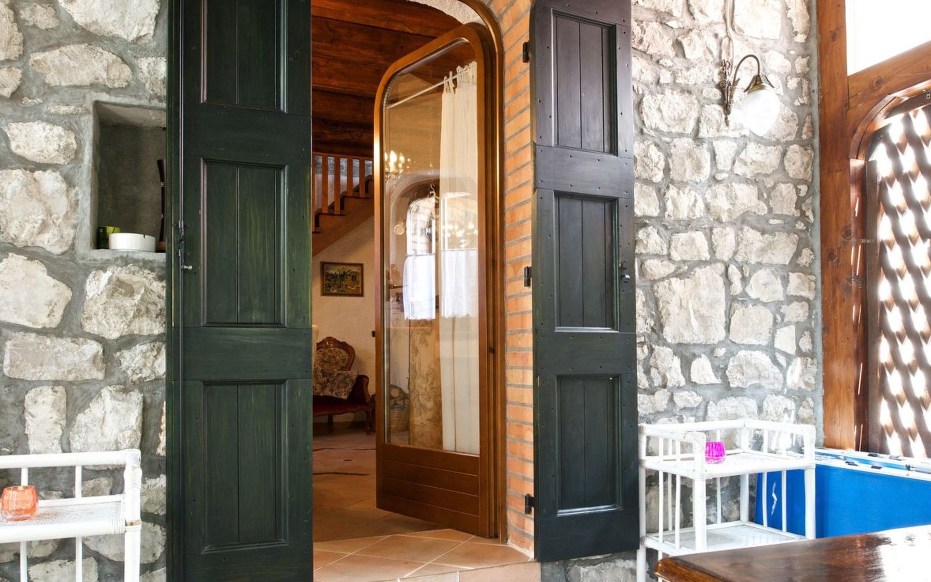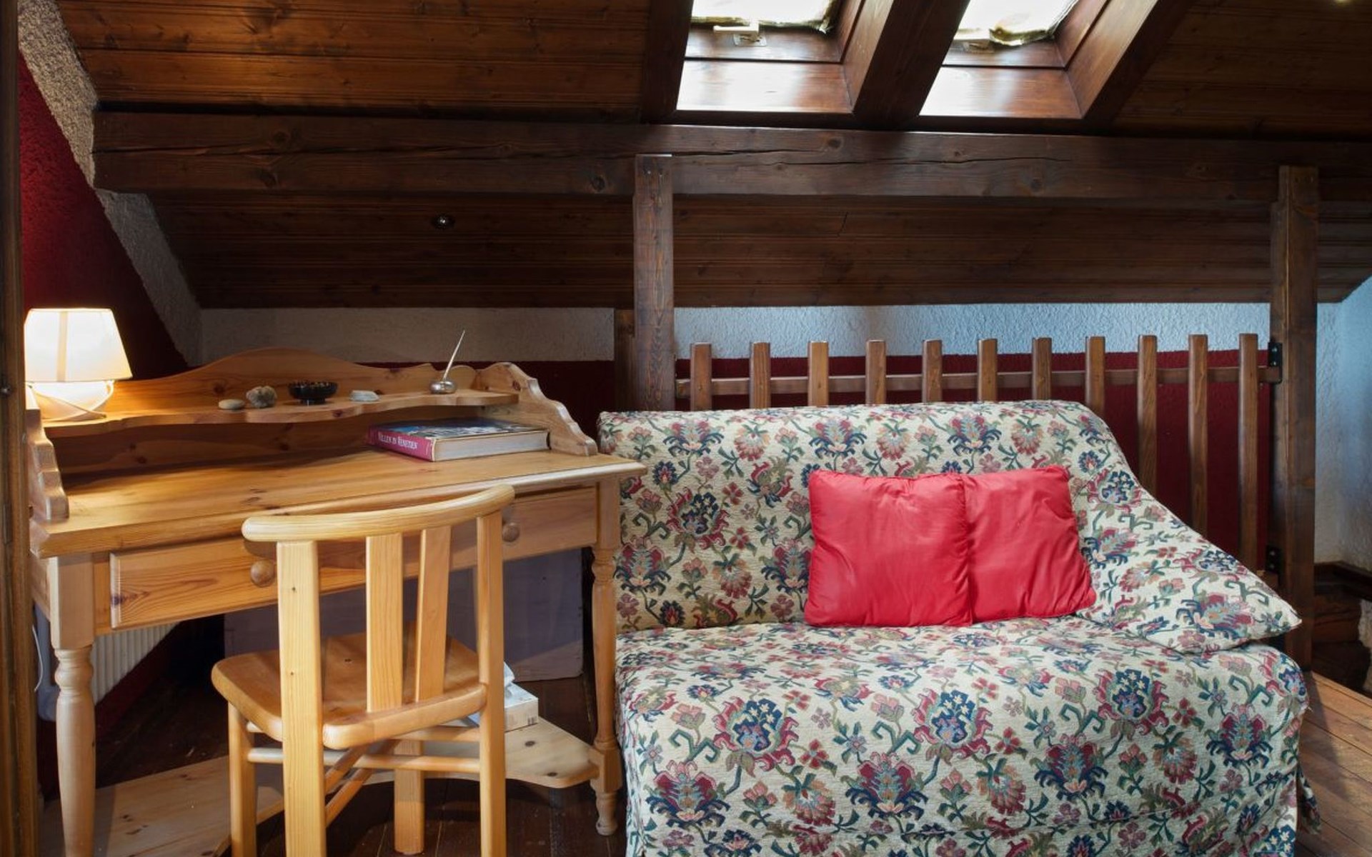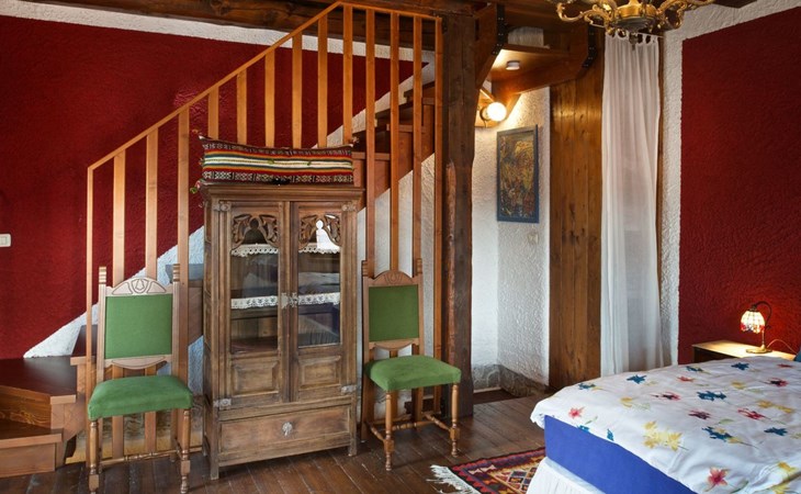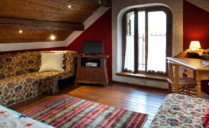 Das Innenleben dieses dreistöckigen Schmuckstücks ist ein wahres Erlebnis. Im Erdgeschoss verspricht das rustikal eingerichtete Wohn-Esszimmer mit offener Küche und Kamin gemütliche Stunden. Ein Highlight ist das luxuriöse Badezimmer mit Badewanne, Dusche und Jacuzzi sowie der angrenzende Wintergarten, der zum Essen einlädt. Letzterer schafft mit seiner liebevollen Einrichtung eine warme Atmosphäre. In der ersten Etage befindet sich ein großzügiges Schlafzimmer, das mit einem großen Doppelbett, Kleiderschrank, Kommode und TV ausgestattet eine herrliche Aussicht auf die Berge bietet. Die zweite Etage dient als weiteres Wohnzimmer mit umwandelbaren Einzelbetten, einem zusätzlichen Kinderbett und einer gemütlichen Fernsehecke.