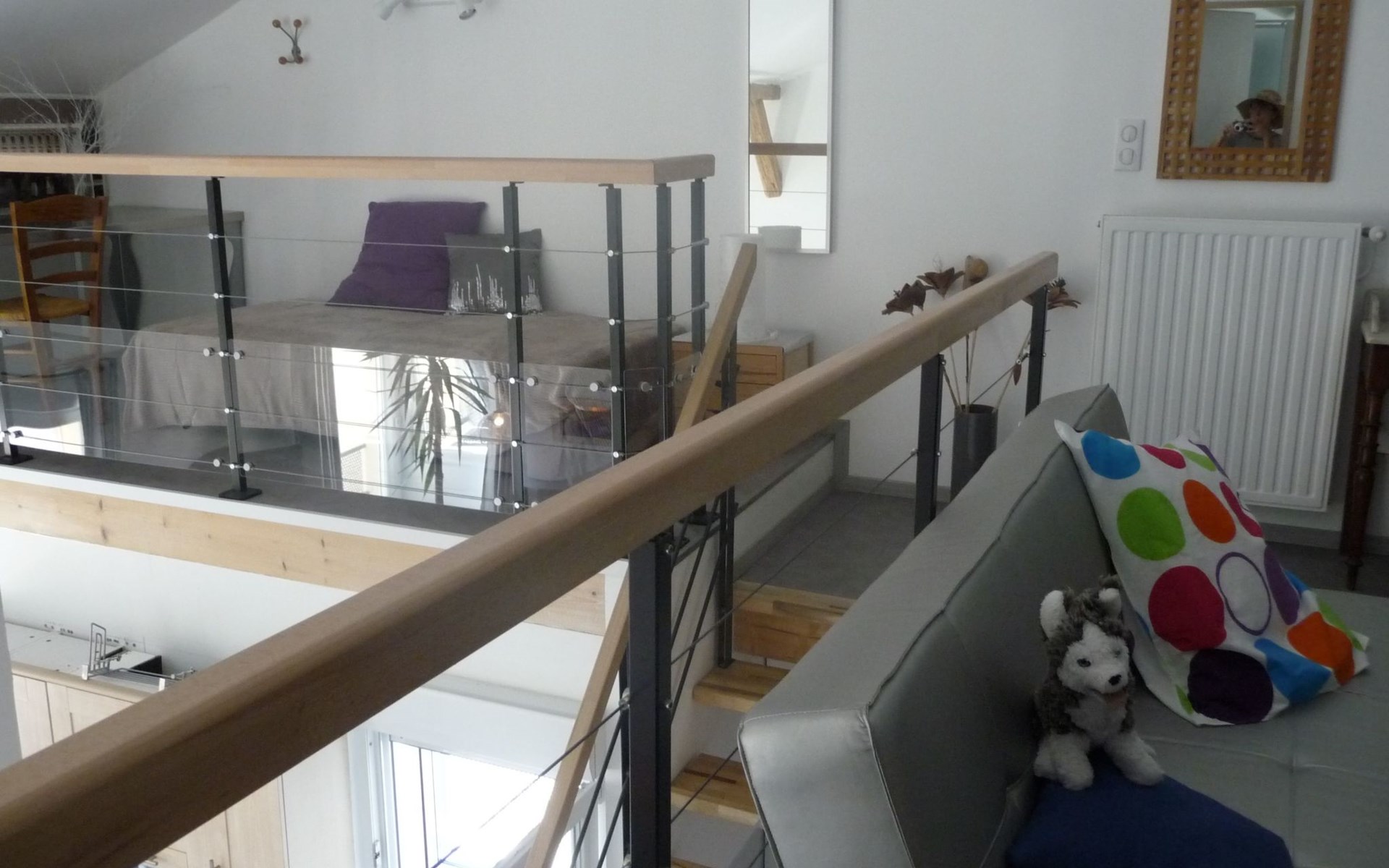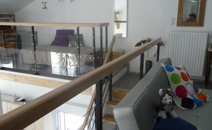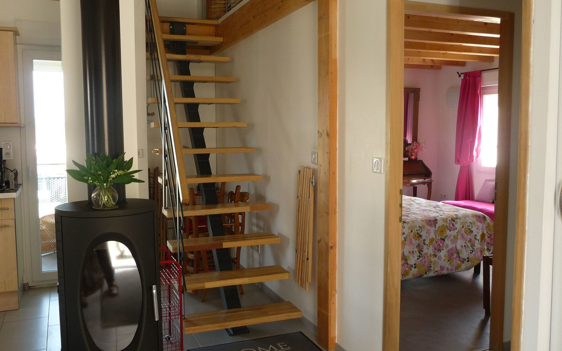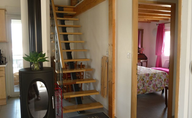 Die Wohnung besteht aus- im ersten Stock:einem Hauptraum mit einer voll ausgestatteten Küche und einem Wohnbereich, der auf eine Loggia führt, die wiederum auf das Tal führt, einem Schlafzimmer (mit einem Bett von 160 x 200 cm), einem Duschbad und einem separaten WC - im zweiten Stock: einem Schlafzimmer im Zwischengeschoss (20 m2) mit Duschbad und WC.