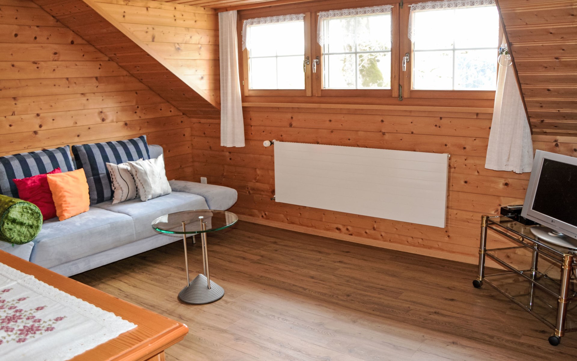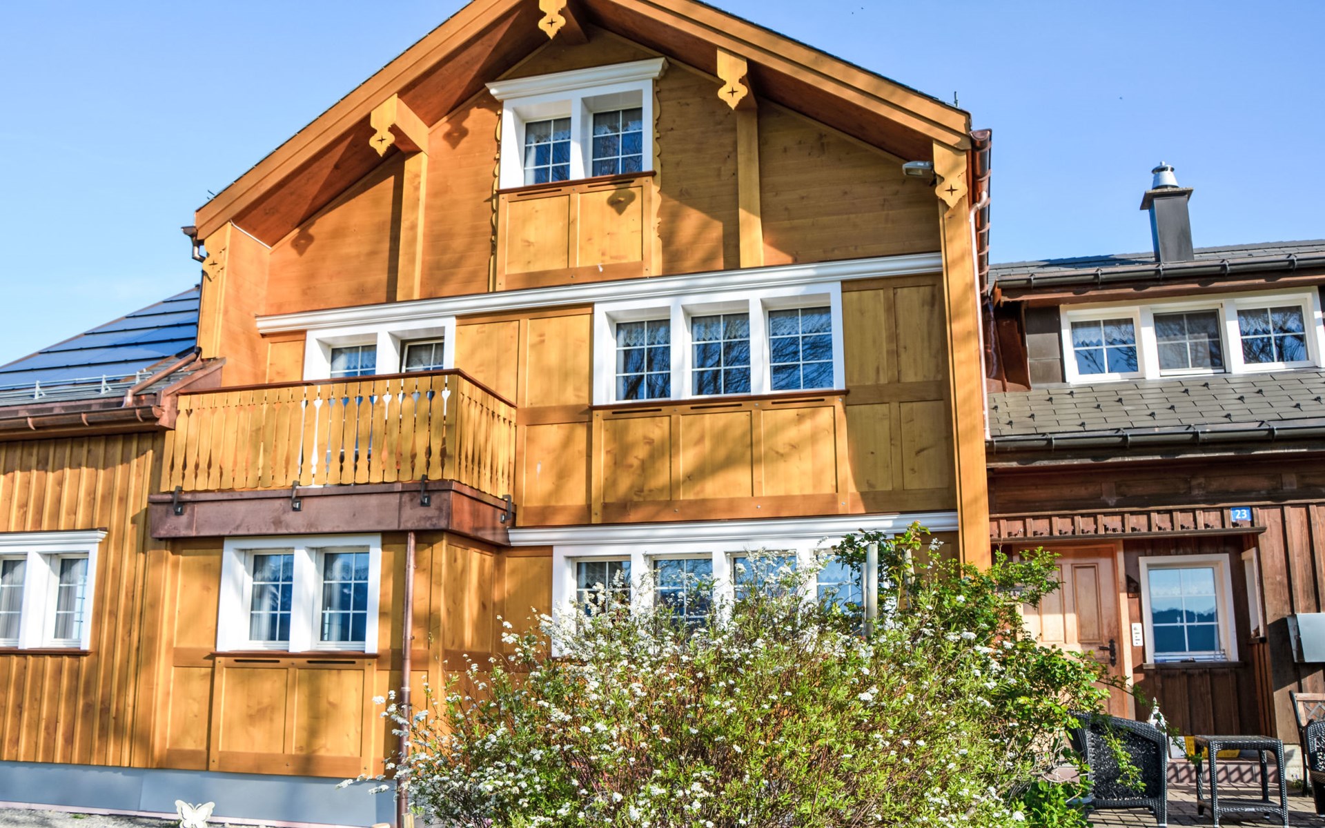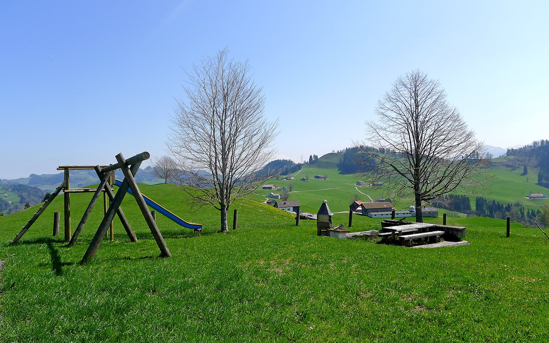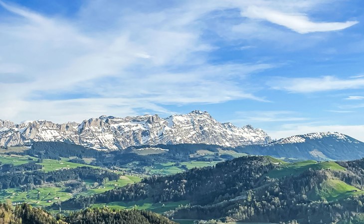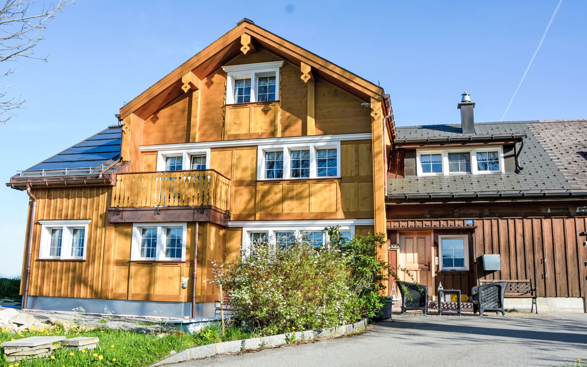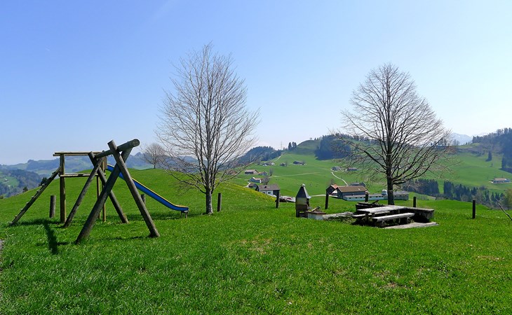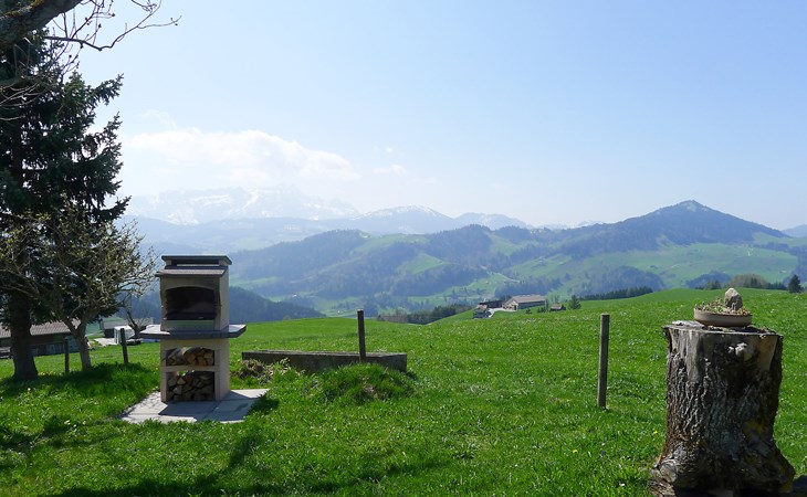 Haslen AI 6 km von Appenzell: Gemütliches, komfortables Bauernhaus "Panoramablick", 1'000 m.ü.M., Baujahr 2024, umgeben von Wiesen und Feldern. Oberhalb von Haslen AI, 3 km vom Zentrum, alleinstehende, ruhige, sonnige Lage auf einem Hügel, 26 km vom See, 12 km vom Skigebiet, im Grünen, Richtung Süden. Zur Mitbenutzung: grosser Garten mit Rasen und Pflanzen, Naturgarten. Sitzplatz, Feuerstelle, Kinderspielplatz. Im Hause: Einstellraum für Fahrräder, Skiraum, Zentralheizung, Waschmaschine, Wäschetrockner (zur Mitbenutzung, extra). Zufahrt bis zum Haus, im Winter bis 200 m (Bergstrasse). Im Winter bitte Schneeketten mitbringen, im Winter 4x4 empfohlen. Parkplatz beim Haus, im Winter 200 m. Einkaufsgeschäft 6 km, Lebensmittelgeschäft 6 km, Supermarkt 6 km, Restaurant 300 m, Bäckerei 6 km, Bushaltestelle "Haslen AI, Dorf" 3 km, Bahnstation "Teufen AR" 6 km, Freibad 6 km, Hallenbad 6 km. Luftseilbahn 12 km, Skilift 12 km, Skipisten 12 km, Schlittelbahn 6 km. Nahe gelegene Sehenswürdigkeiten: Appenzell 6 km. Bekannte Skigebiete sind gut erreichbar: Kronberg 12 km, Ebenalp 14 km, Schwägalp 25 km. Wandergebiete: Alpstein, Säntis. Bitte beachten: Fahrzeug empfohlen. Der Besitzer wohnt im selben Haus. Gästekarte Appenzell inbegriffen: freie Fahrt in Bahn/Bus, ausgewählte Bergbahnen, Gratis Eintritt Museum, Hallenbad, etc.