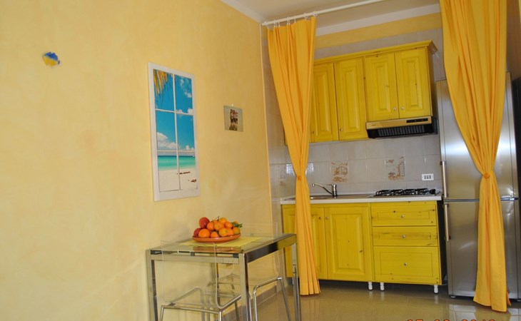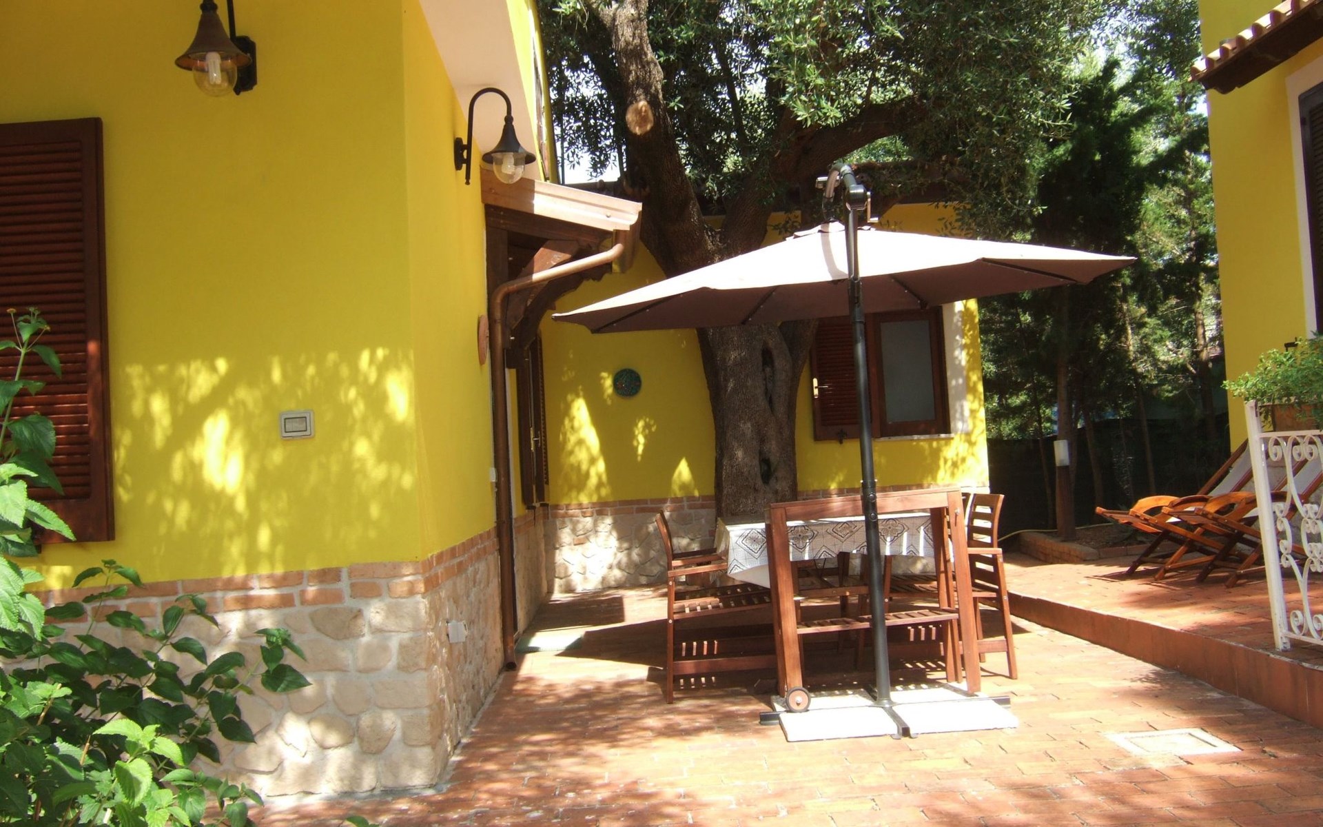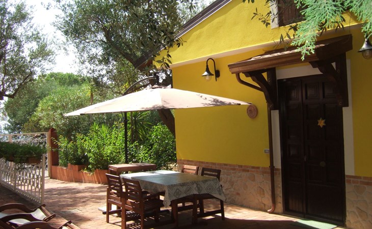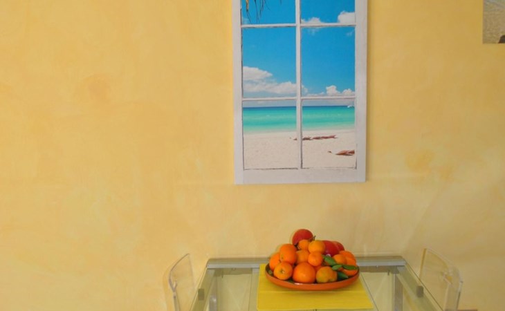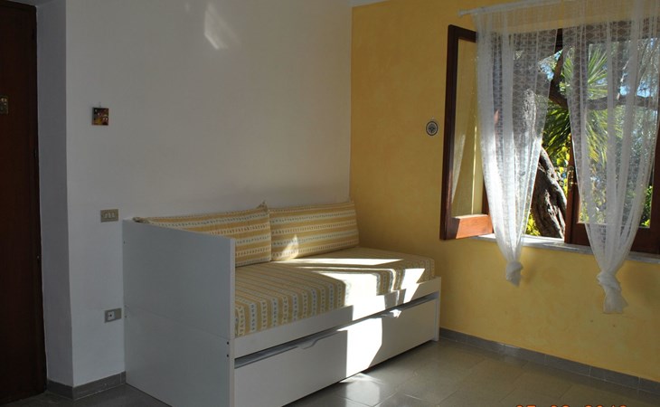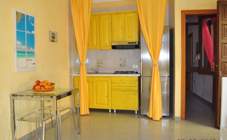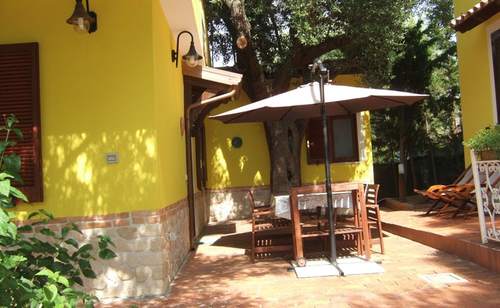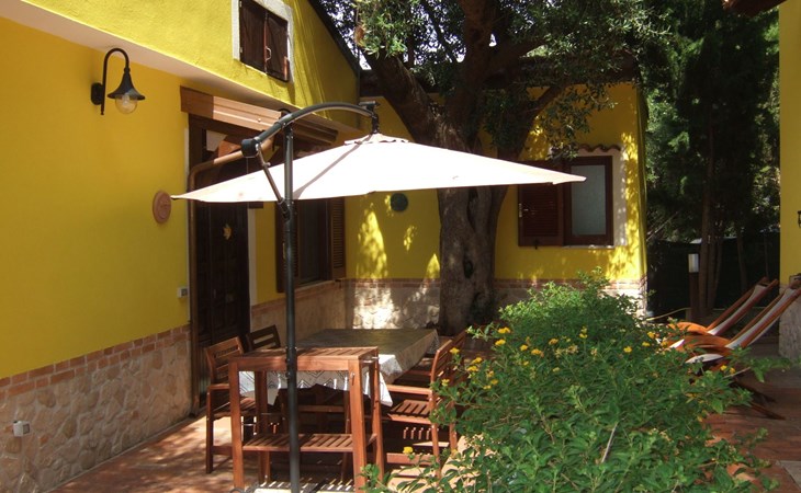 Die Wohnung besteht aus einem Schlafzimmer mit Doppelbett, ein Badezimmer mit Dusche und ein Wohnzimmer mit Kochnische und Schlafsofa für zwei Erwachsene. Die Wohnung hat einen großen Außenbereich zur alleinigen Nutzung im Schatten eines jahrhundertealten Olivenbaums, wo man frühstücken, zu Mittag und zu Abend essen kann.