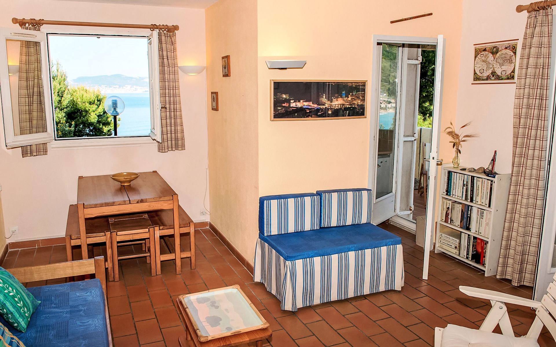 La Madrague 2 km von Saint Cyr Sur Mer: Residenz "Mas de la Madrague", umgeben von Bäumen. Oberhalb von La Madrague, ruhige, erhöhte Lage auf einem Hügel, 300 m vom Meer, 300 m vom Strand, in einer Sackgasse. Parkplatz (beschränkte Anzahl), öffentliche Parkplätze auf der Strasse. Supermarkt 2.5 km, Restaurant 400 m, Bushaltestelle "Le Viguier" 2.6 km, Bahnstation "Saint Cyr les Lecques-La Cadière" 3.8 km, Sandstrand 500 m, Steinstrand 300 m. Golfplatz (18 Loch) 3.5 km. Nahe gelegene Sehenswürdigkeiten: Aqualand 3 km. Wandergebiete: Sainte Beaume, Sainte Victoire, Calanques Port-Cros, Porquerolles, Ile verte, Embiez, Figuerolles, Cassis. Bitte beachten: Die Residenz wird durch elektrische Tore geschlossen. Weitere Unterkünfte sind buchbar. Das Lebensmittelgeschäft, das 100 m entfernt liegt, ist vom 01.05. bis am 30.09. geöffnet. Zahlreiche Schritte in der Residenz.