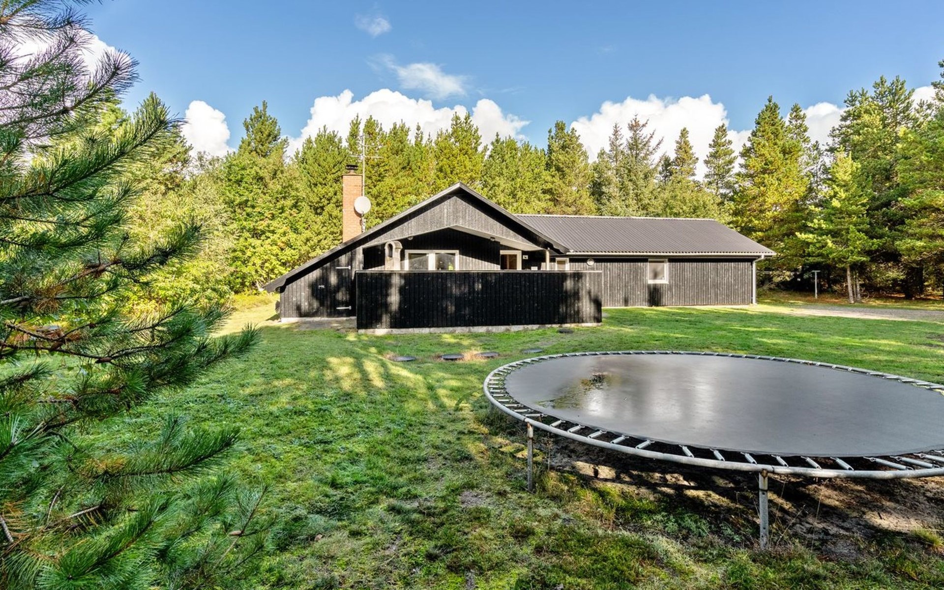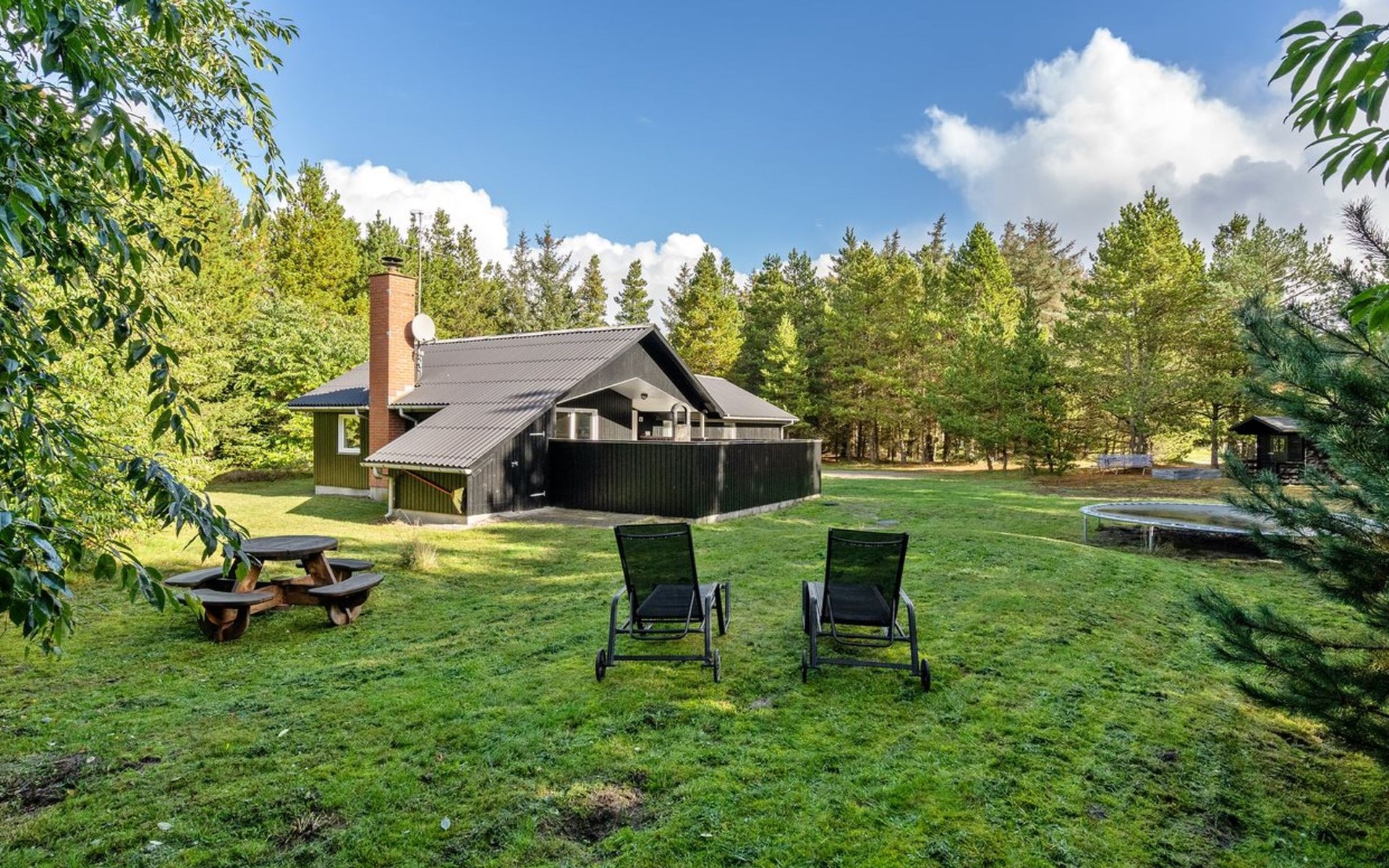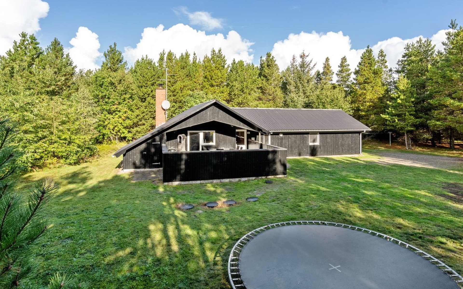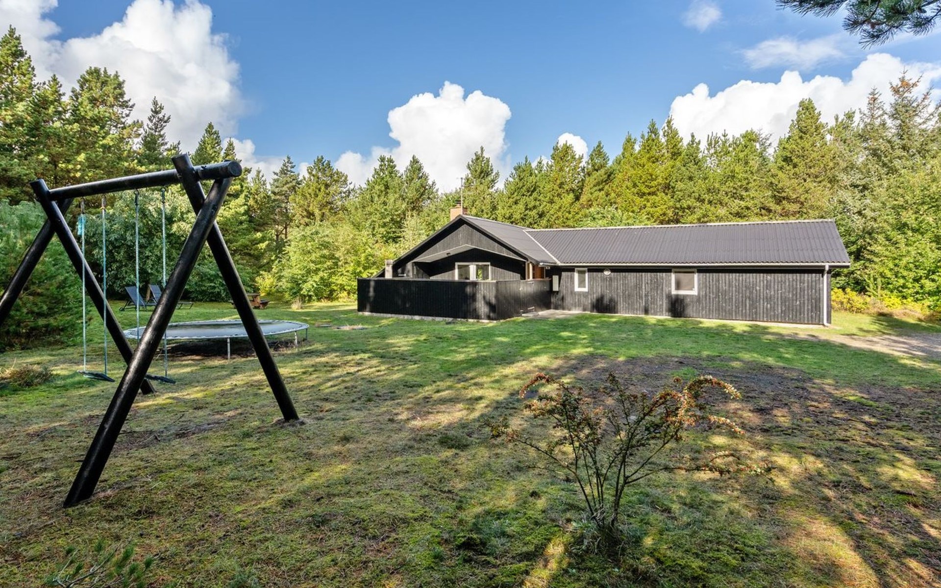Einfamilienhaus, Baujahr 1999. 900 m vom Meer. Zur Alleinbenutzung: naturbelassenes Grundstück 2'500 m2. Terrasse (15 m2), Kinderspielplatz (Schaukel). Im Hause: Sauna, Waschmaschine, Wäschetrockner. Parkplatz beim Haus. Lebensmittelgeschäft 1.8 km. Golfplatz 90 m.