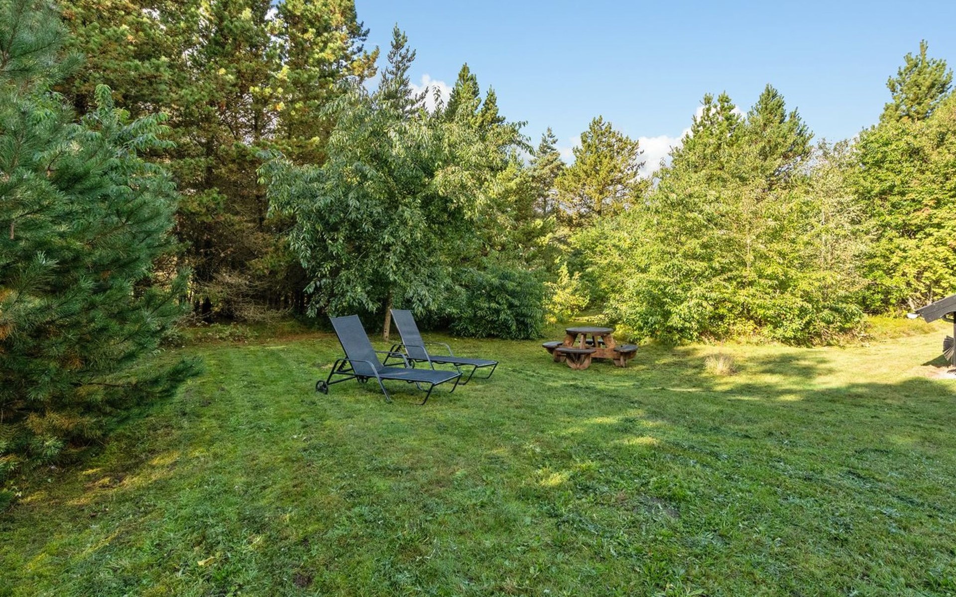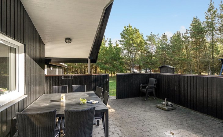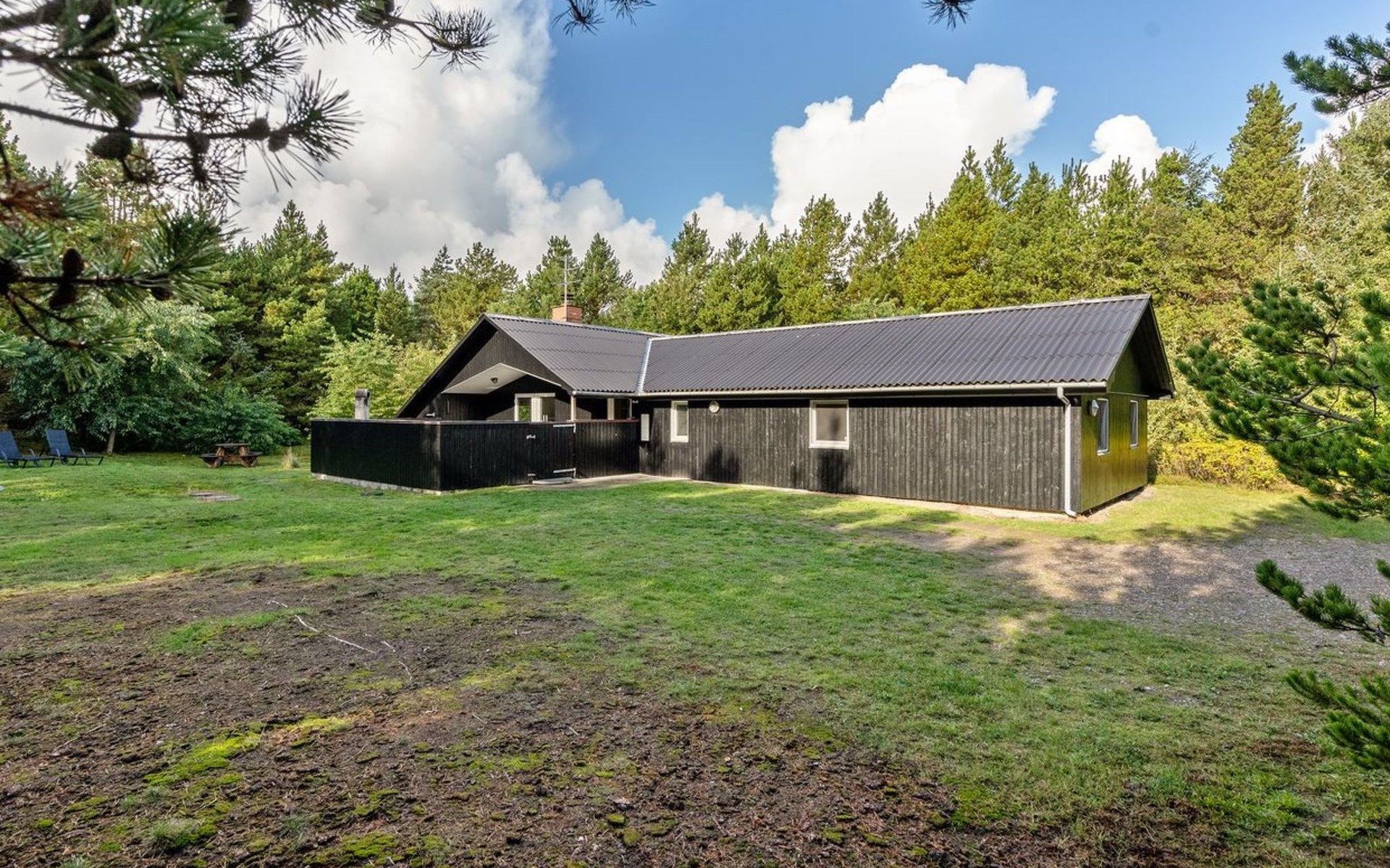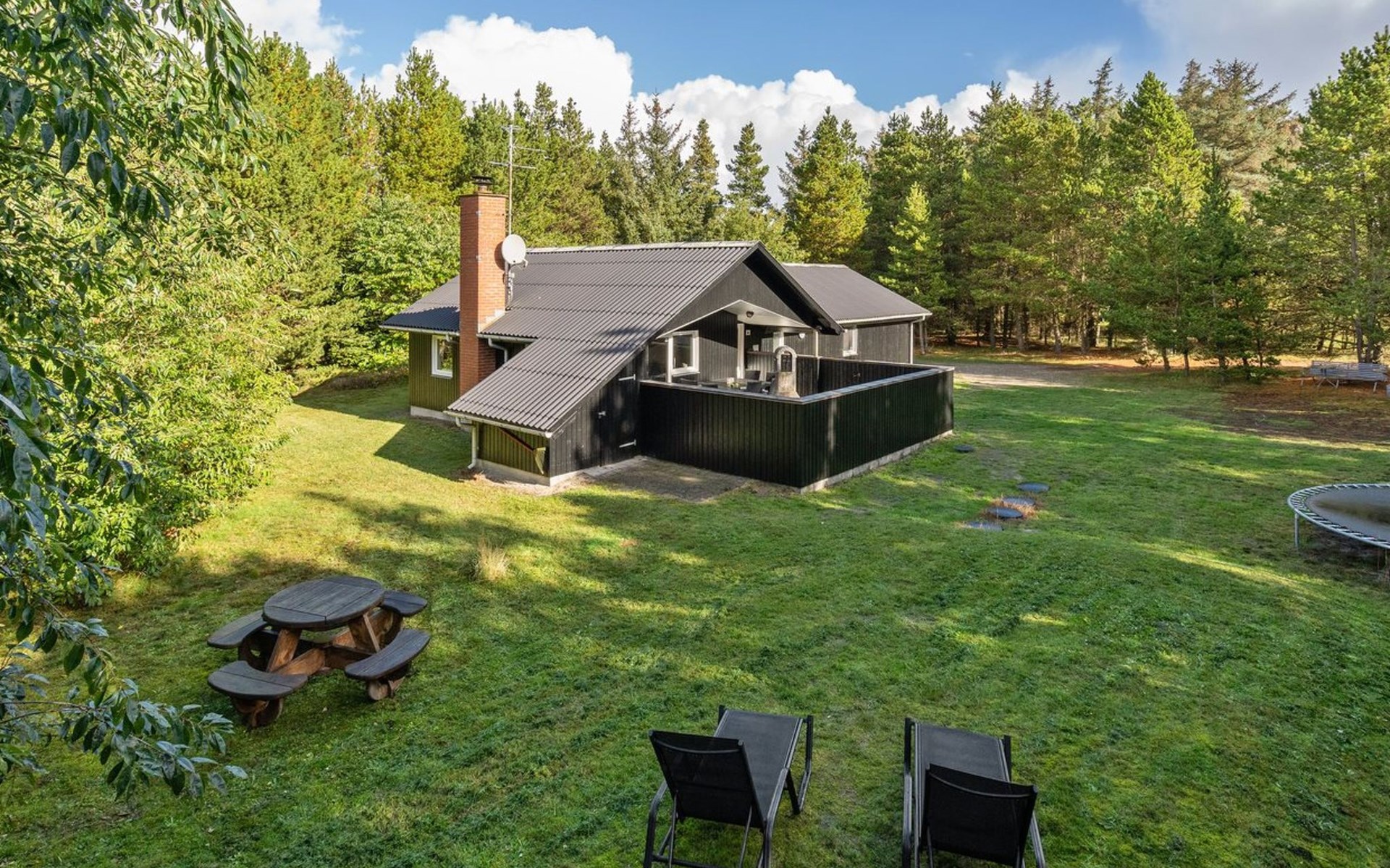 Einfamilienhaus, Baujahr 1999. 900 m vom Meer. Zur Alleinbenutzung: naturbelassenes Grundstück 2'500 m2. Terrasse (15 m2), Kinderspielplatz (Schaukel). Im Hause: Sauna, Waschmaschine, Wäschetrockner. Parkplatz beim Haus. Lebensmittelgeschäft 1.8 km. Golfplatz 90 m.