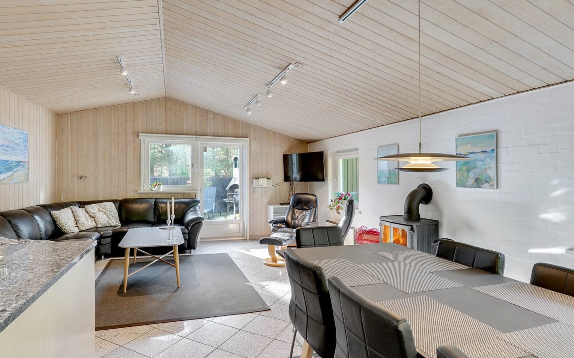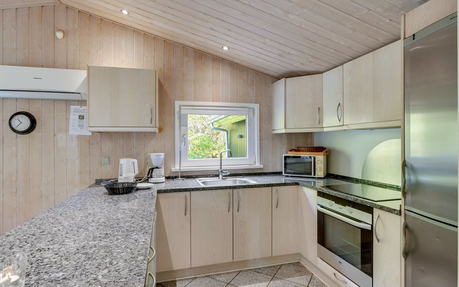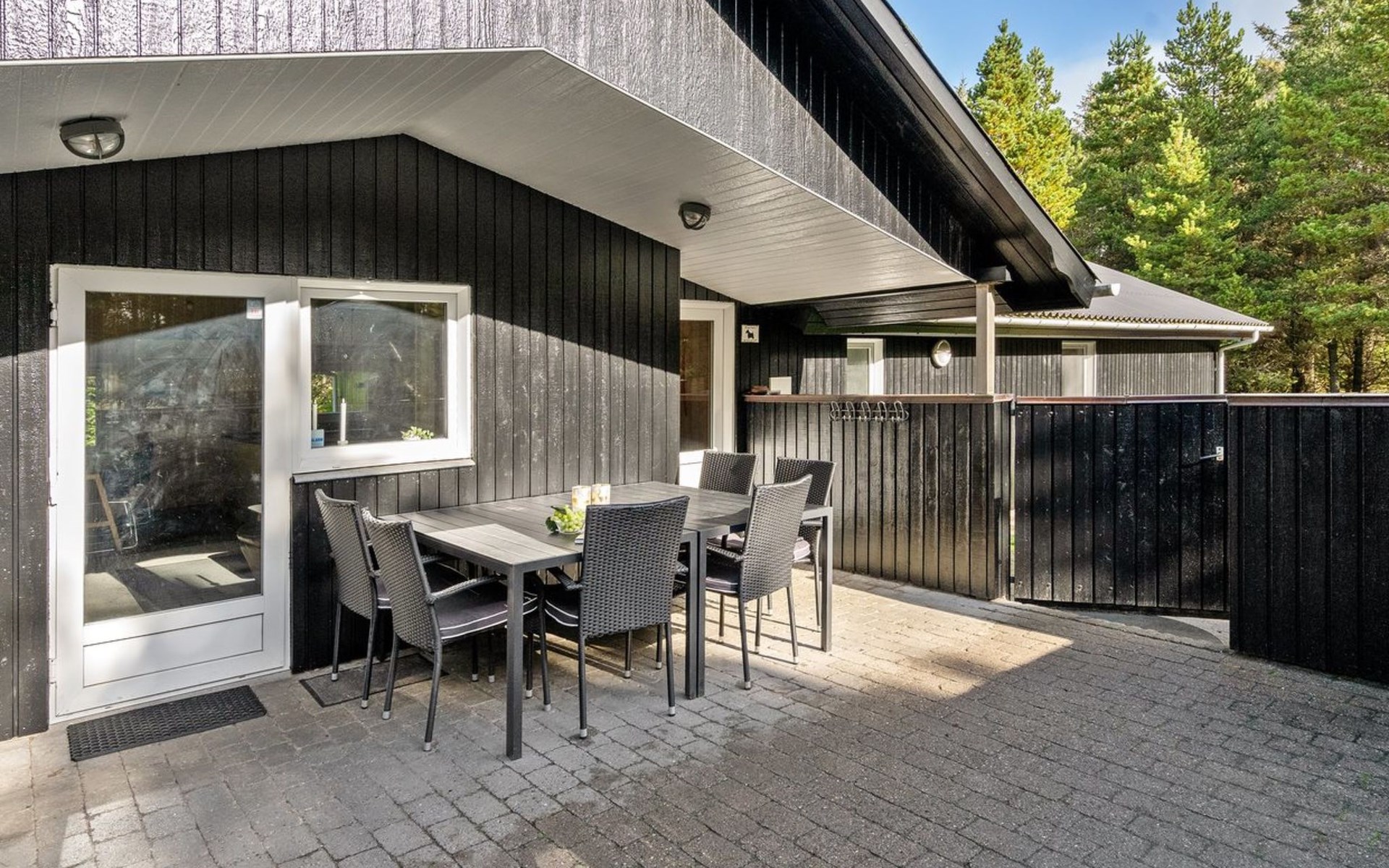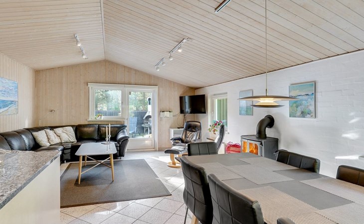Einfamilienhaus, Baujahr 1999. 900 m vom Meer. Zur Alleinbenutzung: naturbelassenes Grundstück 2'500 m2. Terrasse (15 m2), Kinderspielplatz (Schaukel). Im Hause: Sauna, Waschmaschine, Wäschetrockner. Parkplatz beim Haus. Lebensmittelgeschäft 1.8 km. Golfplatz 90 m.