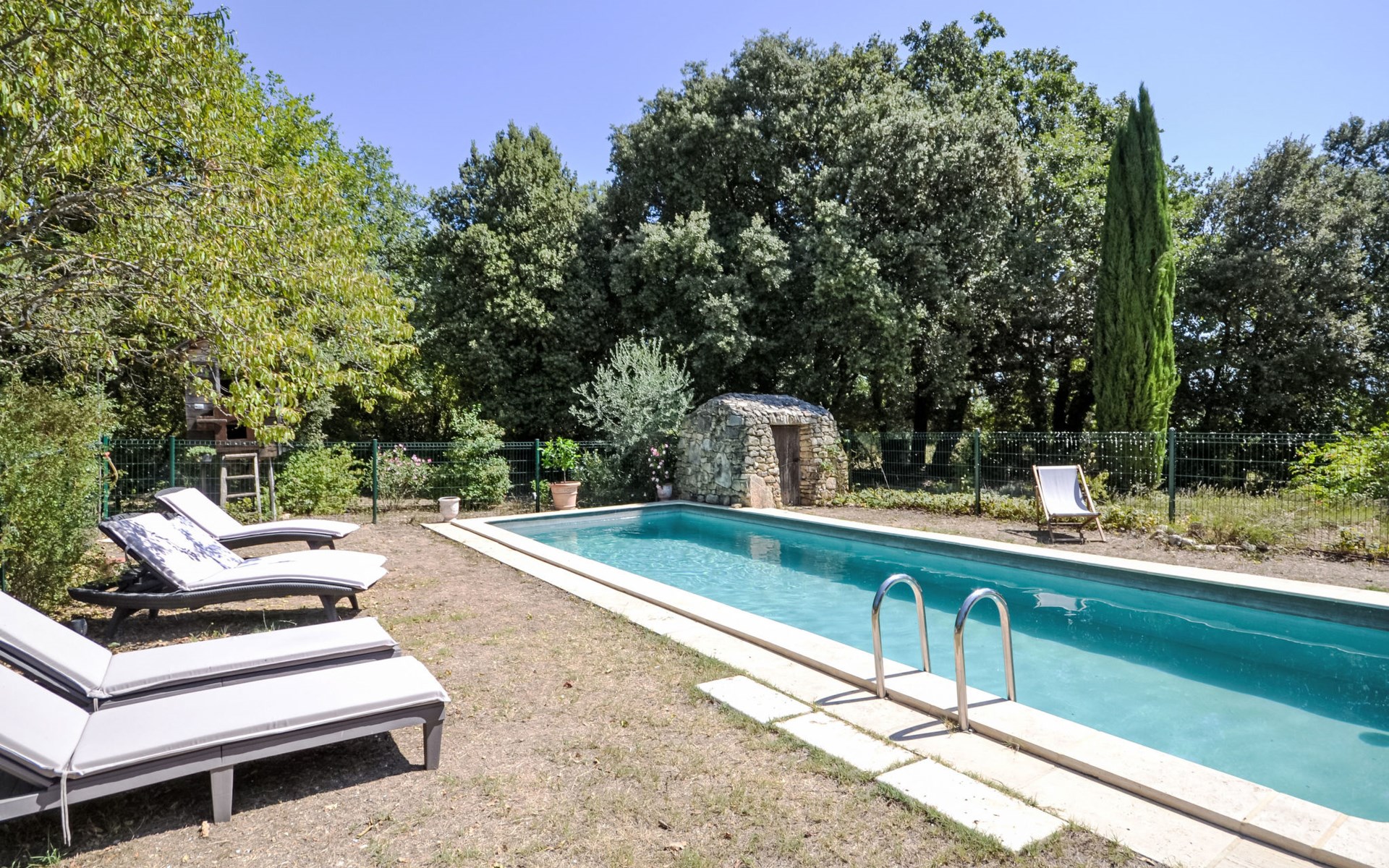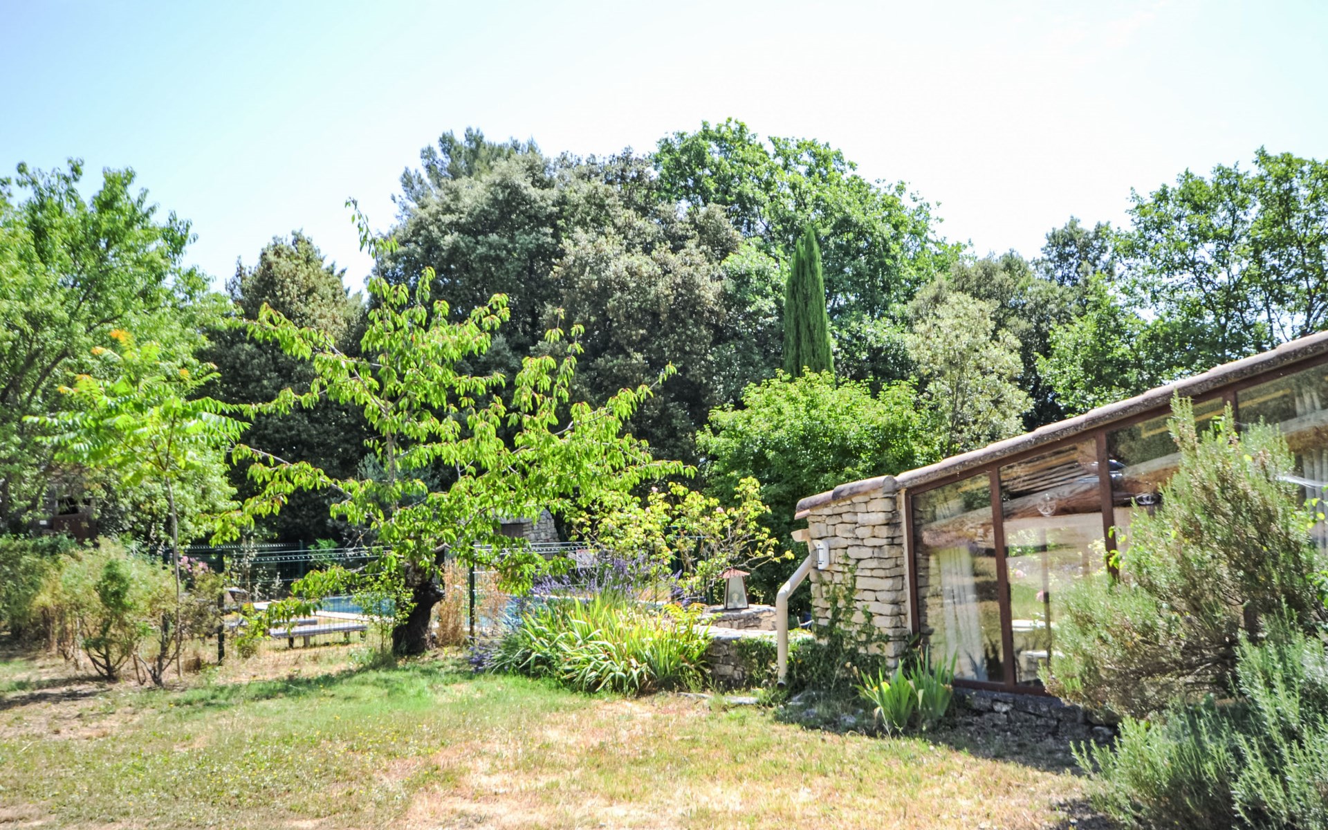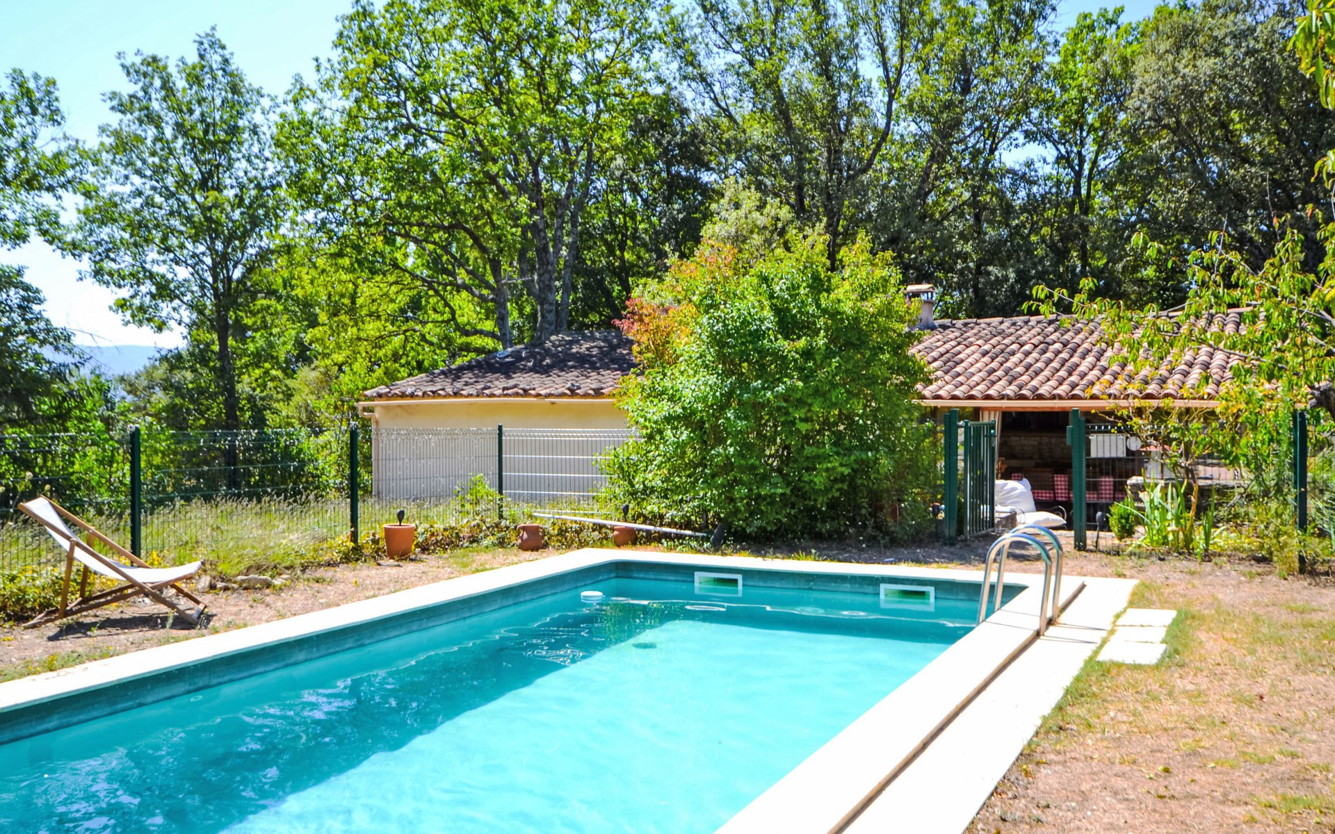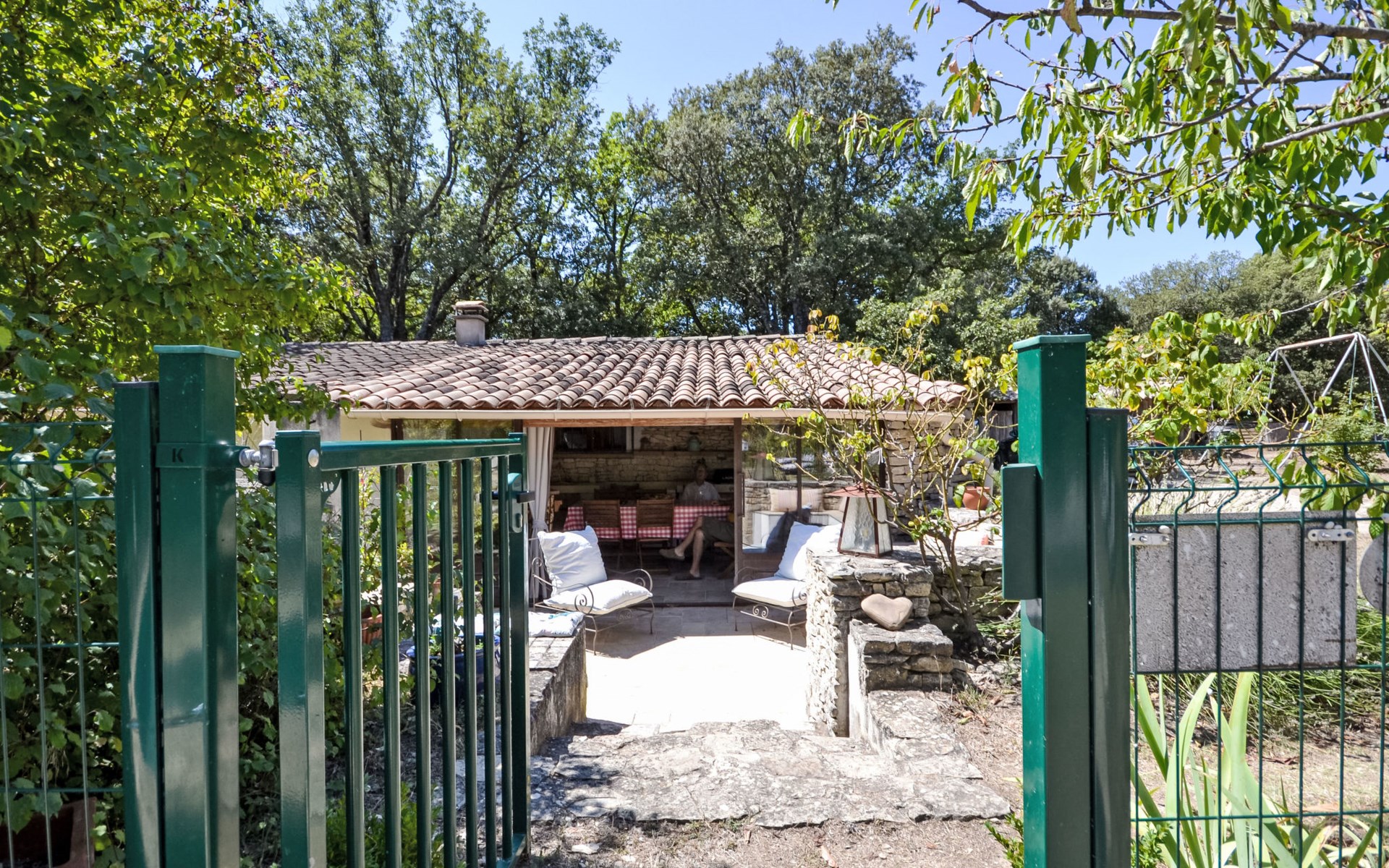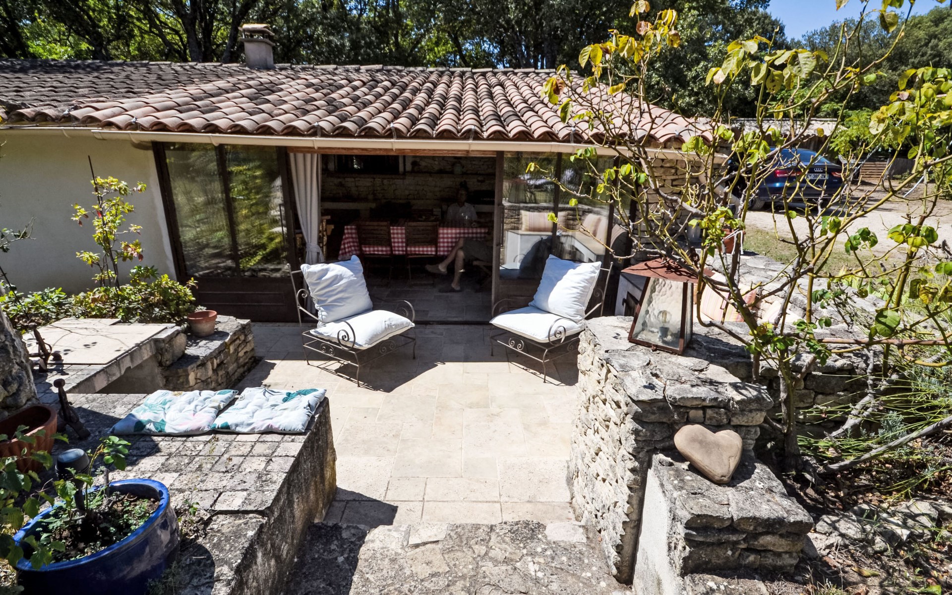 Mas/Landhaus "Le Bois d'Amour", Baujahr 1900, renoviert, umgeben von Bäumen. Ausserhalb des Ortes, 2.5 km vom Zentrum von d'Apt, ruhige Lage, 100 m vom Waldrand, Richtung Nordosten. Zur Alleinbenutzung: Grundstück 2'500 m2 (eingezäunt) mit Blumen und Bäumen, Schwimmbad eingezäunt (10 x 4 m, 150 cm tief, saisonale Verfügbarkeit: 01.Mai. - 15.Okt.) mit Alarmanlage. Aussendusche, Terrasse, Gartenmöbel. Zufahrt bis zum Haus (50 m Naturweg). Parkplatz auf dem Grundstück. E-Ladestation. Einkaufsgeschäft 4 km, Lebensmittelgeschäft 4 km, Restaurant 4 km, Bäckerei 4.8 km, Fahrradverleih 4.3 km, Bushaltestelle "Gare Routière" 5 km, See Plan d'eau d'Apt 6.4 km. Golfplatz (9 Loch) 5.2 km, Kinderspielplatz 5 km. Nahe gelegene Sehenswürdigkeiten: Colorado de Rustrel 10 km, Les Ocres de Roussillon 11 km, Village classé de Gordes 10 km, Simiane La Rotonde 24 km, Avignon 54 km. Wandergebiete: Parc Régional des Alpilles 30 km, Forêt des Cèdres 22 km, Parc Régional du Luberon 10 km. Bitte beachten: Fahrzeug empfohlen. Die überdachte Terrasse verfügt über eine Spüle, einen kleinen Kühlschrank und eine elektrische Grillplatte.