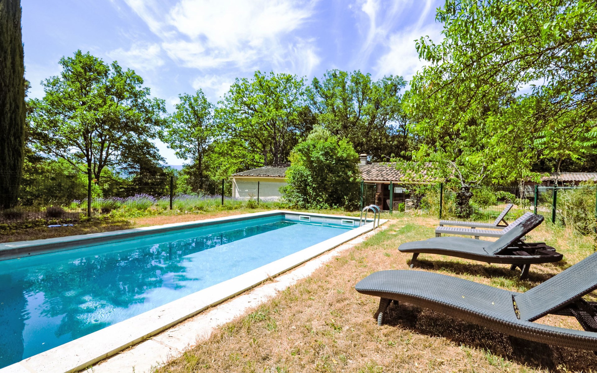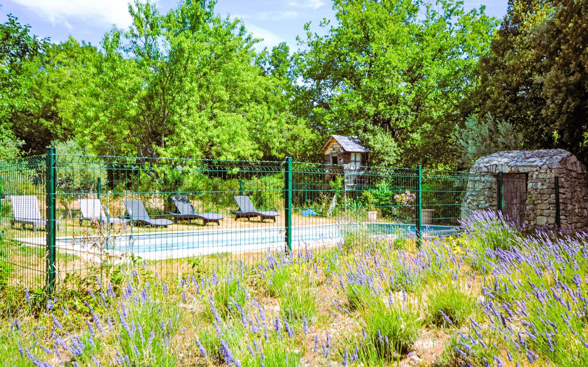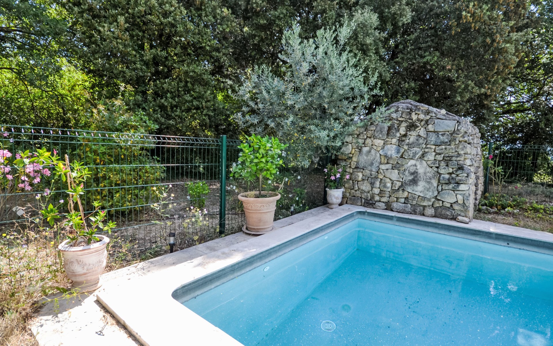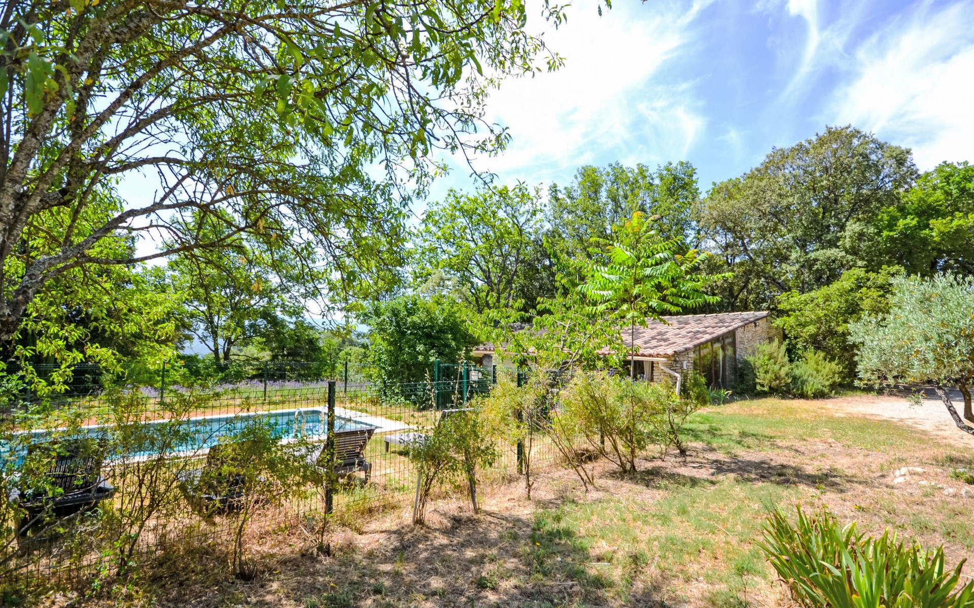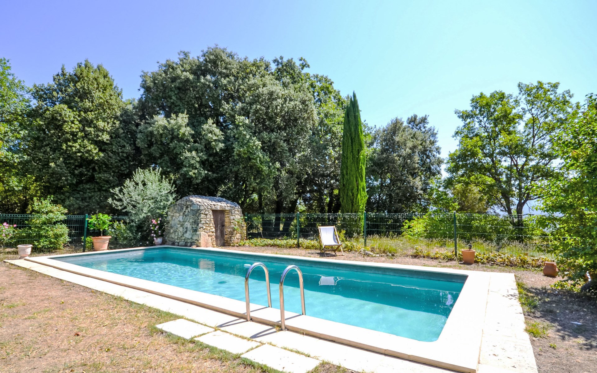 Mas/Landhaus "Le Bois d'Amour", Baujahr 1900, renoviert, umgeben von Bäumen. Ausserhalb des Ortes, 2.5 km vom Zentrum von d'Apt, ruhige Lage, 100 m vom Waldrand, Richtung Nordosten. Zur Alleinbenutzung: Grundstück 2'500 m2 (eingezäunt) mit Blumen und Bäumen, Schwimmbad eingezäunt (10 x 4 m, 150 cm tief, saisonale Verfügbarkeit: 01.Mai. - 15.Okt.) mit Alarmanlage. Aussendusche, Terrasse, Gartenmöbel. Zufahrt bis zum Haus (50 m Naturweg). Parkplatz auf dem Grundstück. E-Ladestation. Einkaufsgeschäft 4 km, Lebensmittelgeschäft 4 km, Restaurant 4 km, Bäckerei 4.8 km, Fahrradverleih 4.3 km, Bushaltestelle "Gare Routière" 5 km, See Plan d'eau d'Apt 6.4 km. Golfplatz (9 Loch) 5.2 km, Kinderspielplatz 5 km. Nahe gelegene Sehenswürdigkeiten: Colorado de Rustrel 10 km, Les Ocres de Roussillon 11 km, Village classé de Gordes 10 km, Simiane La Rotonde 24 km, Avignon 54 km. Wandergebiete: Parc Régional des Alpilles 30 km, Forêt des Cèdres 22 km, Parc Régional du Luberon 10 km. Bitte beachten: Fahrzeug empfohlen. Die überdachte Terrasse verfügt über eine Spüle, einen kleinen Kühlschrank und eine elektrische Grillplatte.