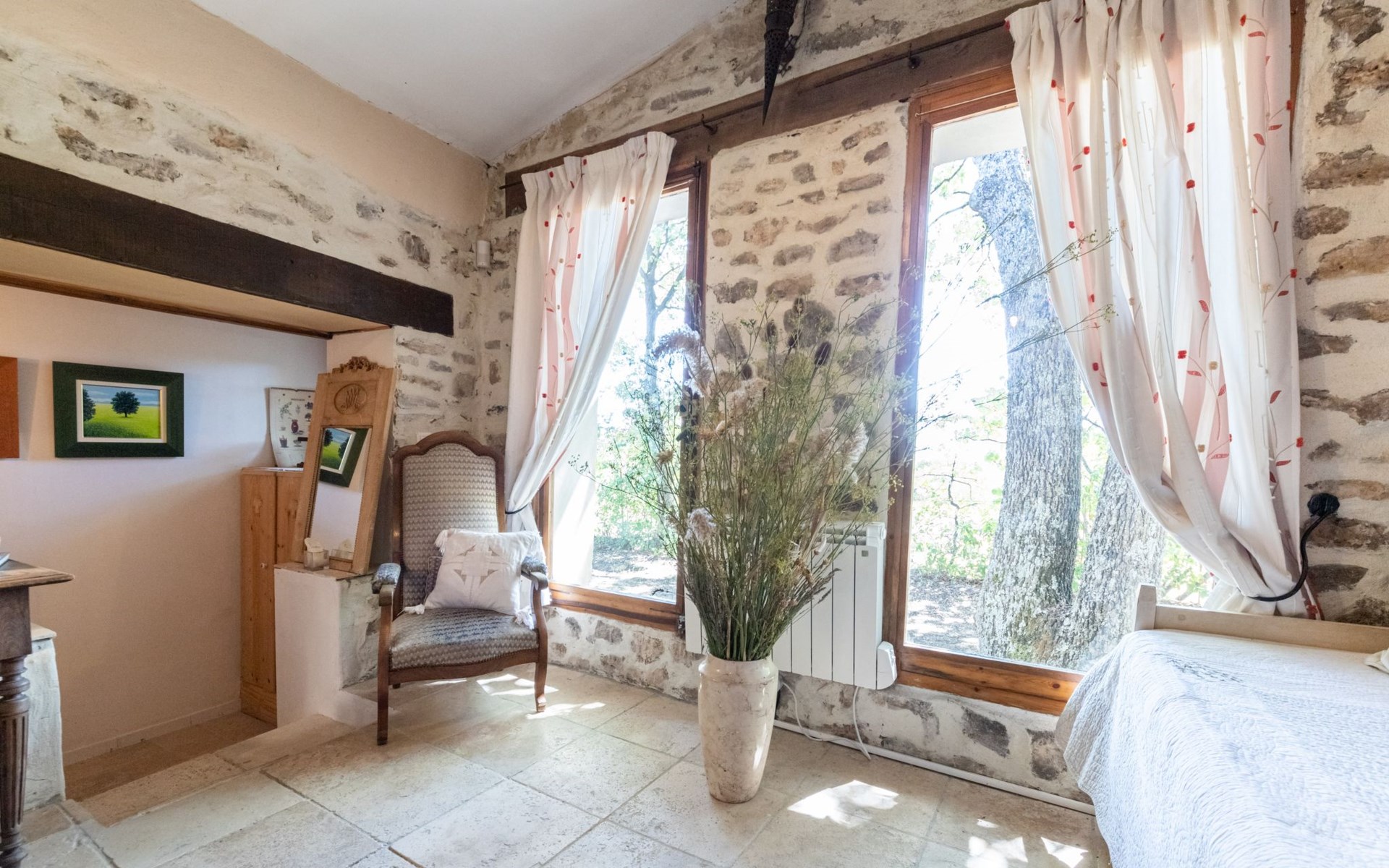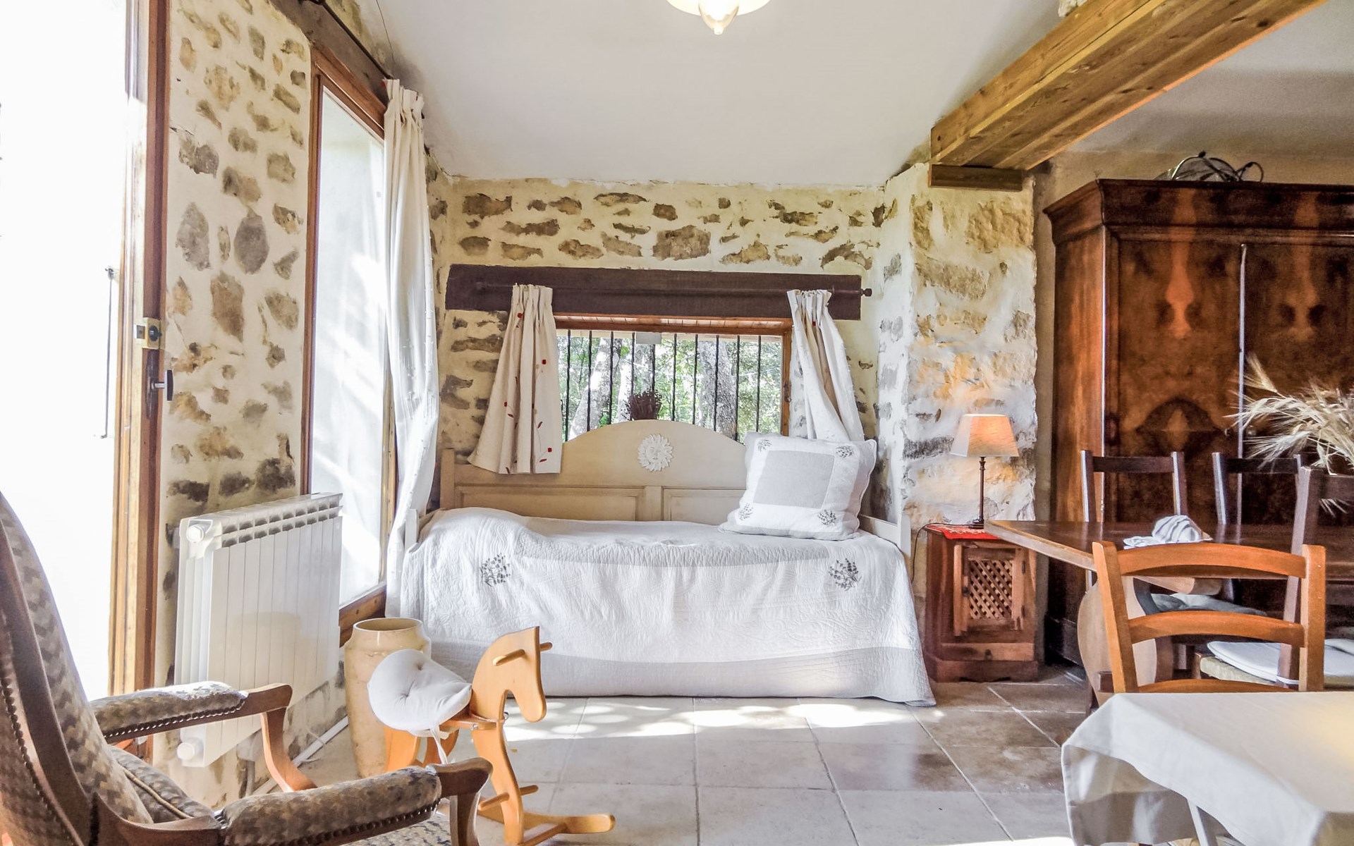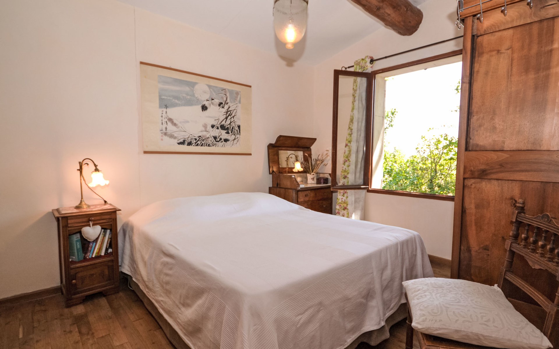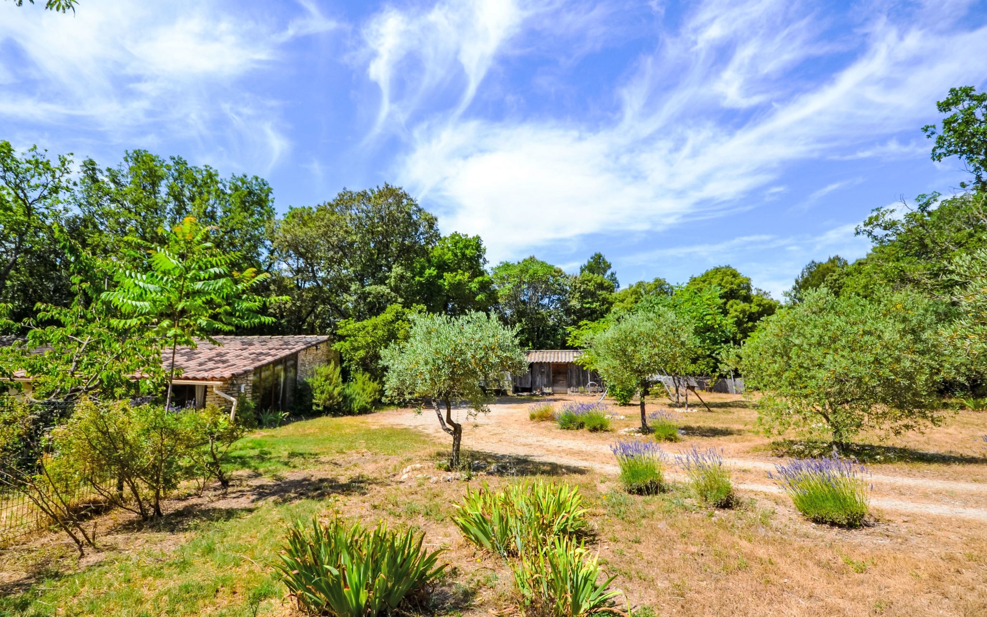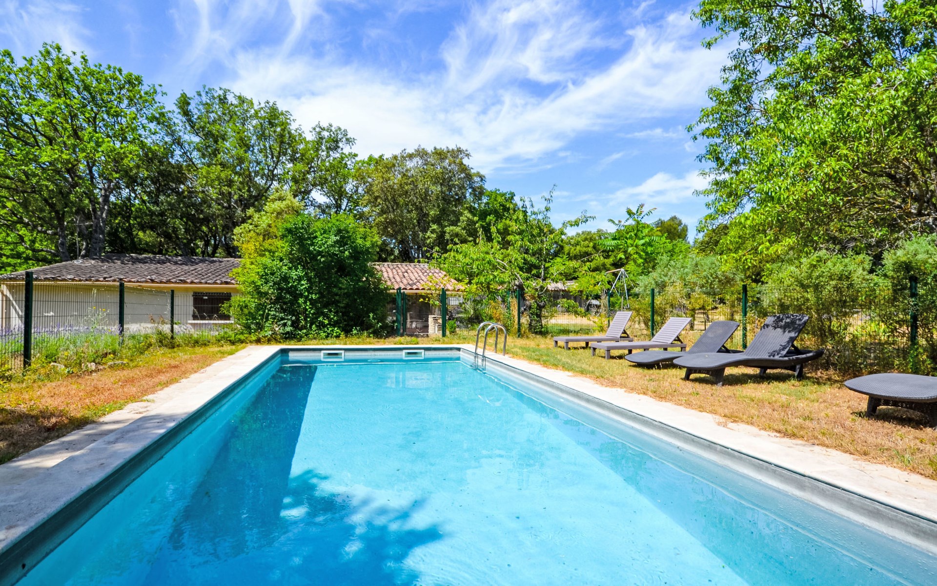 Mas/Landhaus "Le Bois d'Amour", Baujahr 1900, renoviert, umgeben von Bäumen. Ausserhalb des Ortes, 2.5 km vom Zentrum von d'Apt, ruhige Lage, 100 m vom Waldrand, Richtung Nordosten. Zur Alleinbenutzung: Grundstück 2'500 m2 (eingezäunt) mit Blumen und Bäumen, Schwimmbad eingezäunt (10 x 4 m, 150 cm tief, saisonale Verfügbarkeit: 01.Mai. - 15.Okt.) mit Alarmanlage. Aussendusche, Terrasse, Gartenmöbel. Zufahrt bis zum Haus (50 m Naturweg). Parkplatz auf dem Grundstück. E-Ladestation. Einkaufsgeschäft 4 km, Lebensmittelgeschäft 4 km, Restaurant 4 km, Bäckerei 4.8 km, Fahrradverleih 4.3 km, Bushaltestelle "Gare Routière" 5 km, See Plan d'eau d'Apt 6.4 km. Golfplatz (9 Loch) 5.2 km, Kinderspielplatz 5 km. Nahe gelegene Sehenswürdigkeiten: Colorado de Rustrel 10 km, Les Ocres de Roussillon 11 km, Village classé de Gordes 10 km, Simiane La Rotonde 24 km, Avignon 54 km. Wandergebiete: Parc Régional des Alpilles 30 km, Forêt des Cèdres 22 km, Parc Régional du Luberon 10 km. Bitte beachten: Fahrzeug empfohlen. Die überdachte Terrasse verfügt über eine Spüle, einen kleinen Kühlschrank und eine elektrische Grillplatte.
