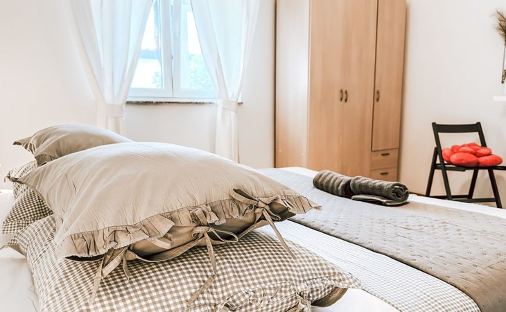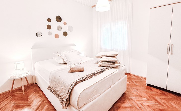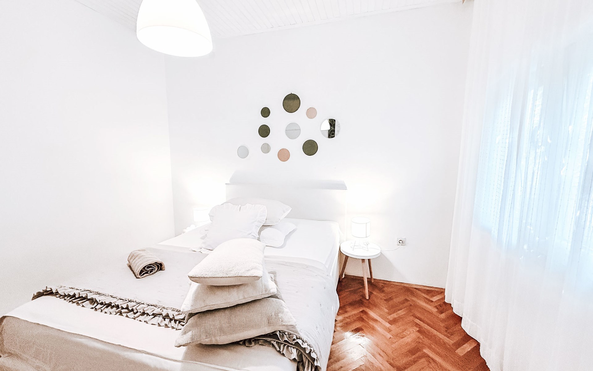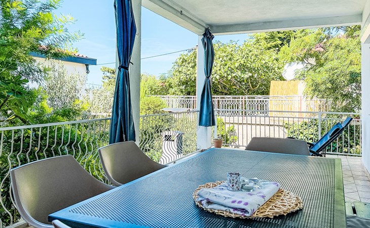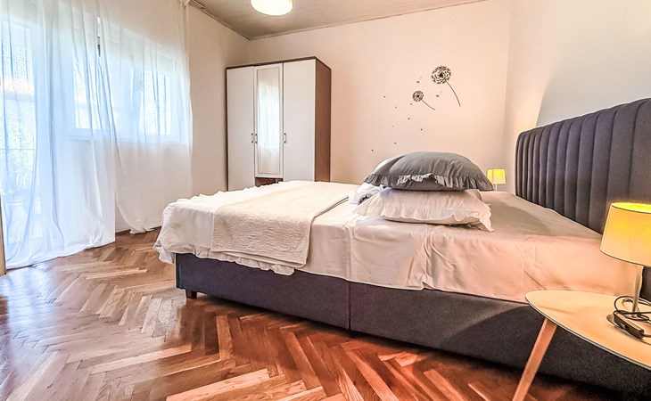 Einfamilienhaus "Matkovic". 200 m vom Zentrum von Rovanjska, 12 km vom Zentrum von Starigrad, 35 km vom Zentrum von Zadar, 200 m vom Meer, 200 m vom Strand. Zur Alleinbenutzung: Grundstück 350 m2 (eingezäunt), Garten mit Pflanzen und Bäumen. Grill. Im Hause: Internetzugang. Parkplatz (für 2 Autos) auf dem Grundstück. Einkaufsgeschäft 200 m, Restaurant 250 m, Bushaltestelle 260 m, Felsstrand 200 m.