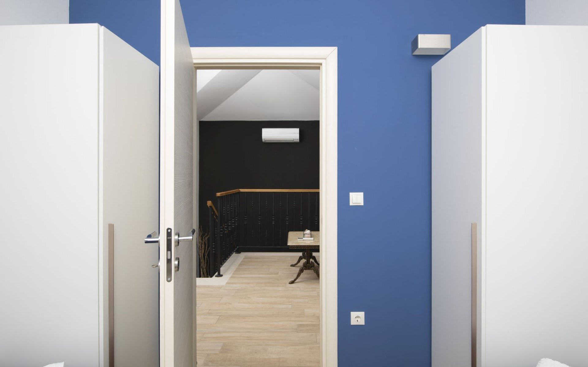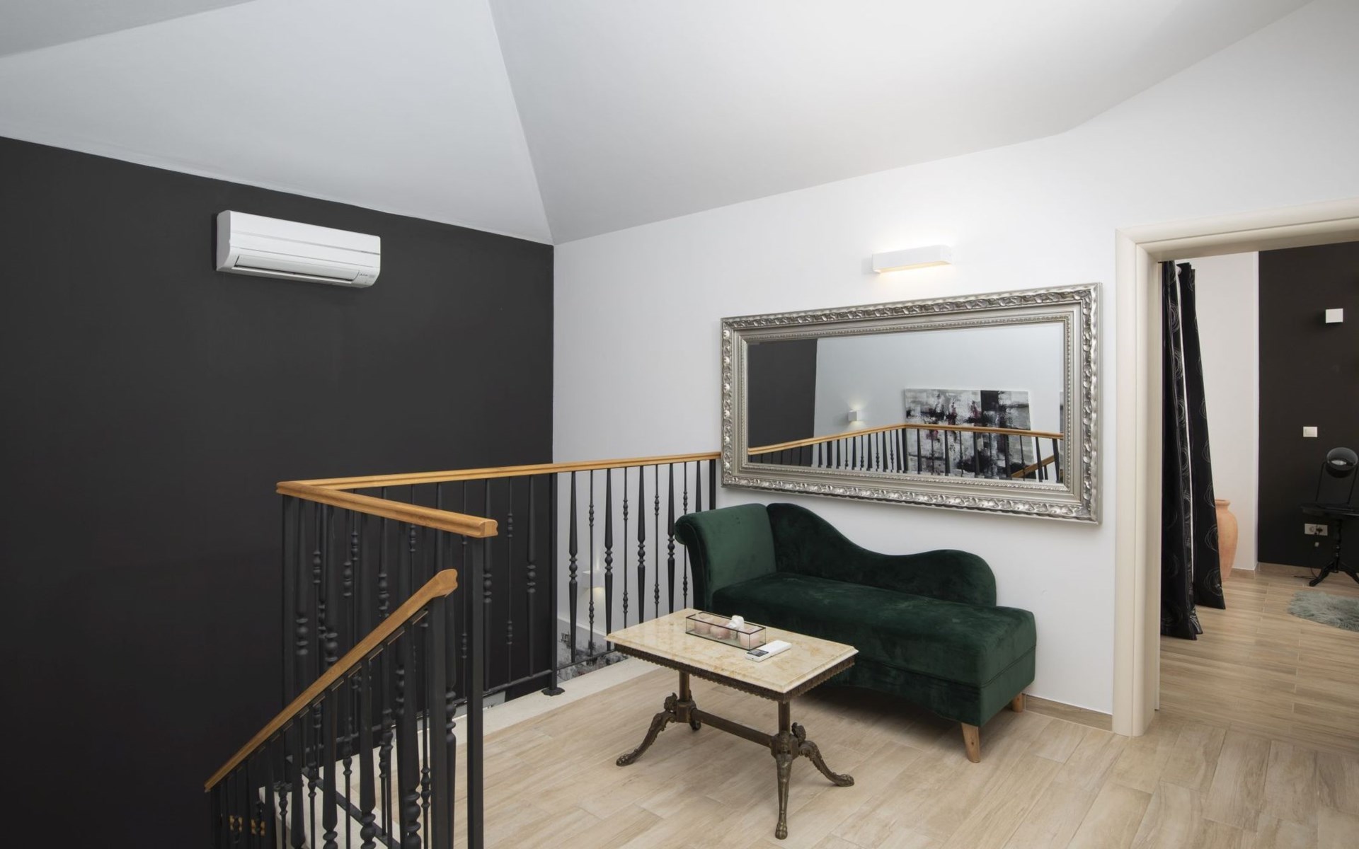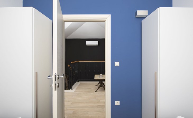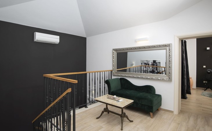 Die Villa ist mit drei Klimaanlagen ausgestattet: eine im Schlafzimmer am Pool, eine im Wohnzimmer im Erdgeschoss und eine in der ersten Etage.