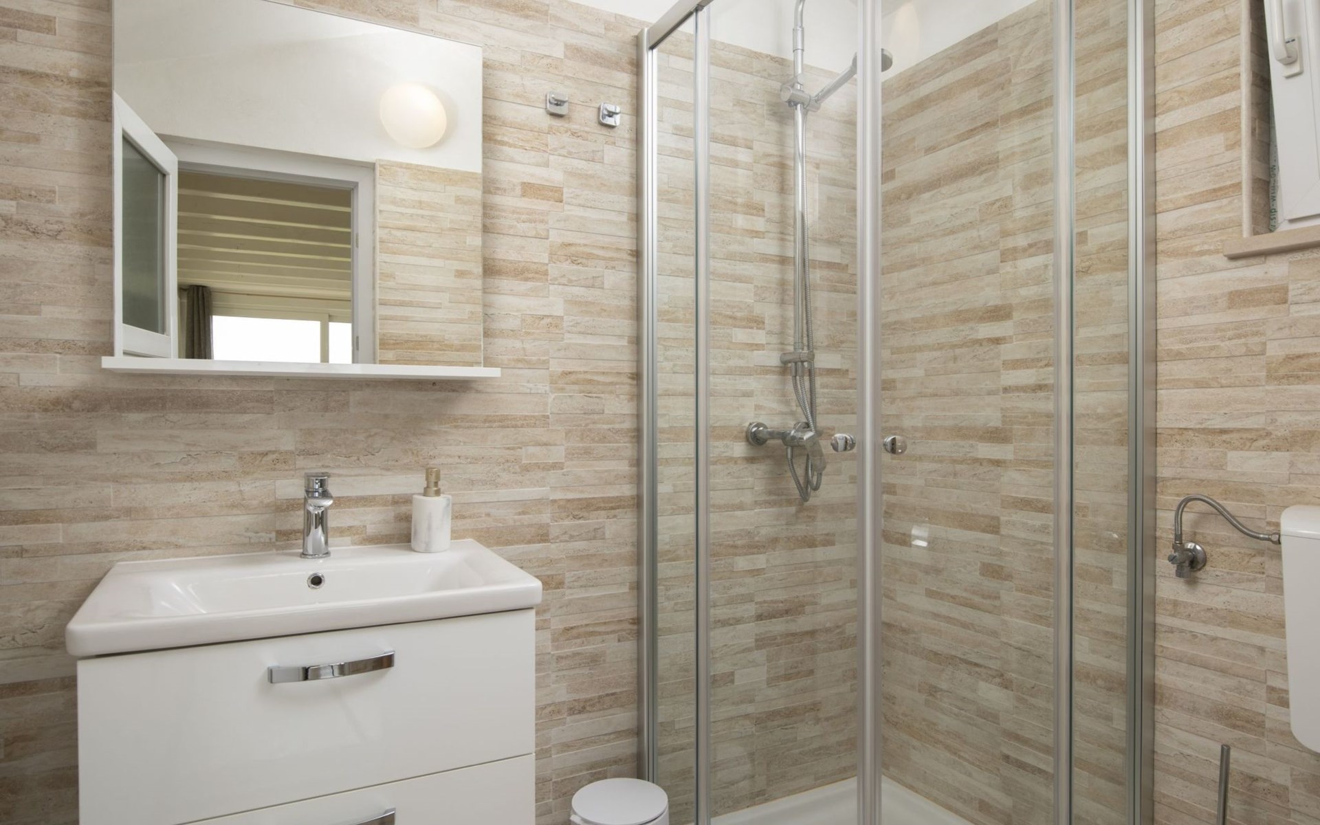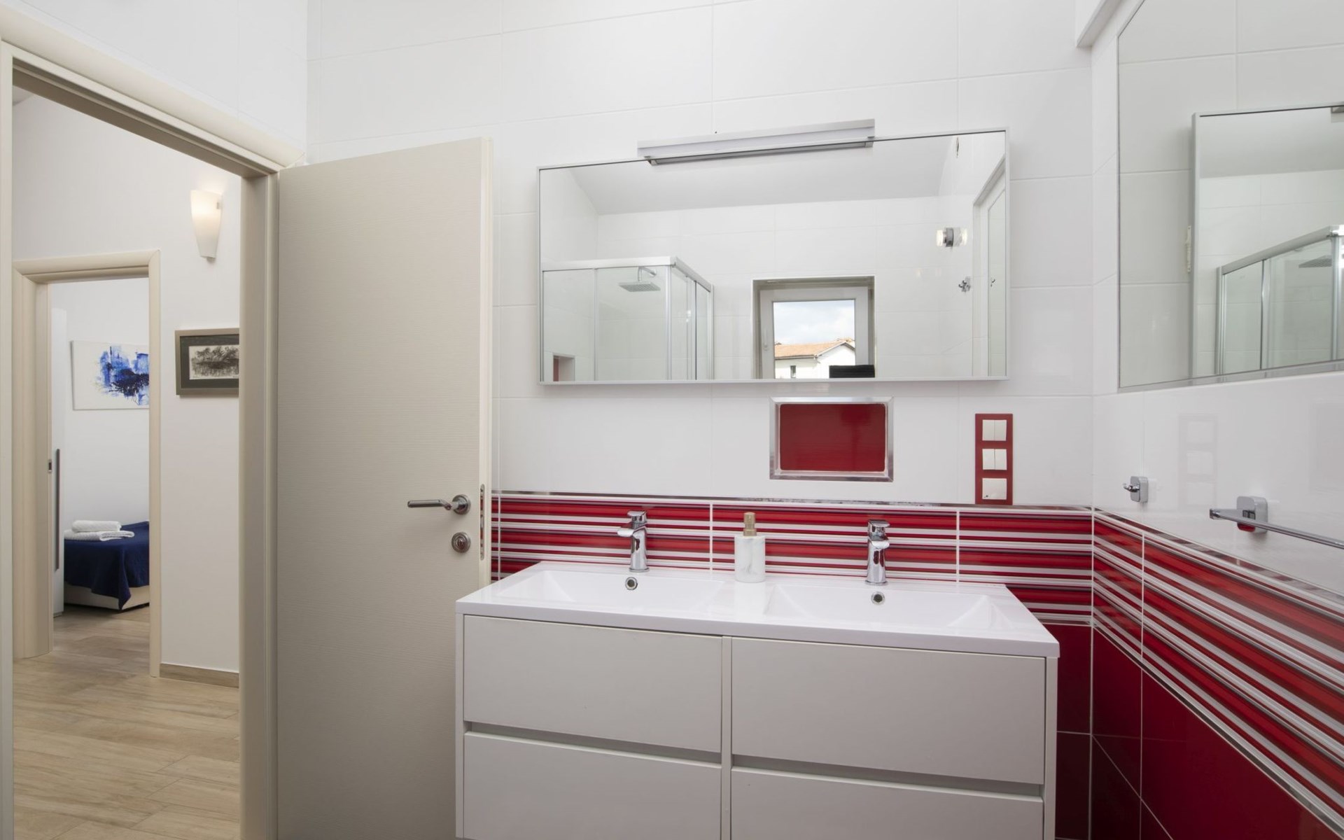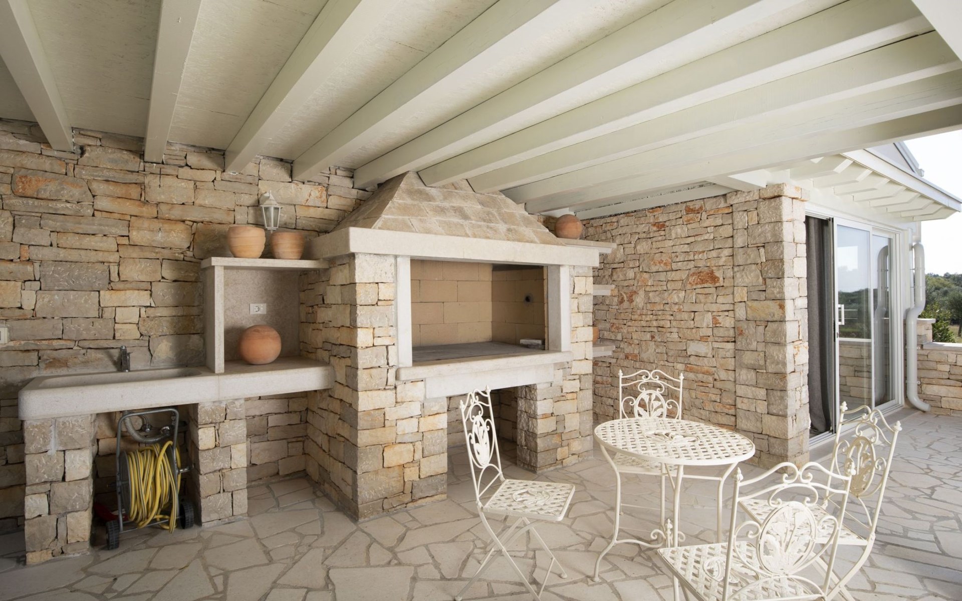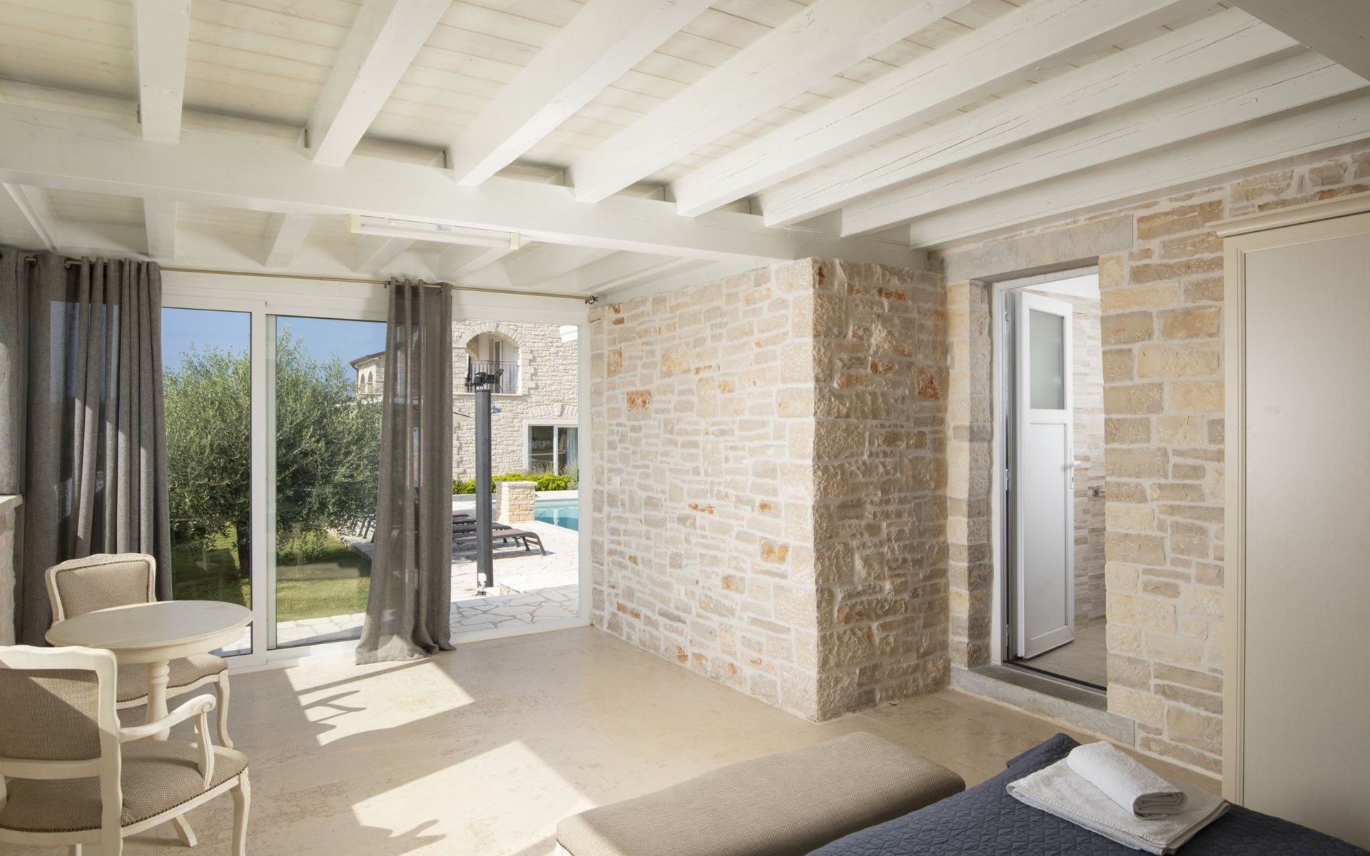 Die Villa Piccolo Paradiso ist an ein Zwillingsschwesternhaus angebaut und hat einen gemeinsamen Haupteingang. Um Ihren privaten Eingang und Außenbereich zu erreichen, müssen Sie durch den Hof der Nachbarvilla gehen.