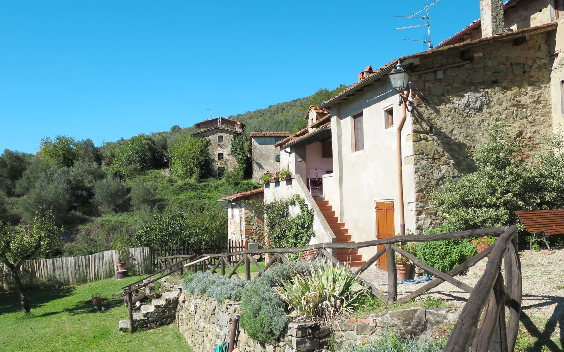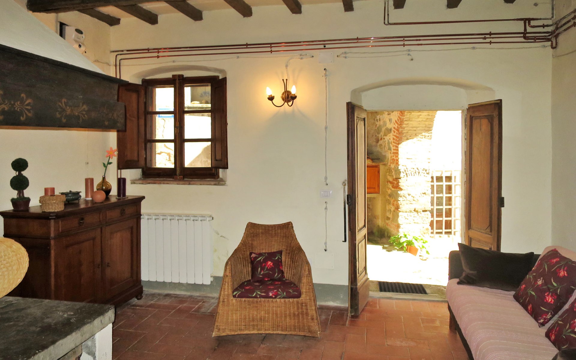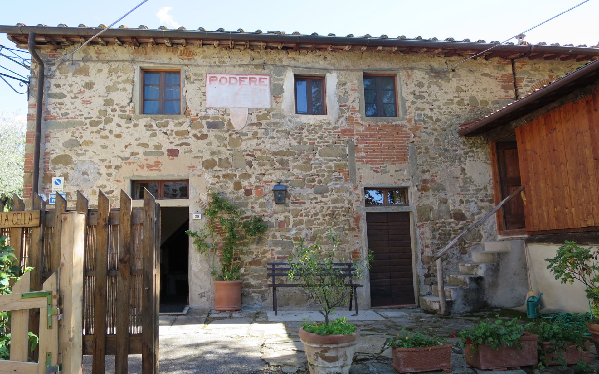 Rustico "Borgo La Cella", auf 2 Stockwerken, umgeben von Bäumen und Feldern. 4 Häuser in der Residenz. 6 Wohnungen in der Residenz. Im Weiler Borgo La Cella, 2 km vom Zentrum von Pian di Scò, 45 km vom Zentrum von Firenze, 45 km vom Zentrum von Arezzo, erhöhte Lage am Hang. Zur Mitbenutzung: Schwimmbad (9 x 5 m, 140 cm tief, saisonale Verfügbarkeit: 30.Apr. - 15.Okt.). Aussendusche, Grill, Poolpflege durch den Besitzer/Gärtner. 300 m lange schmale Zufahrt. Breite der Zufahrtsstrasse: 230 cm. Parkplatz auf dem Grundstück. Lebensmittelgeschäft 2 km, Supermarkt 2 km, Restaurant 2 km, Bushaltestelle 2.5 km, Bahnstation "Figline Valdarno" 10 km. Bitte beachten: Der Besitzer wohnt auf dem gleichen Grundstück.