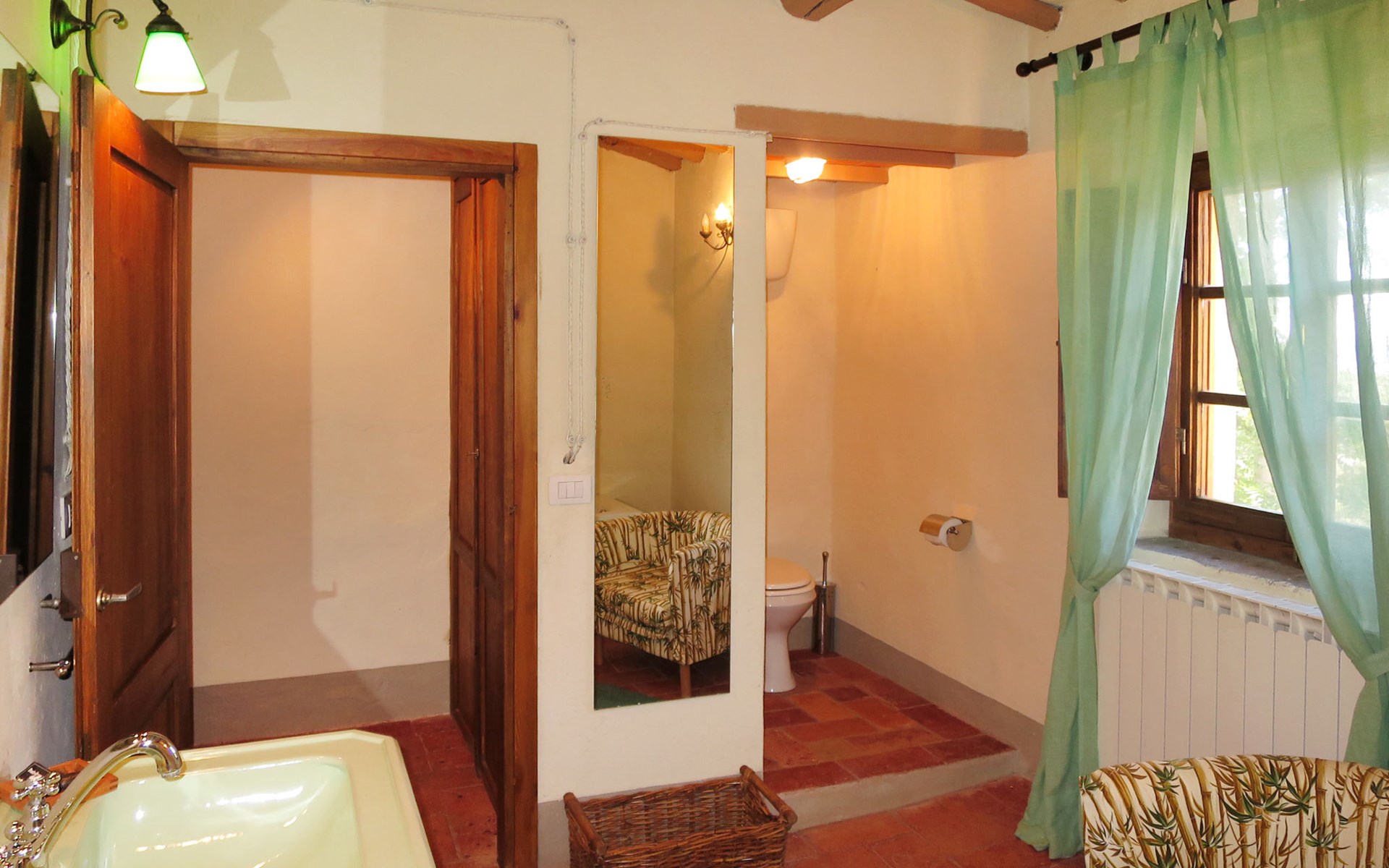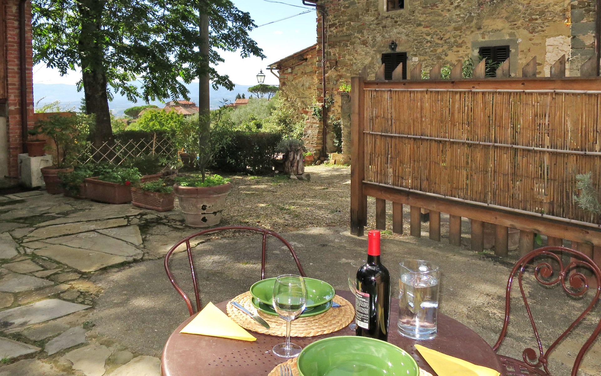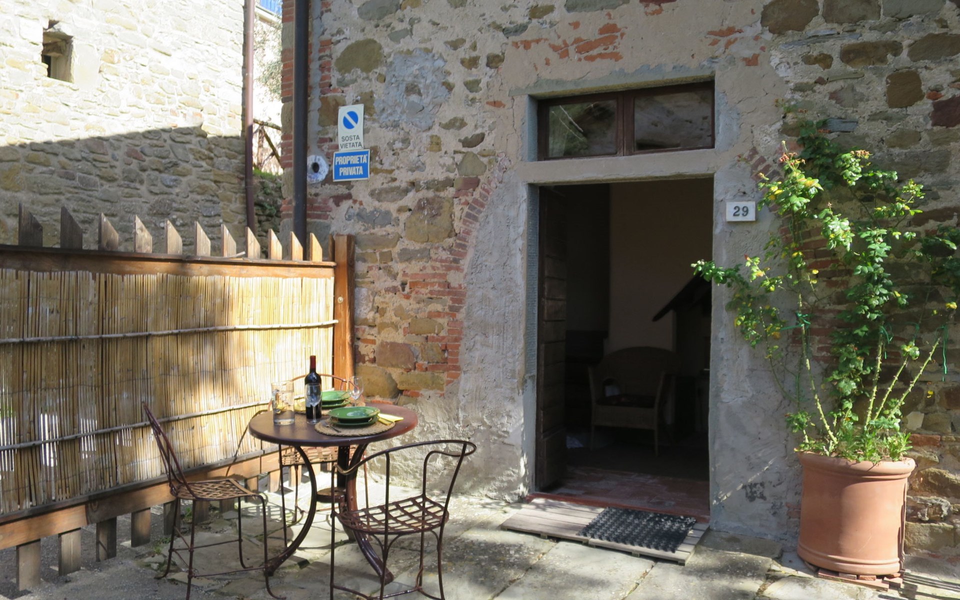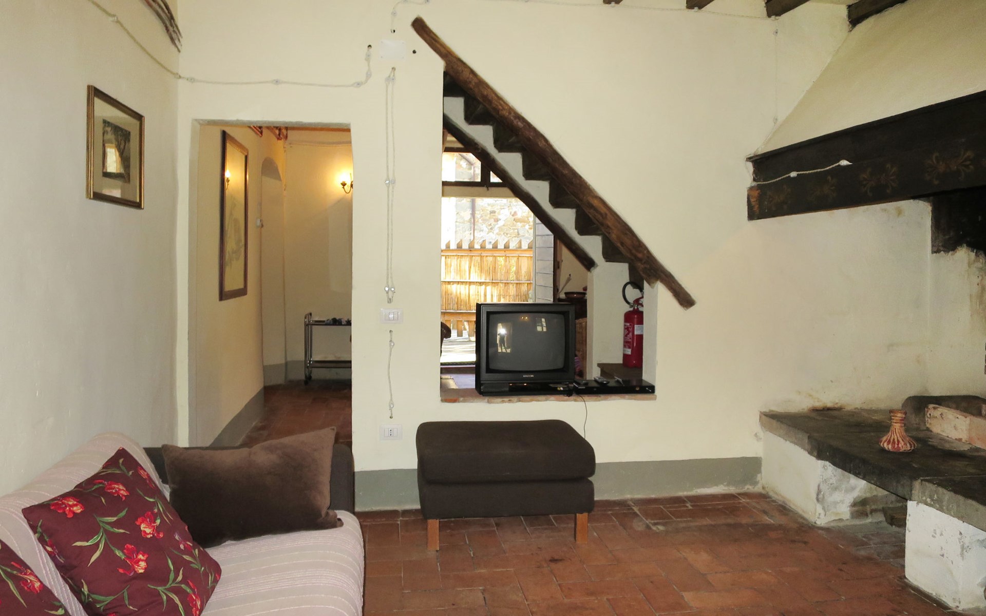 Rustico "Borgo La Cella", auf 2 Stockwerken, umgeben von Bäumen und Feldern. 4 Häuser in der Residenz. 6 Wohnungen in der Residenz. Im Weiler Borgo La Cella, 2 km vom Zentrum von Pian di Scò, 45 km vom Zentrum von Firenze, 45 km vom Zentrum von Arezzo, erhöhte Lage am Hang. Zur Mitbenutzung: Schwimmbad (9 x 5 m, 140 cm tief, saisonale Verfügbarkeit: 30.Apr. - 15.Okt.). Aussendusche, Grill, Poolpflege durch den Besitzer/Gärtner. 300 m lange schmale Zufahrt. Breite der Zufahrtsstrasse: 230 cm. Parkplatz auf dem Grundstück. Lebensmittelgeschäft 2 km, Supermarkt 2 km, Restaurant 2 km, Bushaltestelle 2.5 km, Bahnstation "Figline Valdarno" 10 km. Bitte beachten: Der Besitzer wohnt auf dem gleichen Grundstück.