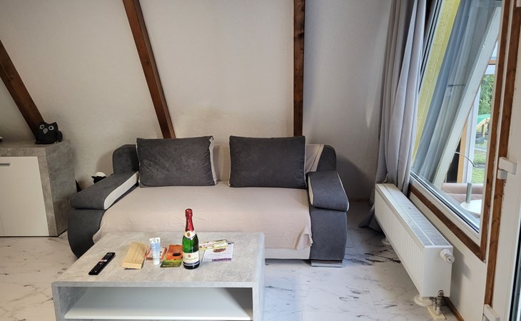 Kinderbett möglich, bitte bei Buchung angeben. Das Finnhaus steht mit einem weiteren Ferienhaus auf einem ca. 800m2 großen, komplett eingezäunten Gemeinschaftsgrundstück. Dieses Grundstück steht zur gemeinschaftlichen Nutzung mit dem Mieter des Ferien-Bungalows zur Verfügung. Jedem Ferienhaus steht ein eigener Grillplatz und ein Pavillon mit Gartenmöbeln zur Verfügung. Das Finnhaus verfügt zusätzlich über einen Wintergarten (12m2 Größe ,Baujahr 2022) mit ausziehbarer Couch und einem kleinen Esstisch.