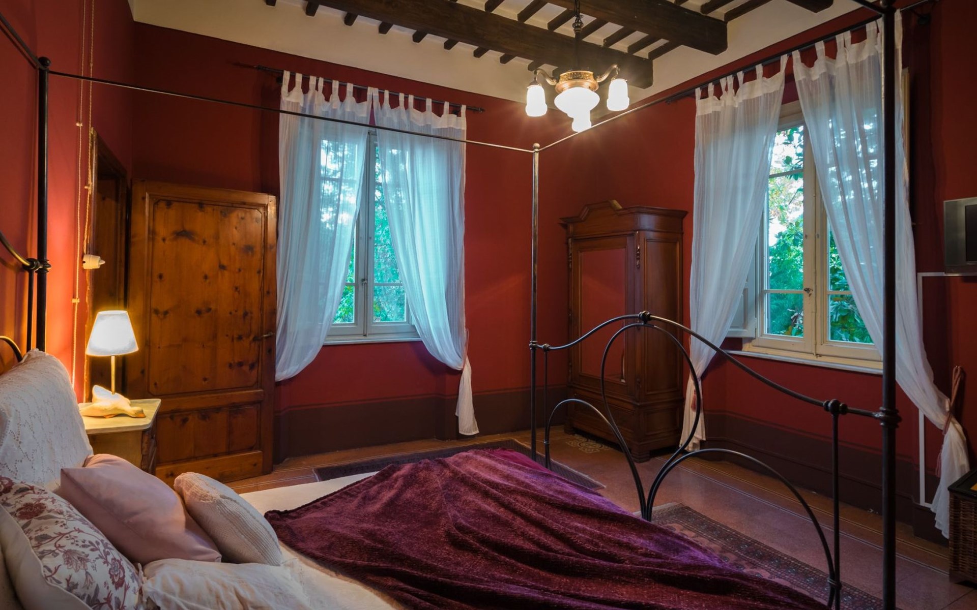 Das Haus bietet Platz für bis zu 10 Personen. WI-FI im gesamten Haus - Klimaanlage in den Schlafzimmern - Heizung in der gesamten Villa. ERDGESCHOSS: Eingangshalle mit zentralem Zugang. Auf der rechten Seite befindet sich das Unterhaltungszimmer mit Sofas und Sesseln, Flachbildfernseher, Klavier und Arbeitszimmer mit Bücherregal; auf der linken Seite befindet sich das Esszimmer und die schöne und geräumige Küche im toskanischen Stil. Von der Küche aus hat man direkten Zugang zum Gartenpavillon, der sich hervorragend für Mahlzeiten eignet. Im Erdgeschoss befindet sich das erste Badezimmer mit Dusche. ERSTES STOCKWERK Über die schöne Steintreppe gelangt man in den ersten Stock. Hier betritt man direkt das Wohnzimmer mit Blick auf die zentrale Terrasse mit Blick auf Altopascio. Auf der rechten Seite befinden sich das erste Schlafzimmer und das Bad, davor ein Vorbad mit Sofa, auf der linken Seite die beiden anderen Schlafzimmer. Das Badezimmer ist groß, aus Marmor, mit emaillierter gusseiserner Badewanne und flexibler Dusche. Die sanitären Anlagen sind stilvoll. ZWEITES OBERGESCHOSS Im zweiten Obergeschoss finden Sie die gleiche Aufteilung: rechts das Hauptschlafzimmer mit Wohnzimmer und Zugang zum Hauptbad und links ein zweites Schlafzimmer. Das Badezimmer ist edel, mit Bruyèreholz, einer Whirlpool-Badewanne und einer Sauna. Ein kleines Bad, ebenfalls mit Dusche, befindet sich im Zwischengeschoss des Treppenhauses. Die Elektroinstallation wurde komplett modernisiert, wobei die alte Technik des geflochtenen Außenkabels verwendet wurde. Die Schalter sind aus wertvoller Keramik im antiken Stil.