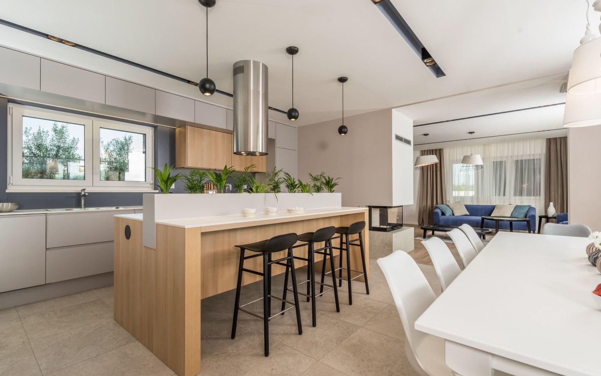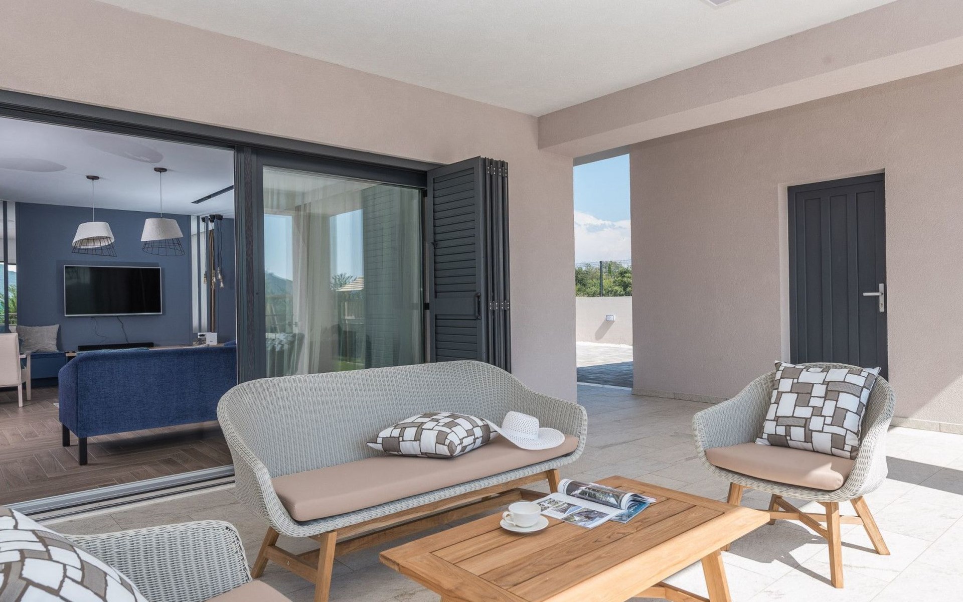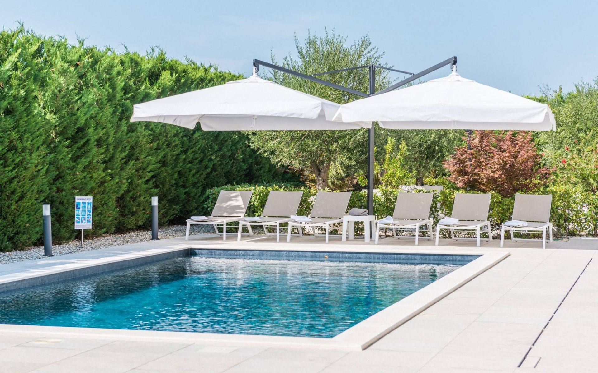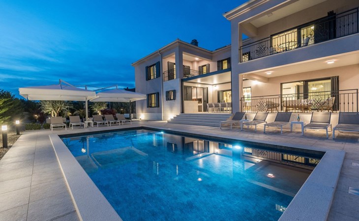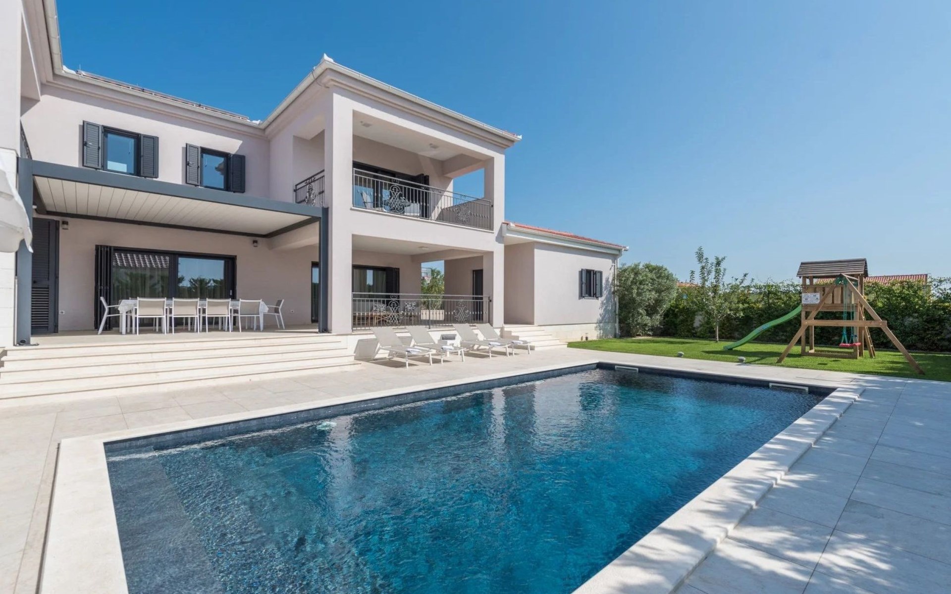 Diese geräumige, modern gestaltete Villa bietet Platz für bis zu 10 Gäste in 5 Doppelzimmern mit eigenem Bad. Eine voll ausgestattete Küche steht für Sie bereit. Das Wohnzimmer ist mit einem großen Essbereich verbunden, in dem alle Gäste Platz finden.