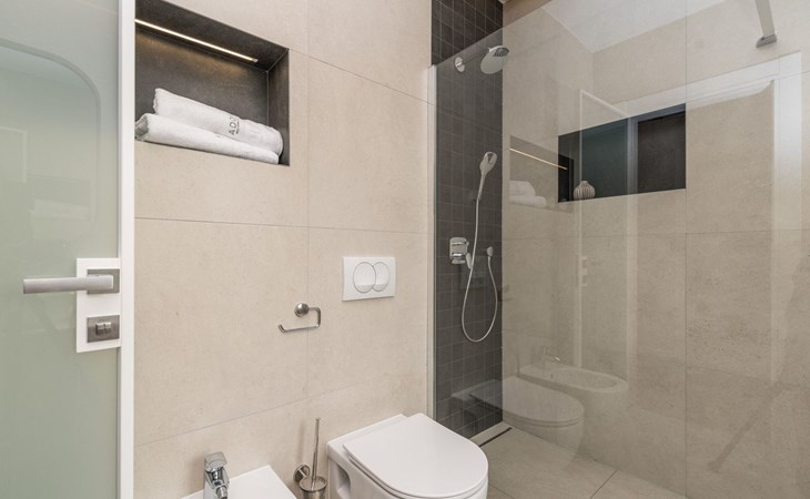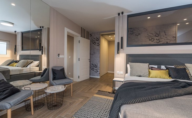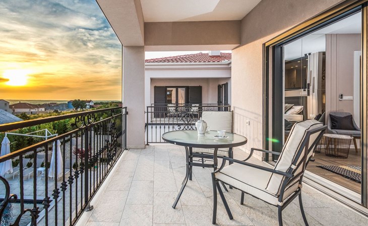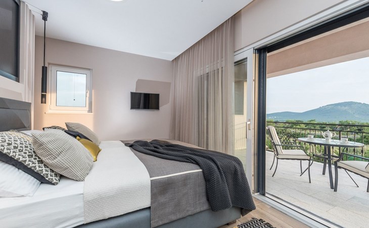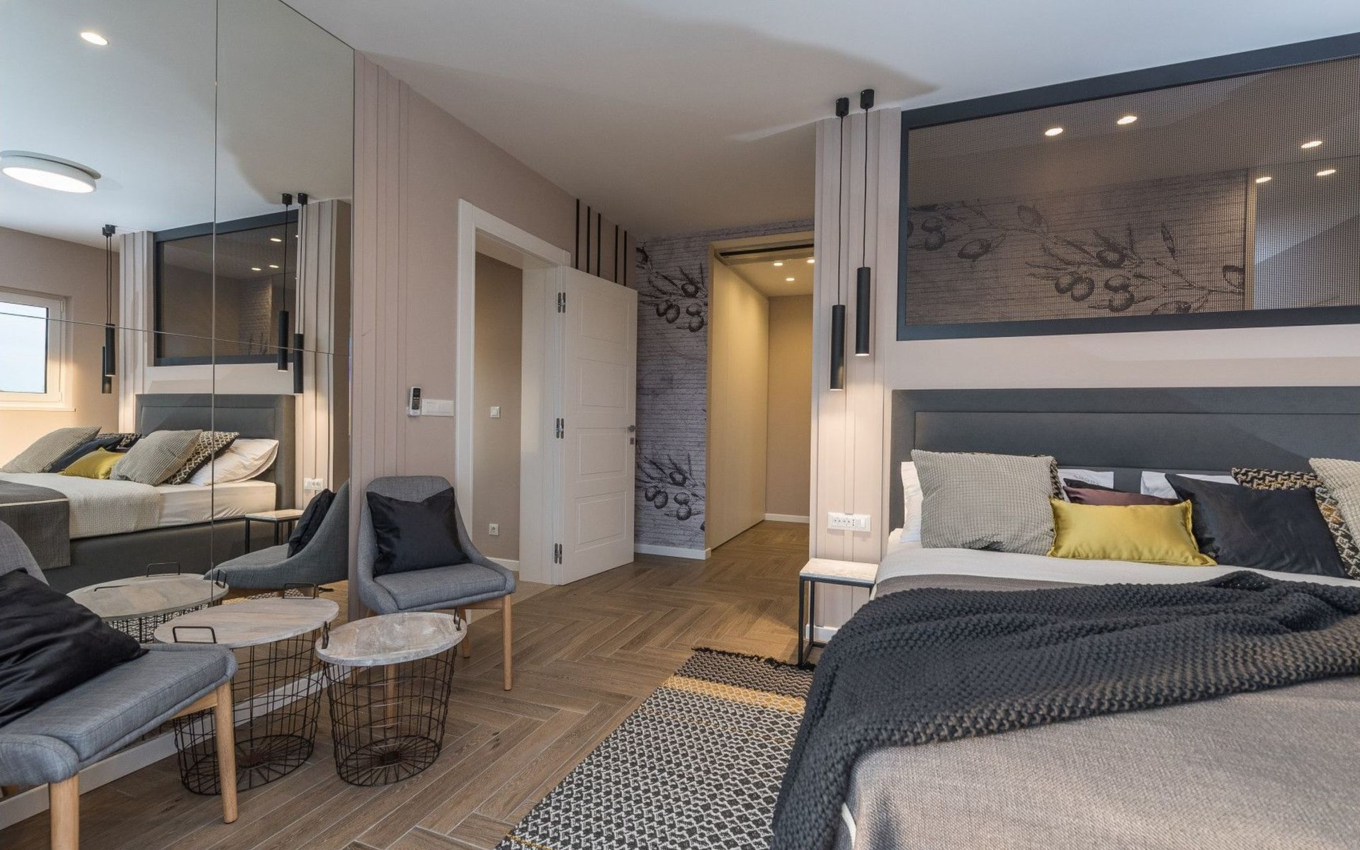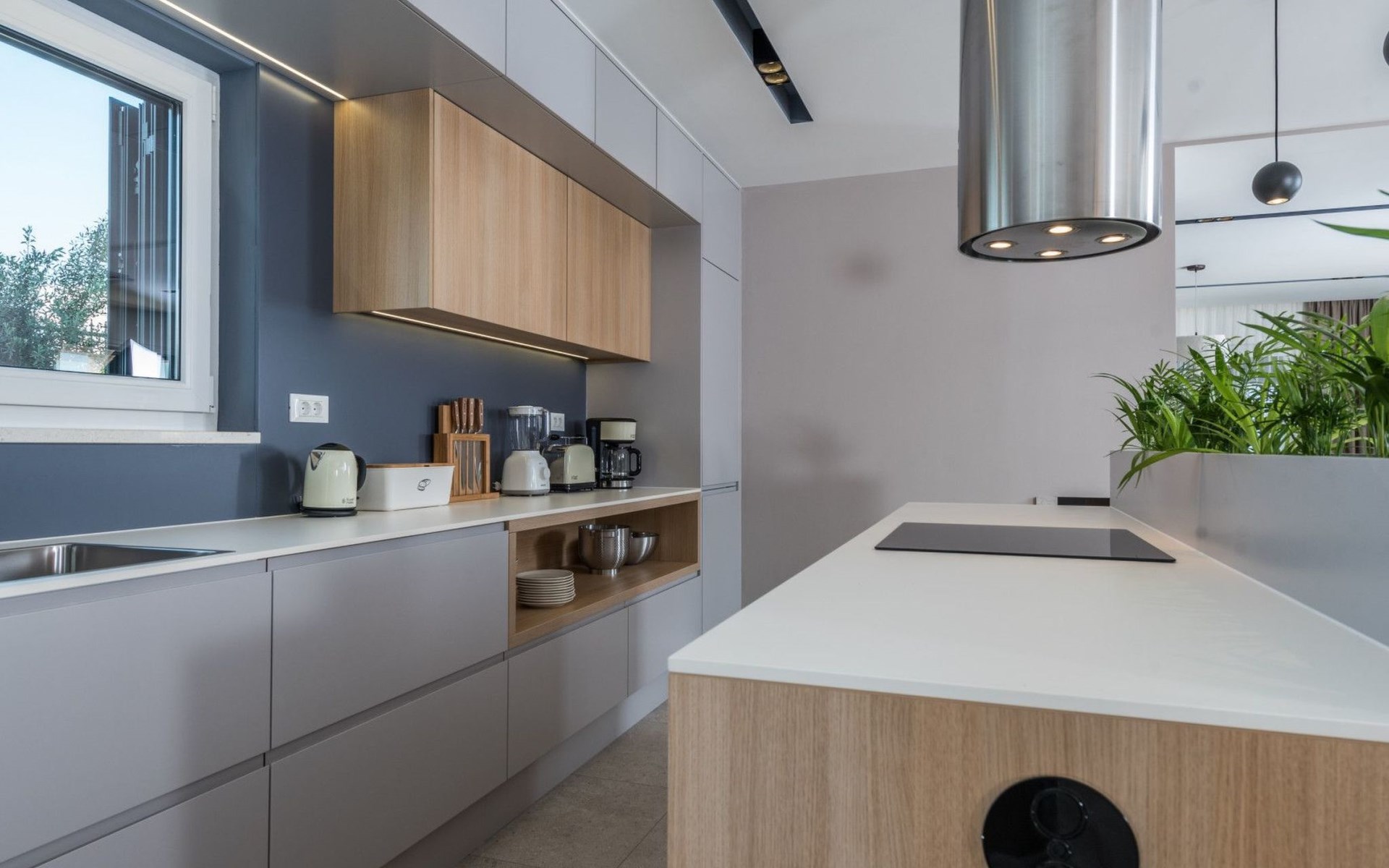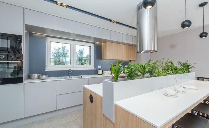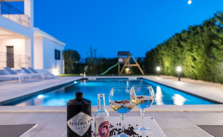 Diese geräumige, modern gestaltete Villa bietet Platz für bis zu 10 Gäste in 5 Doppelzimmern mit eigenem Bad. Eine voll ausgestattete Küche steht für Sie bereit. Das Wohnzimmer ist mit einem großen Essbereich verbunden, in dem alle Gäste Platz finden.