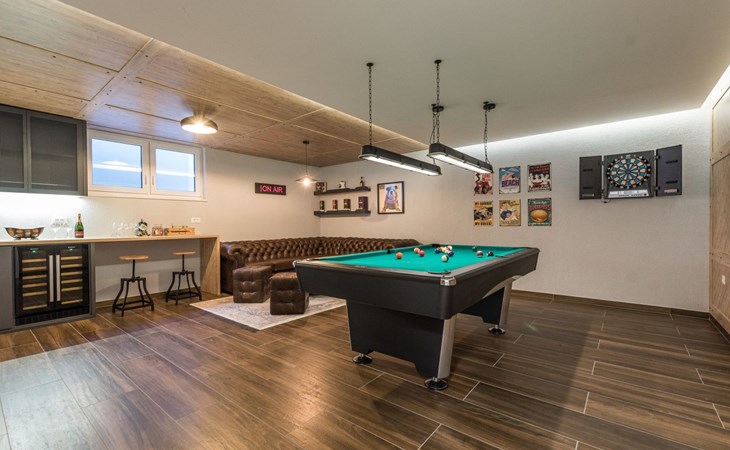 Die Villa verfügt über einen Entspannungsraum mit einer Sauna und einem Whirlpool. Für mehr Familienspaß gibt es Billard, Darts und eine Play Station 4 Konsole.