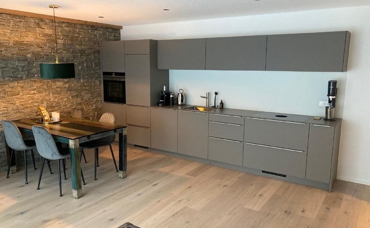 Die Wohnung hat einen Sitzplatz, eine grosse Wohn- Essküche, 2 Schlafzimmer mit trennbaren 180x200cm Doppelbetten und Tempur-Matratzen (im grösseren Platz für Reisebett oder Zusatz-Matratze), sowie ein zweckmässiges Bad. Küche ist voll ausgestattet mit Kaffeemaschine, Wasserkocher, Raclette- und Fondue-Zubehör. Bett-, Frottier- und Küchenwäsche ist inklusive.