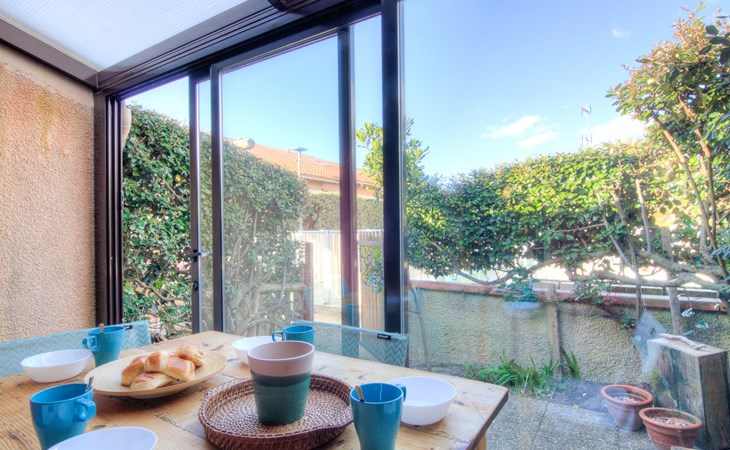 Capbreton 2 km von Hossegor: Die Residenz "Plage Sud" mit 25 Reihenhäusern, befindet sich 100 m vom Strand entfernt (Düne überqueren) Reihenhaus "Plage sud". 100 m vom Meer, 6 km vom See. Zur Mitbenutzung: Schwimmbad (10 x 8 m, 90 - 200 cm tief, saisonale Verfügbarkeit: 15.Jun. - 15.Sep.). Parkplatz. Lebensmittelgeschäft 800 m, Restaurant, Sandstrand "La Savane" 100 m. Golfplatz (18 Loch) 5 km.