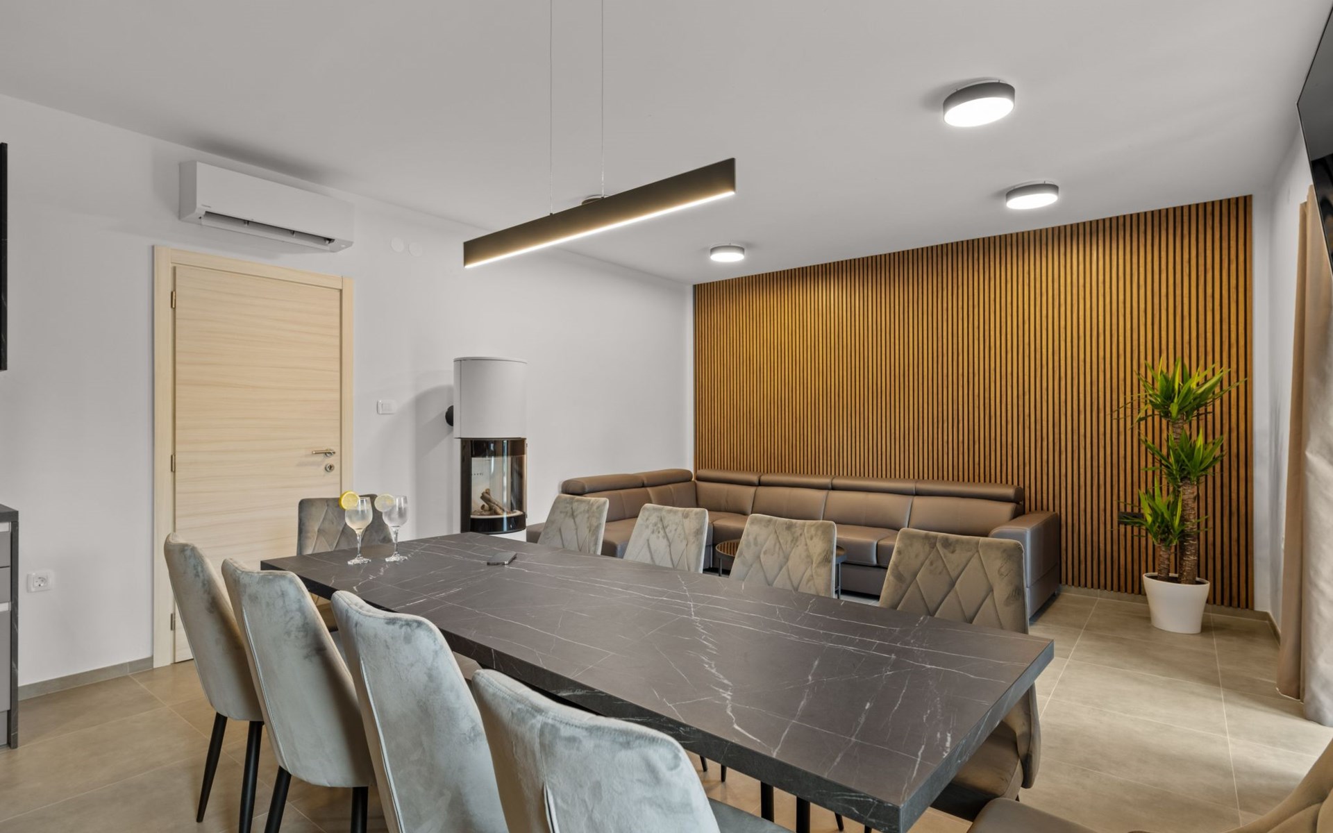 Selbstverständlich ist die Villa mit modernster Technik ausgestattet: Klimaanlage, WLAN und Smart TV stehen Ihnen zur Verfügung. Die nächstgelegene größere Stadt, Labin, erreichen Sie in nur 18 km Entfernung. Der traumhafte Cobacabana Beach in Plomin ist nur 15 km entfernt und lädt zu entspannten Tagen am Meer ein. Für den täglichen Bedarf finden Sie einen Supermarkt in Sveta Katarina, nur 1,8 km von der Villa entfernt.