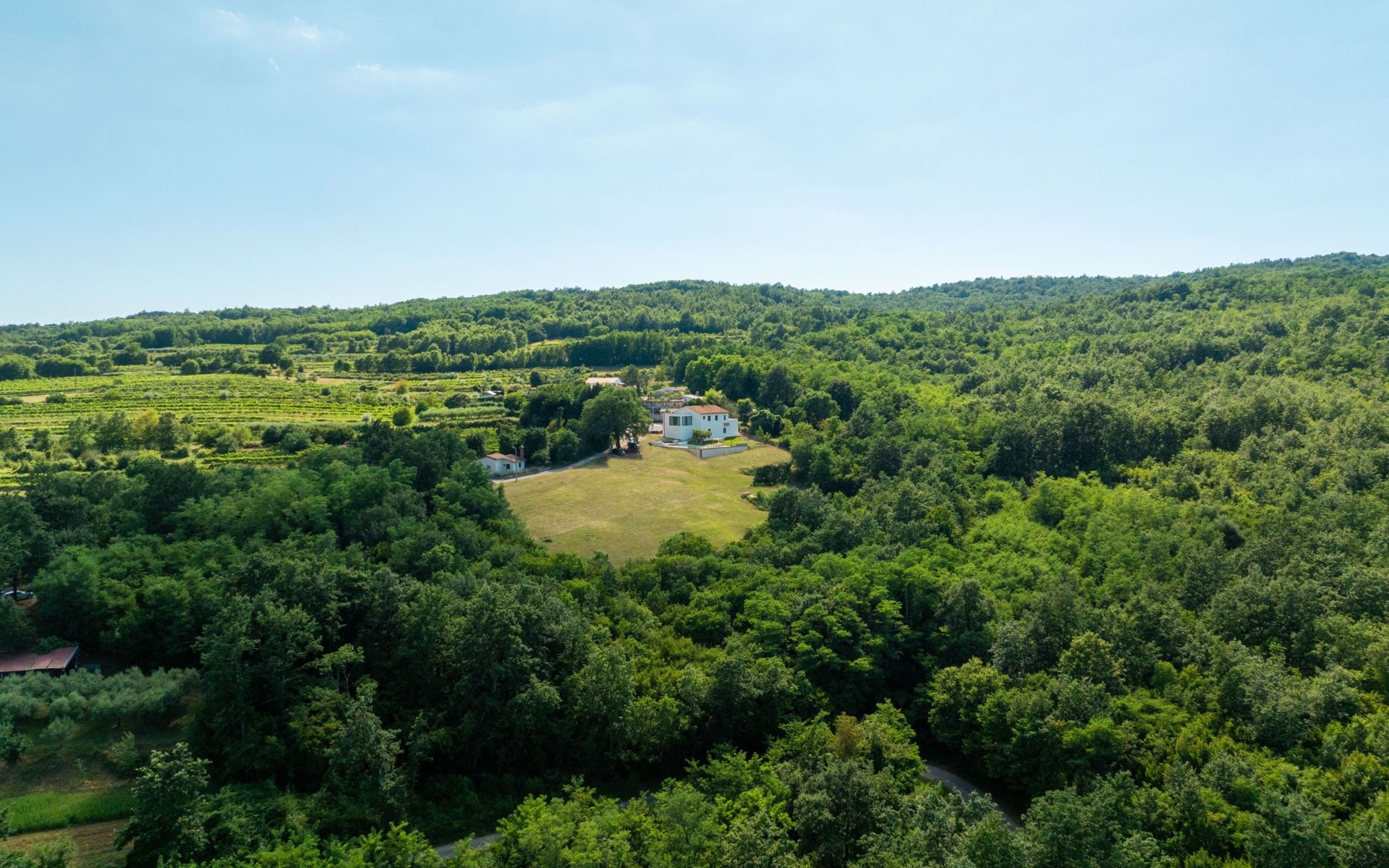Tauchen Sie ein in pure Eleganz und Komfort in unserer modernen, stilvollen Neubauvilla, eingebettet in die malerische Landschaft von Sveta Katarina, Istrien. Mit einer Wohnfläche von 350 m² auf einem beeindruckenden 6000 m² großen Grundstück bietet diese Villa absolute Privatsphäre und ein atemberaubendes Panorama über die grüne, idyllische und landwirtschaftlich geprägte Umgebung.