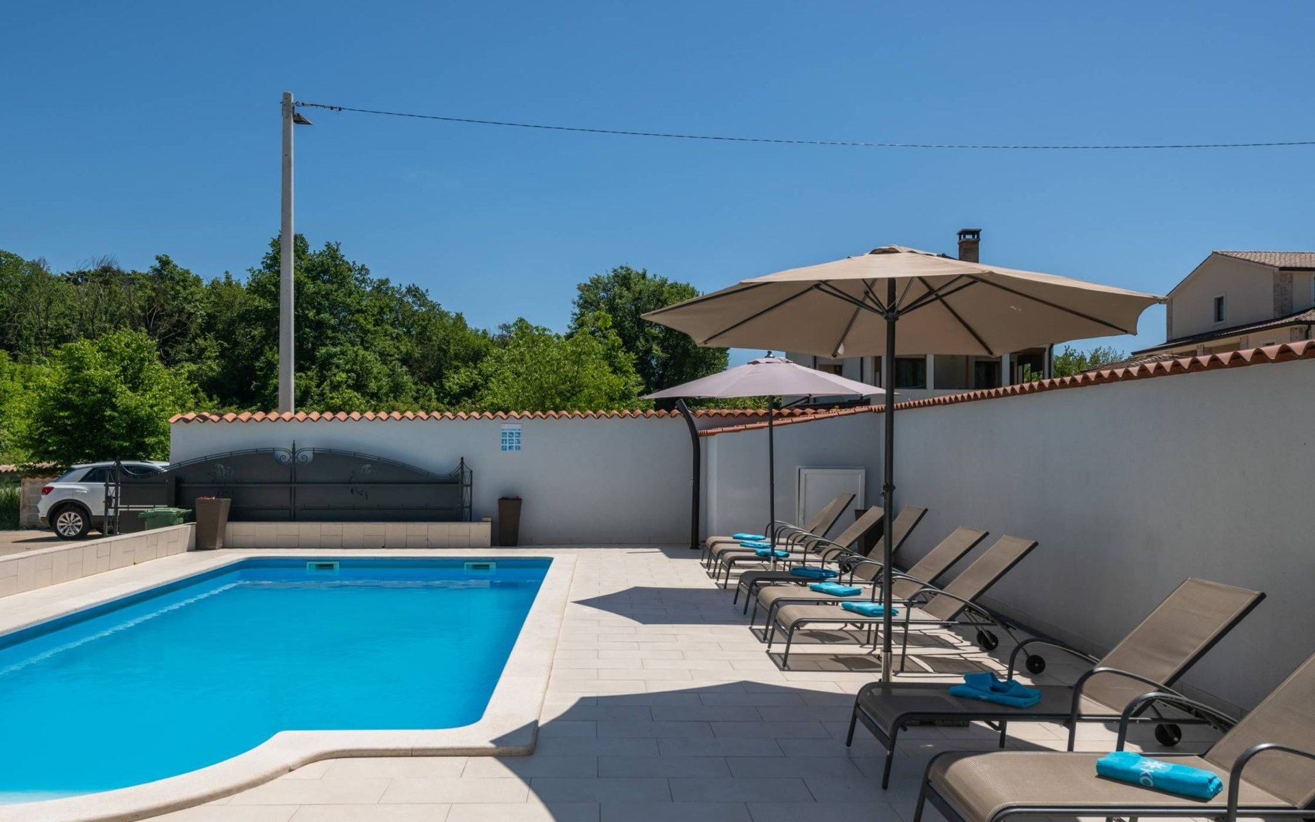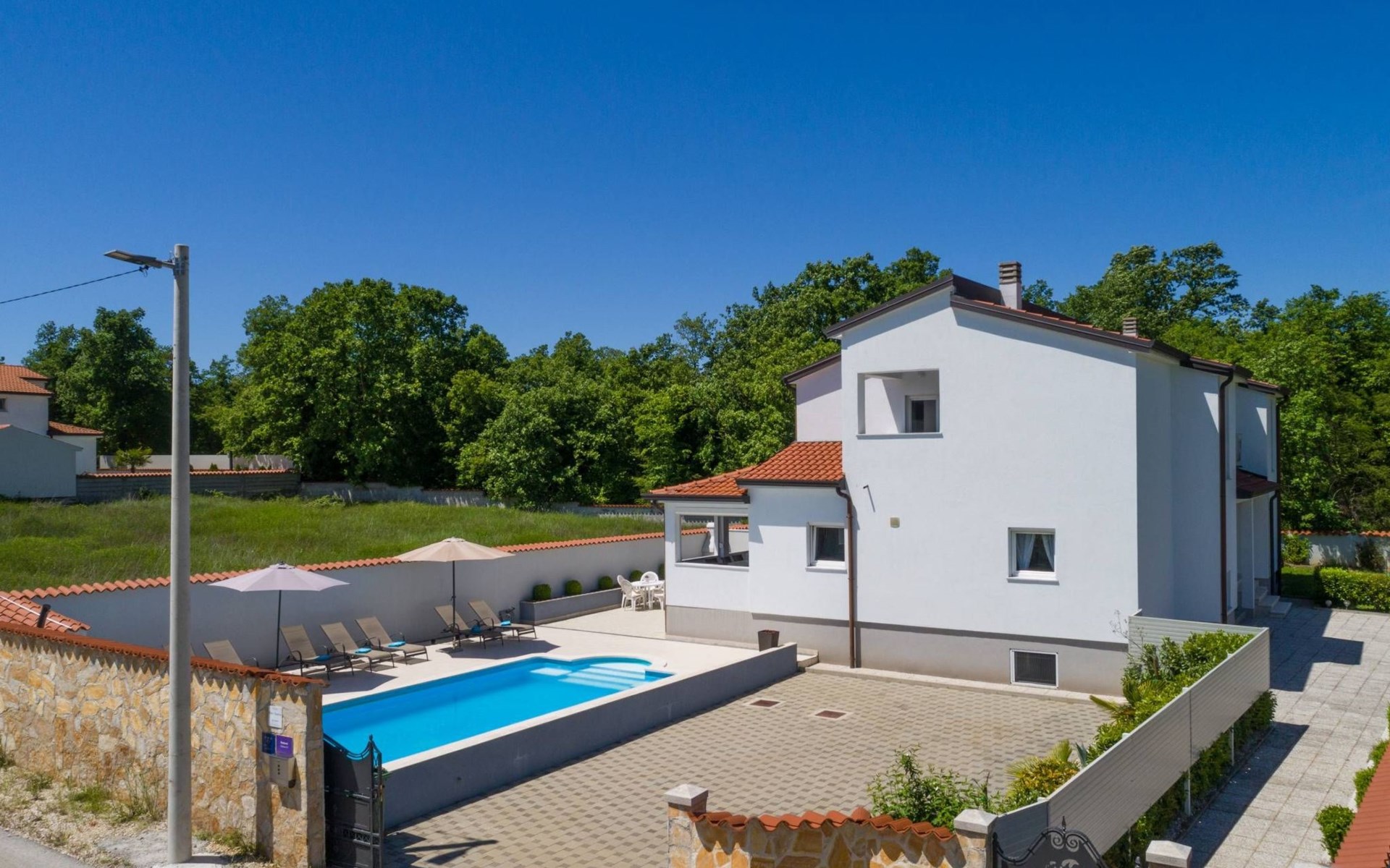 Die Villa Ellen Sophie ist in zwei Hälften geteilt. Die Vorderseite mit Pool und eingezäuntem Parkplatz ist nur für Gäste.