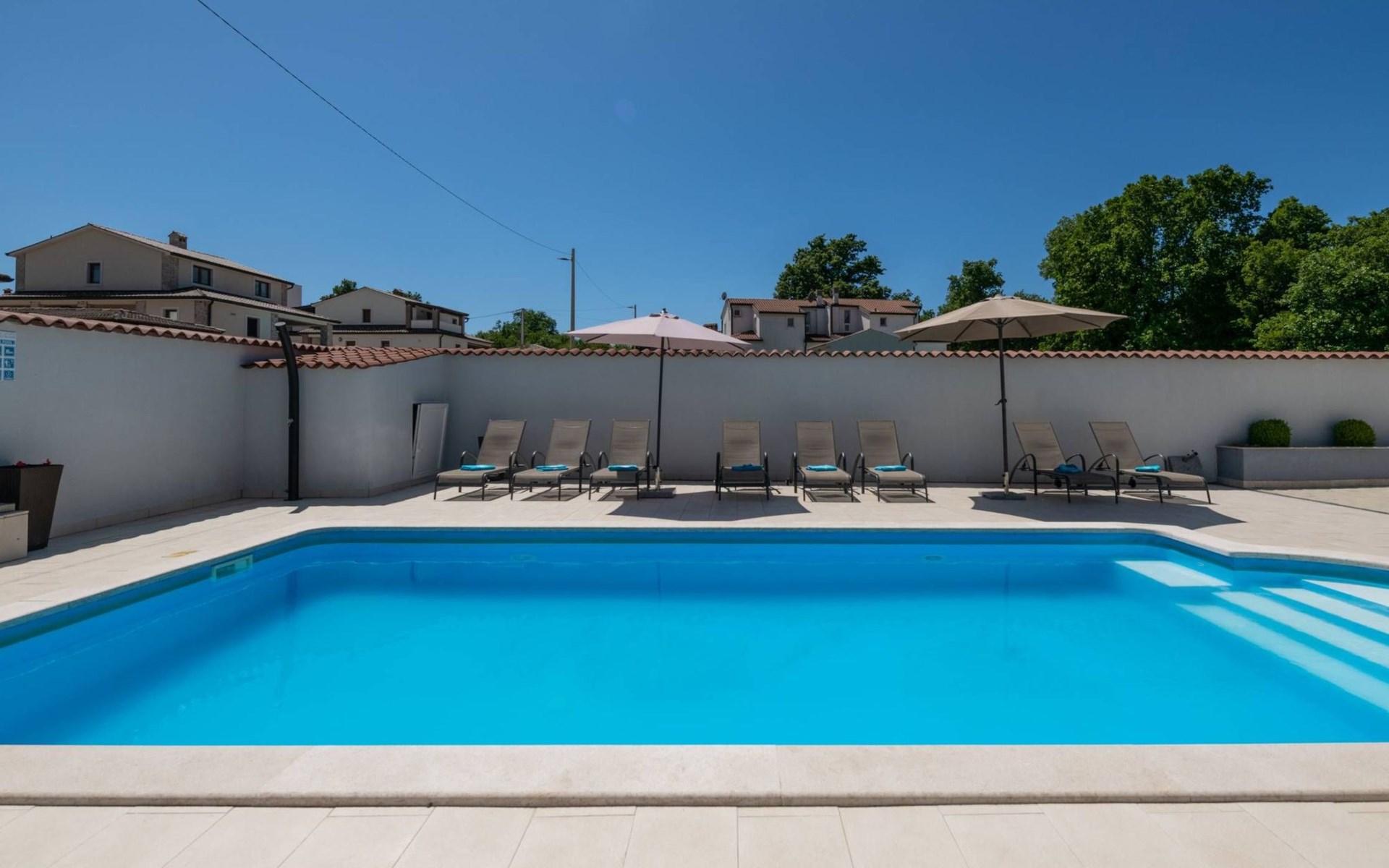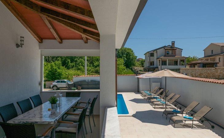 Der schöne Strand Špadići liegt nur 8 km entfernt. Geschäfte und ein Restaurant sind 4 km von der Villa, dem Stadtzentrum 6 km und dem Flughafen Pula 60 km entfernt.