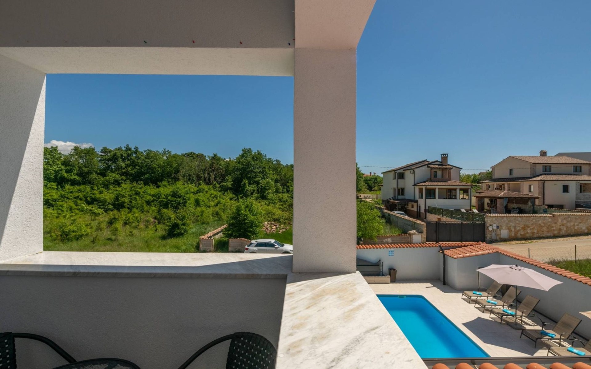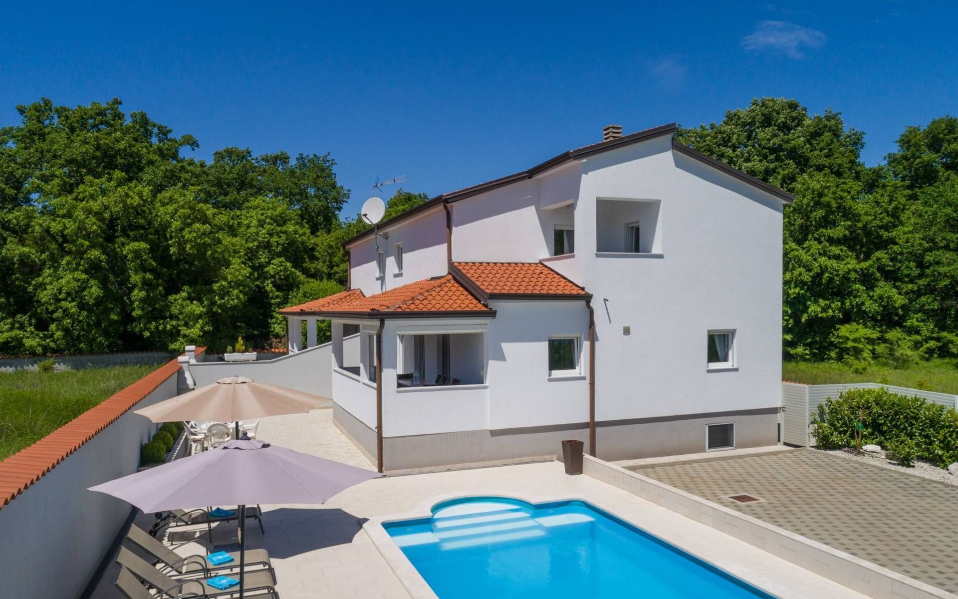 Dies ist ein Haus mit 4 Schlafzimmern auf zwei Etagen. Es liegt in einer ruhigen Gegend, 6 km vom Zentrum von Porec entfernt.