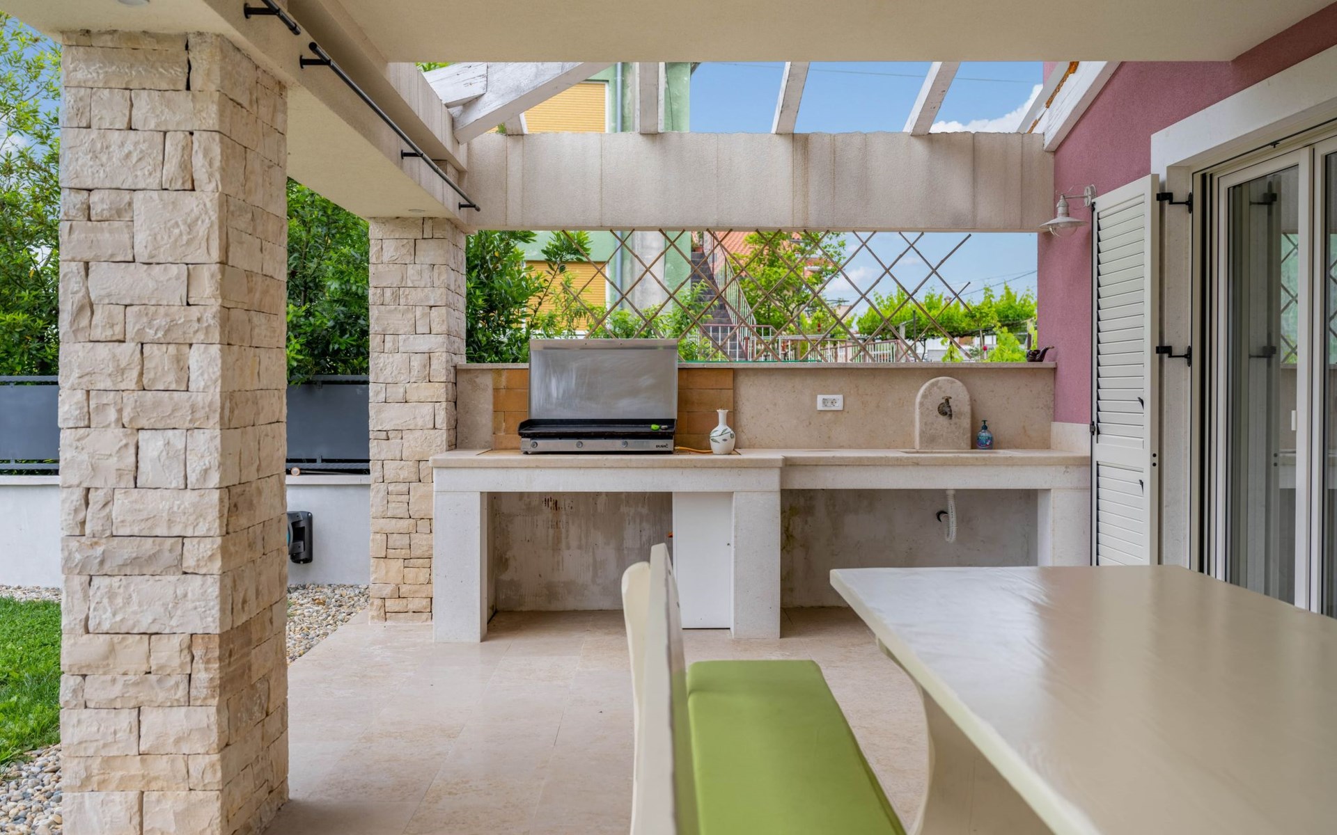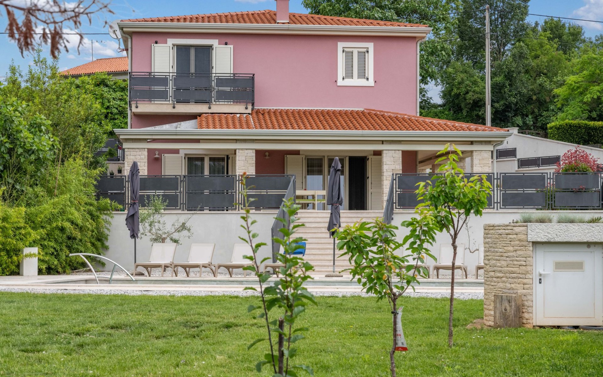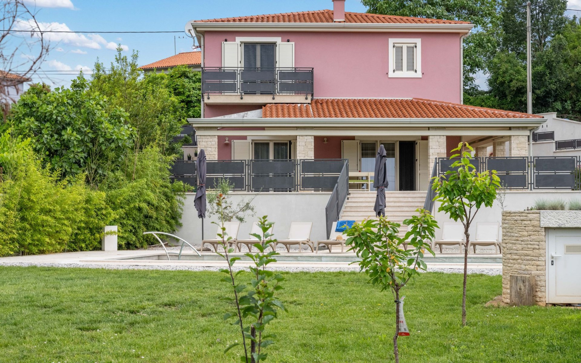 Mit insgesamt 150m2 auf 1000m2 bietet die Villa einen traumhaften Urlaub, in der Nähe Geschäfte wie Lidl, Spar und Plodine.