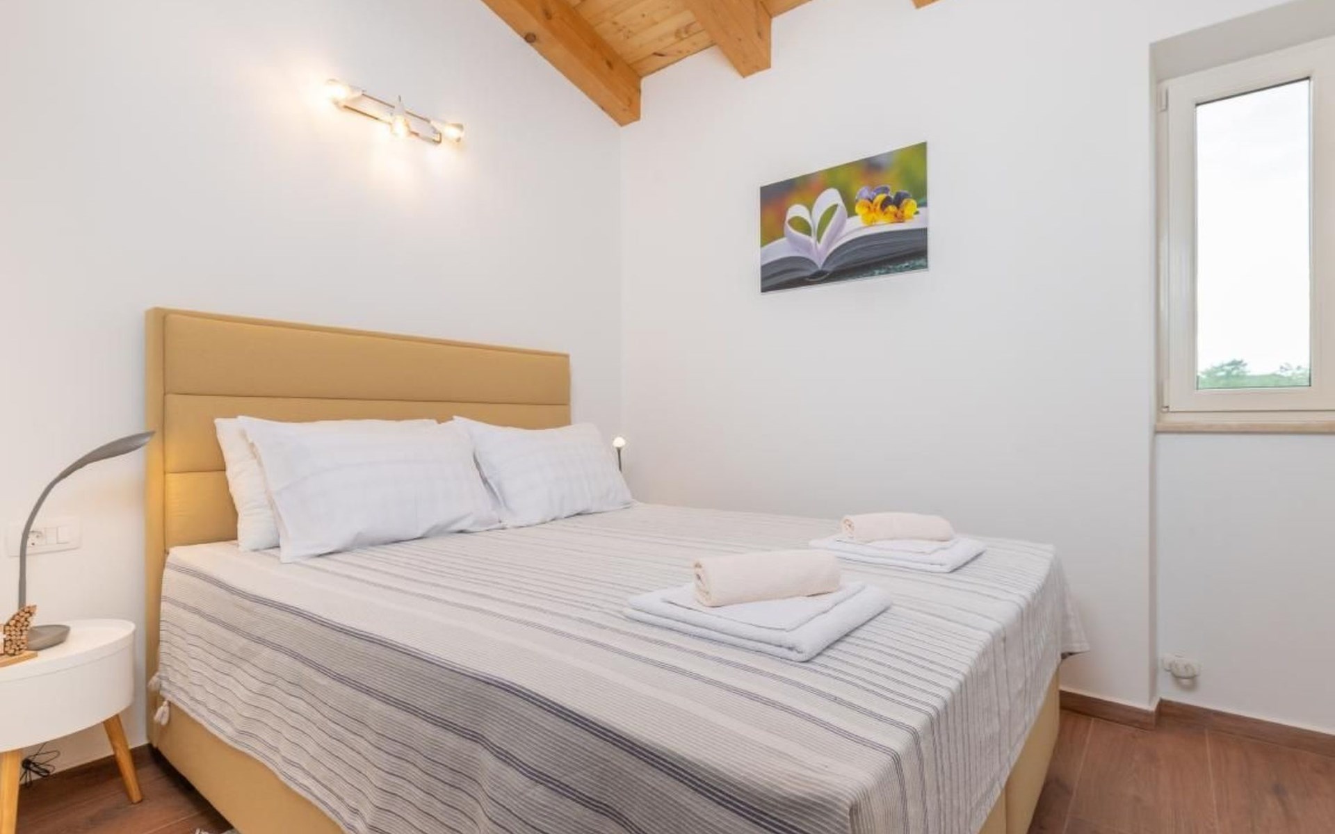 In fußläufiger Entfernung zu einem Restaurant und nicht einmal 15 Autominuten von den schönsten Stränden Istriens entfernt. Das Haus kann max. 8 Personen beherbergen, da auf der ausziehbaren Couch auch noch zwei weitere Personen einen alternativen Schlafplatz finden.