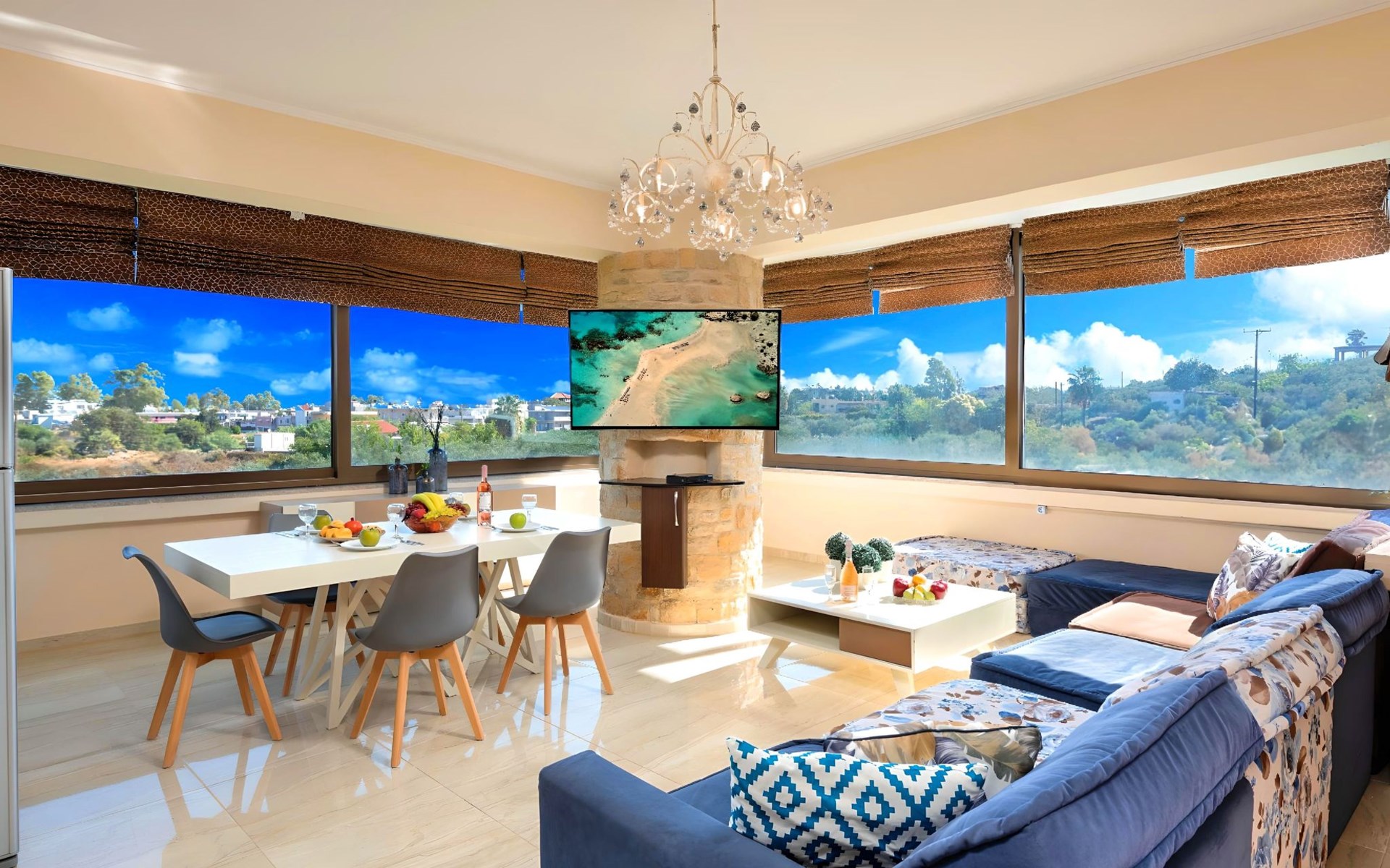 Versteckt in der friedlichen Umarmung von Georgioupolis ist die Villa Mirsini ein moderner Zufluchtsort, an dem Luxus auf Ruhe trifft. Am östlichen Rand der Präfektur Chania gelegen, wird dieser atemberaubende Rückzugsort von Kretas Naturwundern umrahmt - atemberaubenden Bergen, kristallklaren Stränden und dem bezaubernden Kournas-See.