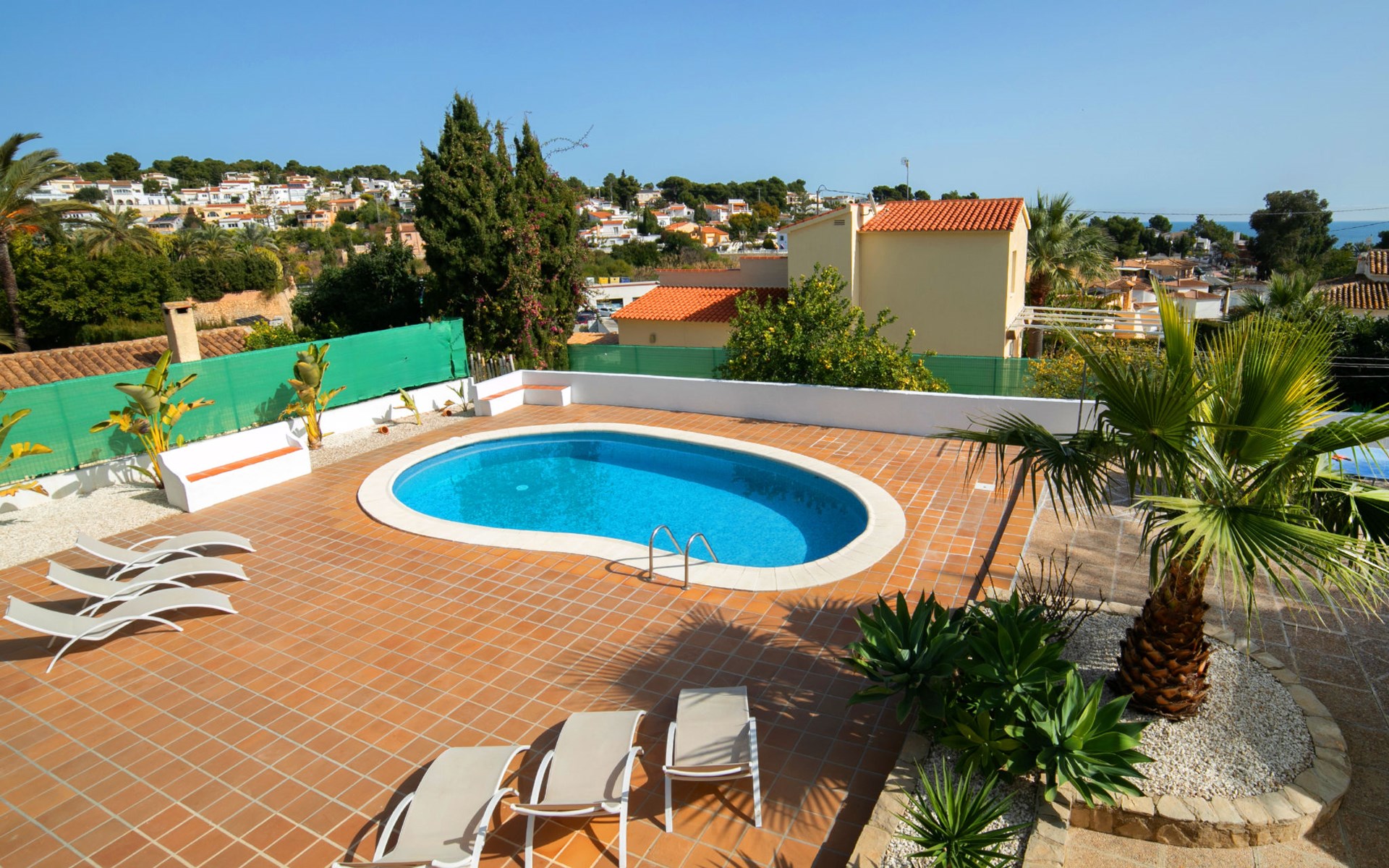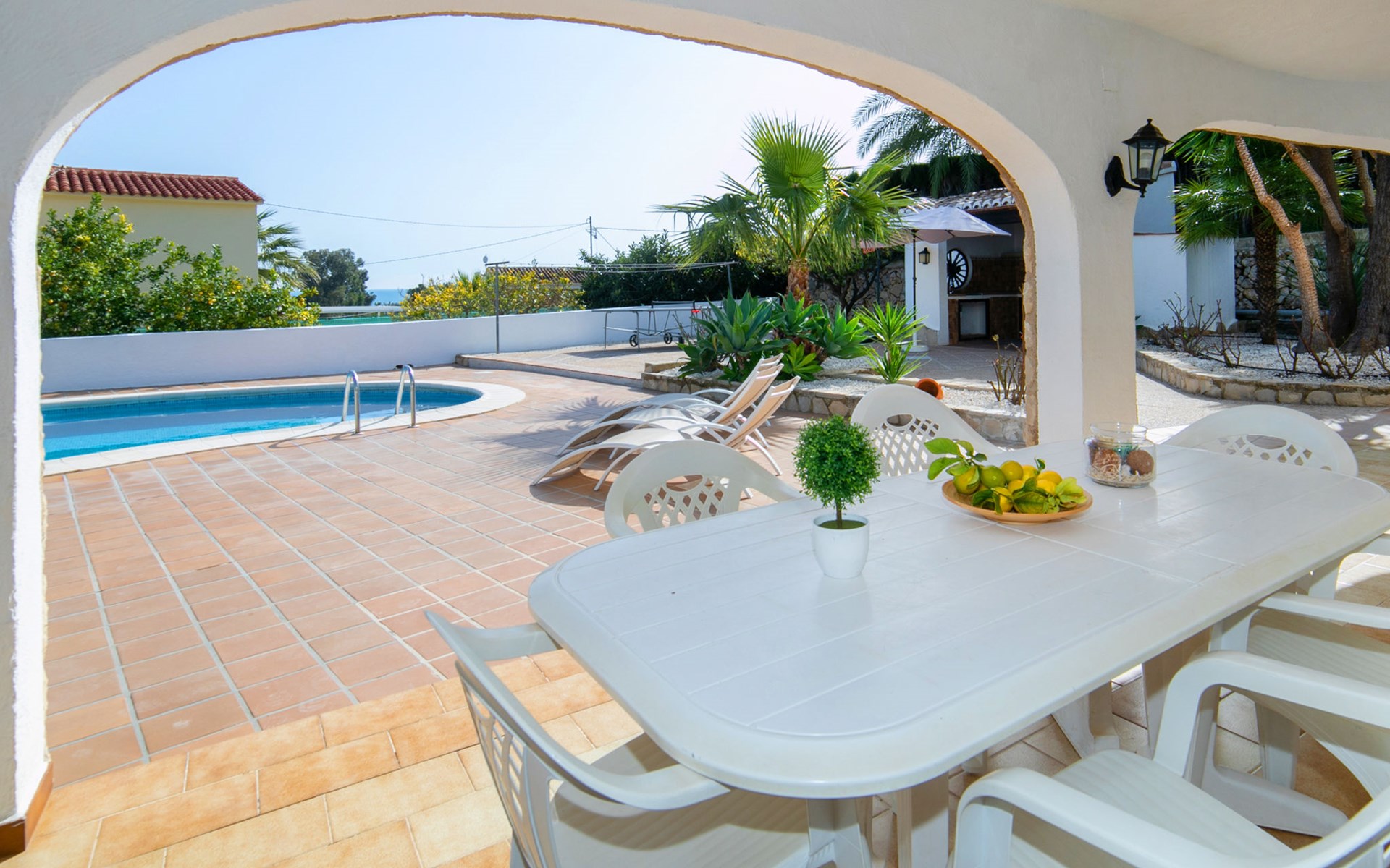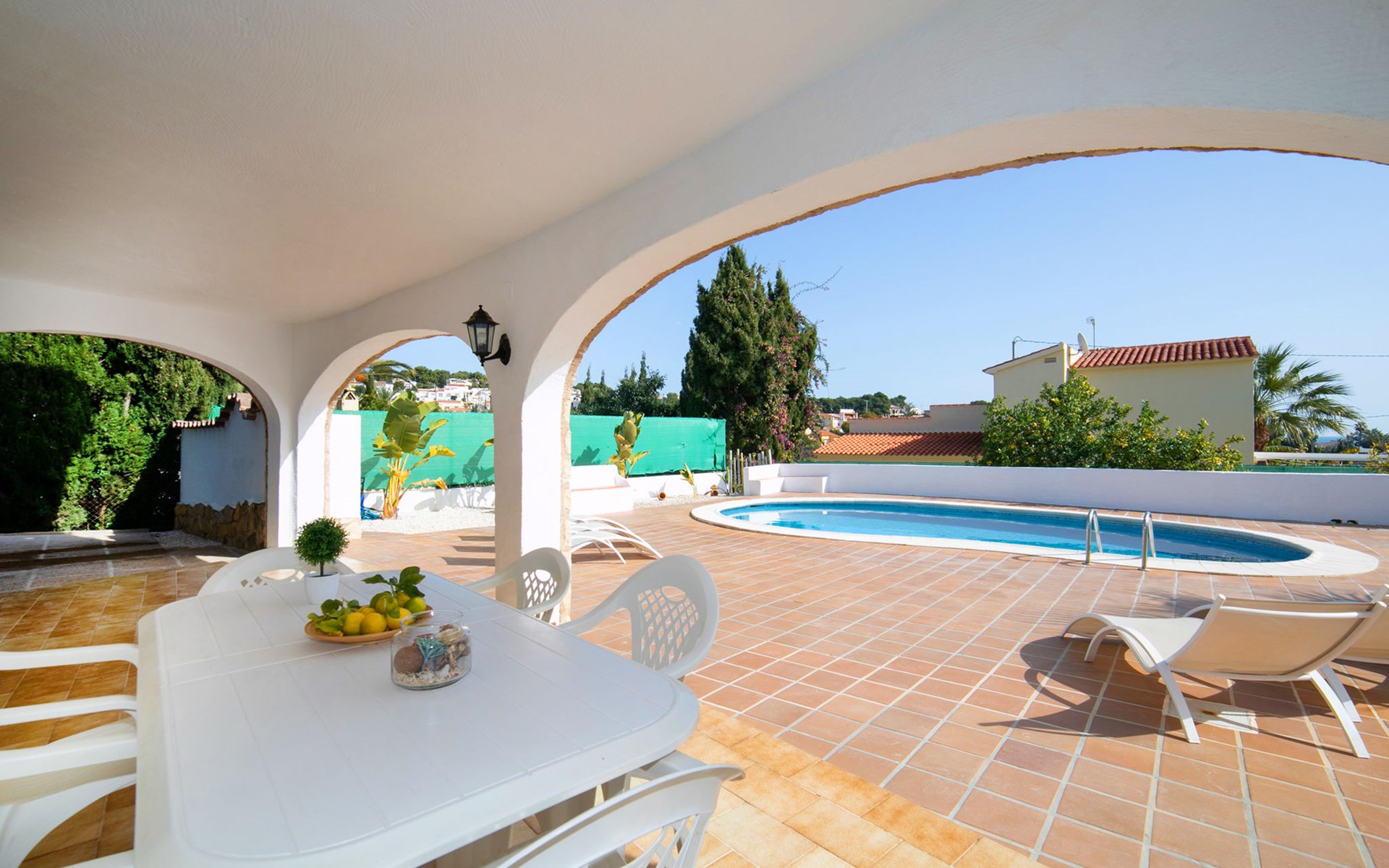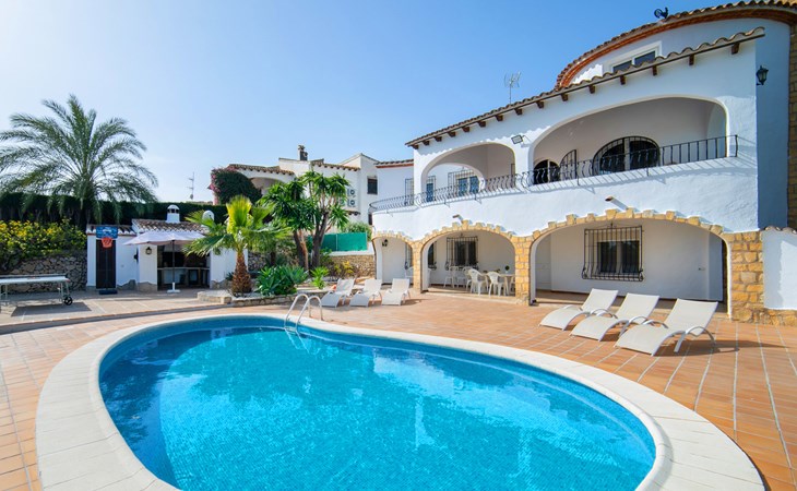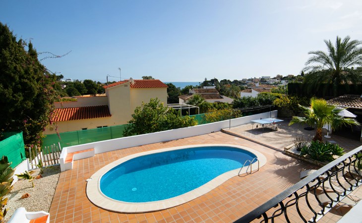 La Fustera: Villa "Luisa". 5.5 km vom Zentrum von Calpe, 600 m vom Meer. Zur Alleinbenutzung: Grundstück 800 m2, Garten, Schwimmbad (4 x 8 m, saisonale Verfügbarkeit: 01.Jan. - 31.Dez.). Aussendusche. Supermarkt, Restaurant, Bar 250 m, Bushaltestelle "Estación Bus" 5.6 km, Bahnstation "Estación Tren Calp" 7.2 km, Sandstrand 600 m. Nahe gelegene Sehenswürdigkeiten: Aqualandia, Mundormar, Terra Mítica, Terra Natura, y Benidorm Palace (Benidorm). Grillhäuschen mit Brotbackofen. Ping-Pong.