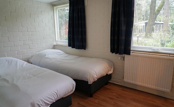 Boshuis 6 hat eine schöne Lage inmitten des Waldes. Der freistehende Bungalow ist für 6 Personen geeignet. Im Erdgeschoss befindet sich das Wohnzimmer mit Flügeltüren zum Garten, eine Küche mit Gasherd, Geschirrspüler, Backofen und Kühl-/Gefrierschrank. Außerdem gibt es zwei Schlafzimmer mit je 2 Einzelbetten und 2 Badezimmer, eines mit Toilette, Waschbecken und Badewanne und eines mit Toilette, 2 Waschbecken und einer Dusche. Im 1. Stock gibt es ein weiteres Schlafzimmer mit 2 Einzelbetten und Kleiderschränken. Im Garten gibt es einen Außenkamin, Gartenmöbel und einen Picknicktisch.