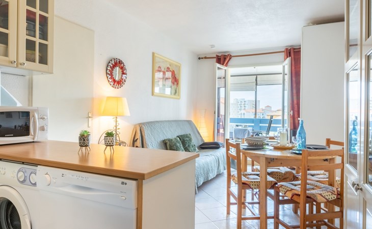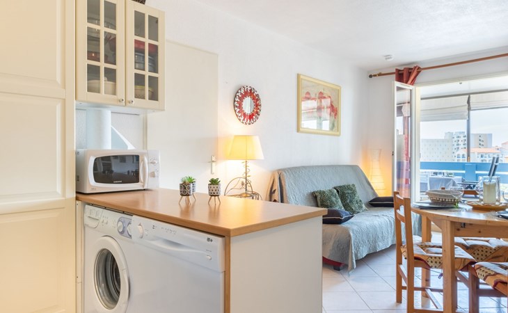Residenz "Parc de la Mer". Im Ortsteil la Grande Plage, 100 m vom Meer, vom Strand, Strasse zu überqueren. Öffentliche Parkplätze 100 m. Einkaufsgeschäft, Lebensmittelgeschäft 50 m, Einkaufszentrum 30 m, Restaurant, Bar, Bäckerei, Café 50 m, Fahrradverleih 80 m, Bushaltestelle "Les Marines" 300 m, Bahnstation "Perpignan" 33 km. Nahe gelegene Sehenswürdigkeiten: Aqualand Port Leucate 7 km, Réserve Africaine de Sigean 41 km, site des dosses 4 km, téléski nautique 5 km. Bekannte Seen in der Umgebung sind gut erreichbar: Etang de Leucate ou salses 11 km, Lac de Villeneuve de la Raho 28 km. Wandergebiete: Sentier du guetteur 8 km, la forteresse de salses 15 km, Sentier du littoral Collioure 40 km. Bitte beachten: Das Foto ist nur ein Hausbeispiel.