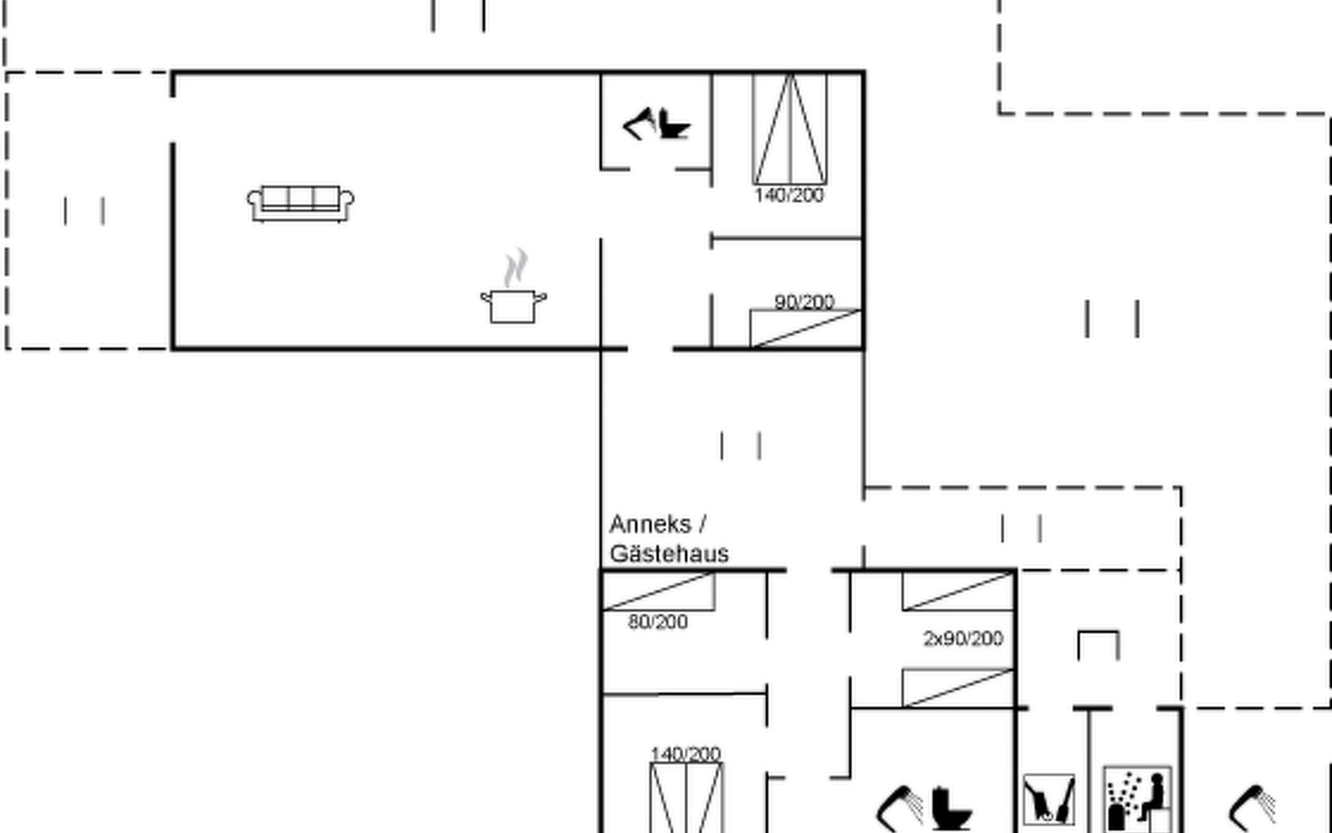 Einfamilienhaus, Baujahr 1978. 360 m vom Meer. Zur Alleinbenutzung: naturbelassenes Grundstück 3'296 m2. Aussendusche, Terrasse (110 m2). Im Hause: Sauna, Waschmaschine, Wäschetrockner. Parkplatz beim Haus. Lebensmittelgeschäft 7 km. Der Besitzer akzeptiert keine Jugendgruppen.