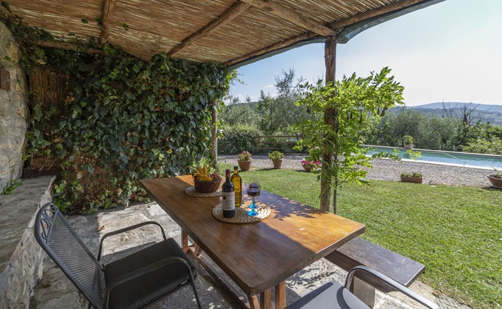Freistehender Landsitz "Olivo", renoviert im Jahre 2020. 500 m vom Zentrum von Castellina in Chianti, 26 km vom Zentrum von Siena, 48 km vom Zentrum von Firenze, alleinstehende, ruhige, sonnige Lage. Zur Alleinbenutzung: Garten 500 m2 (eingezäunt), Schwimmbad (8 x 3 m, 130 cm tief, saisonale Verfügbarkeit: 01.Apr. - 31.Okt.). Aussendusche, Pergola, Gartenmöbel, Grill. Heizung vor Ort zu zahlen, Heizung nur verfügbar von 01.Nov. - 07.Apr.. Parkplatz auf dem Grundstück. Lebensmittelgeschäft, Supermarkt 500 m, Bushaltestelle 50 m, Thermalbad "Rapolano Terme" 52 km. Nahe gelegene Sehenswürdigkeiten: San Donato in Poggio 10 km, Radda in Chianti 11 km, Panzano in Chianti 13 km, Greve in Chianti, Monteriggioni 19 km, San Gimignano, Siena 27 km, Volterra 47 km.