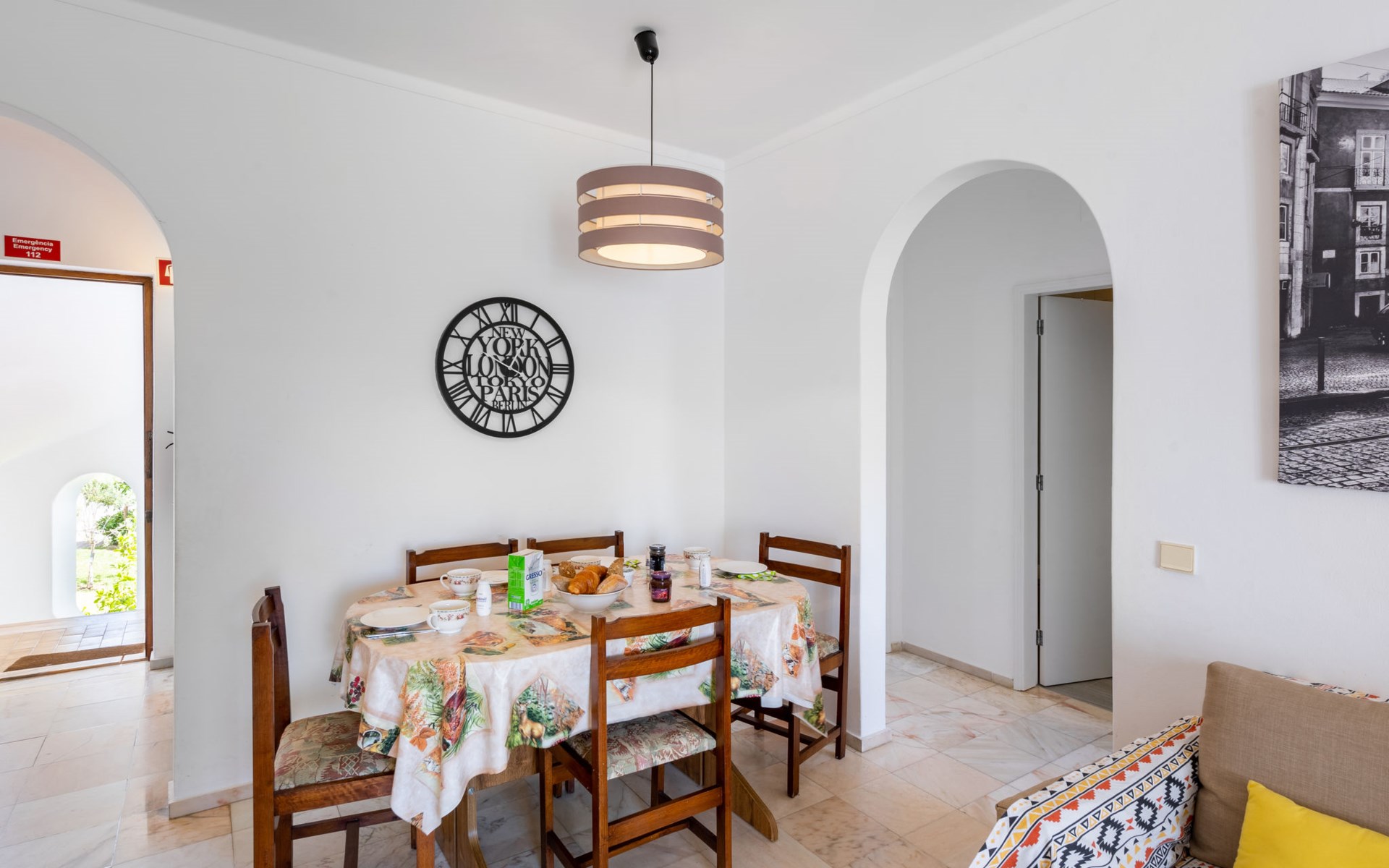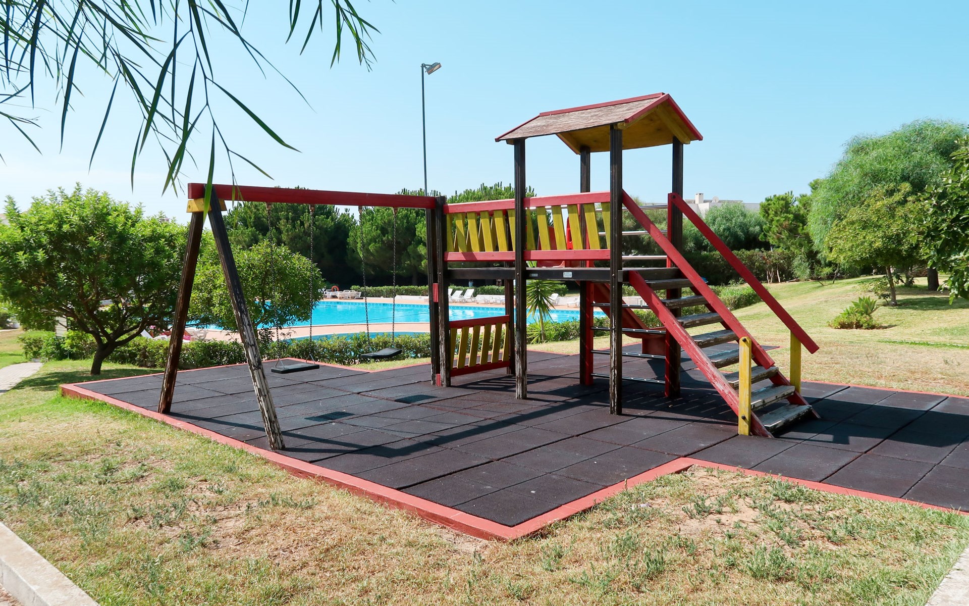 Ferienanlage "Quinta do Torrejão", auf 2 Stockwerken. 6 Häuser in der Residenz. 60 Wohnungen in der Residenz. Im Ortsteil Alporchinhos, 3 km vom Zentrum von Armação de Pêra, 4 km vom Zentrum von Porches, 9.4 km vom Zentrum von Lagoa, 1 km vom Meer. Zur Mitbenutzung: Grundstück 12'500 m2, gepflegter Garten mit Rasen und Bäumen, Schwimmbad (250 m2, 125 - 255 cm tief, saisonale Verfügbarkeit: 01.Jan. - 31.Dez.). WC im Poolbereich, Kinderbecken, Aussendusche, Kinderspielplatz. Im Hause: Dachterrasse. Parkplatz (beschränkte Anzahl) auf dem Grundstück. Supermarkt 750 m, Bushaltestelle 350 m, Sandstrand "Nossa Senhora da Rocha" 1 km. Golfplatz (18 Loch) 9.6 km. Nahe gelegene Sehenswürdigkeiten: Aqualand 8 km. Der Besitzer akzeptiert keine Jugendgruppen.