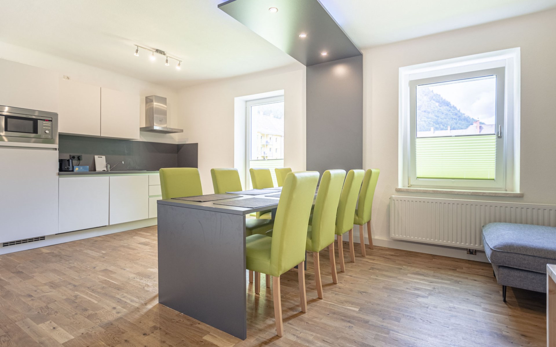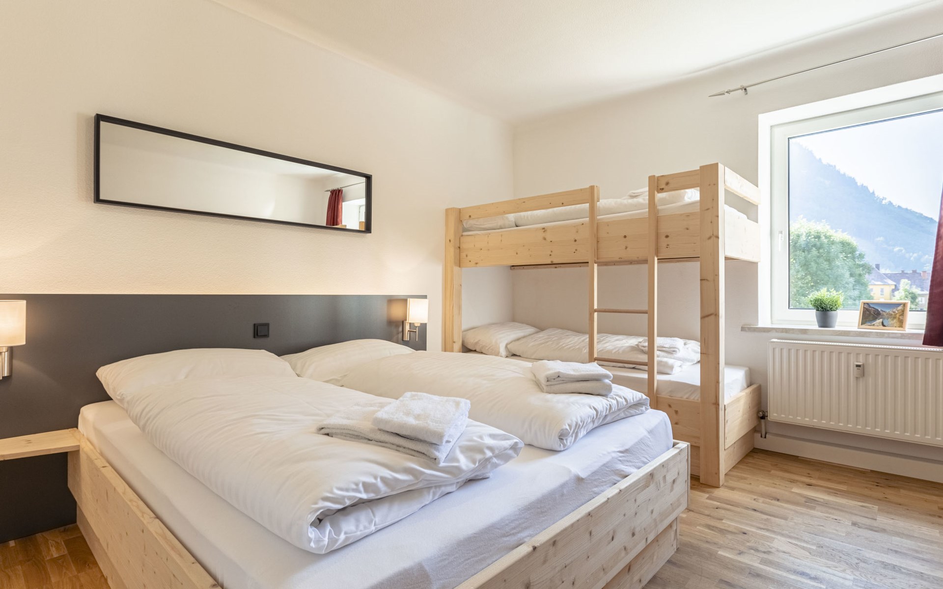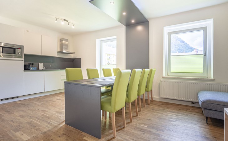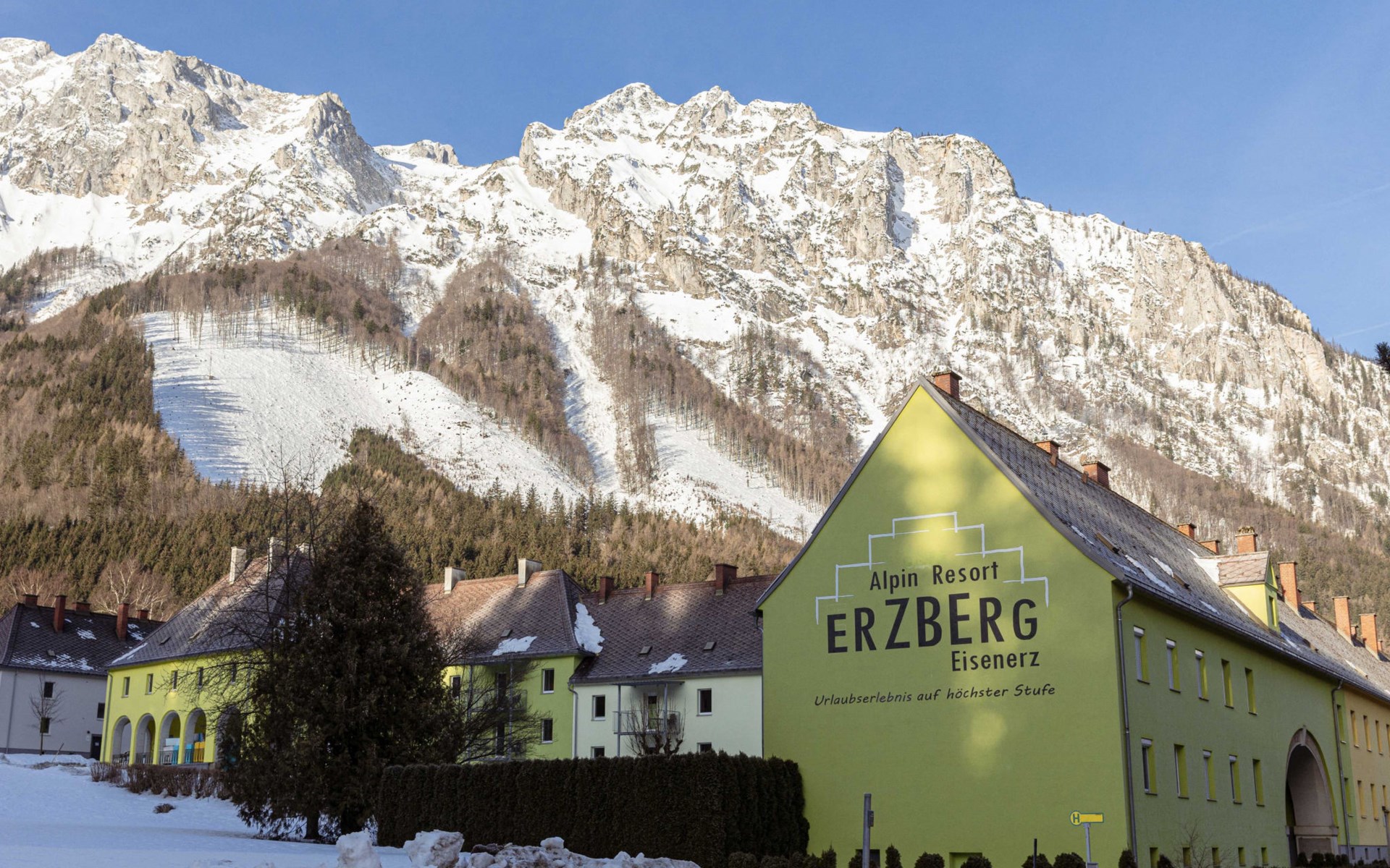 Hier wurde eine historische Bergarbeitersiedlung behutsam für den Tourismus adaptiert. Moderne, komfortable Ferienanlage "Erzberg Alpin by Alps Resorts". 3 km vom Zentrum, sonnige, erhöhte Lage, 1.5 km vom See, 11 km vom Skigebiet. Zur Mitbenutzung: grosser Garten mit Pflanzen und Bäumen, Liegewiese. Kinderspielplatz, begrünter Innenhof. In der Anlage: Empfang, Wireless LAN, Zentralheizung, Waschmaschine (zur Mitbenutzung, extra). Frühstück und Halbpension (extra). Parkplatz beim Haus. E-Ladestation. Supermarkt 1.5 km, Restaurant 200 m, Tauchzentrum 6 km, Hallenbad 3 km, See Leopoldsteiner See 1.5 km. Sportzentrum 100 m, Skisportanlagen 11 km, Langlaufloipe 6 km, Eisfeld 1.5 km. Nahe gelegene Sehenswürdigkeiten: Abenteuer Erzberg 5 km, Naturpark Gesäuse 12 km, Schaubergwerk Radmer 17 km. Bekannte Skigebiete sind gut erreichbar: Skigebiet Präbichl 12 km. Wandergebiete: Hochschwab. Bitte beachten: Fahrzeug empfohlen. Das Foto ist nur ein Wohnungsbeispiel. Eintritt in das Vitalbad Eisenerz + 1 Stadtführung pro Aufenthalt GRATIS für alle Gäste! Das Vitalbad hat im September wegen Renovierung geschlossen. Erzberg Alpin Gästekarte inkludiert.