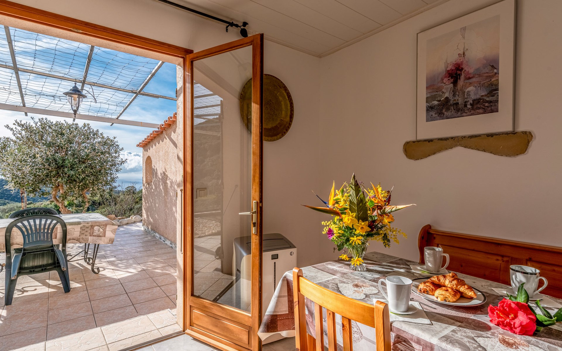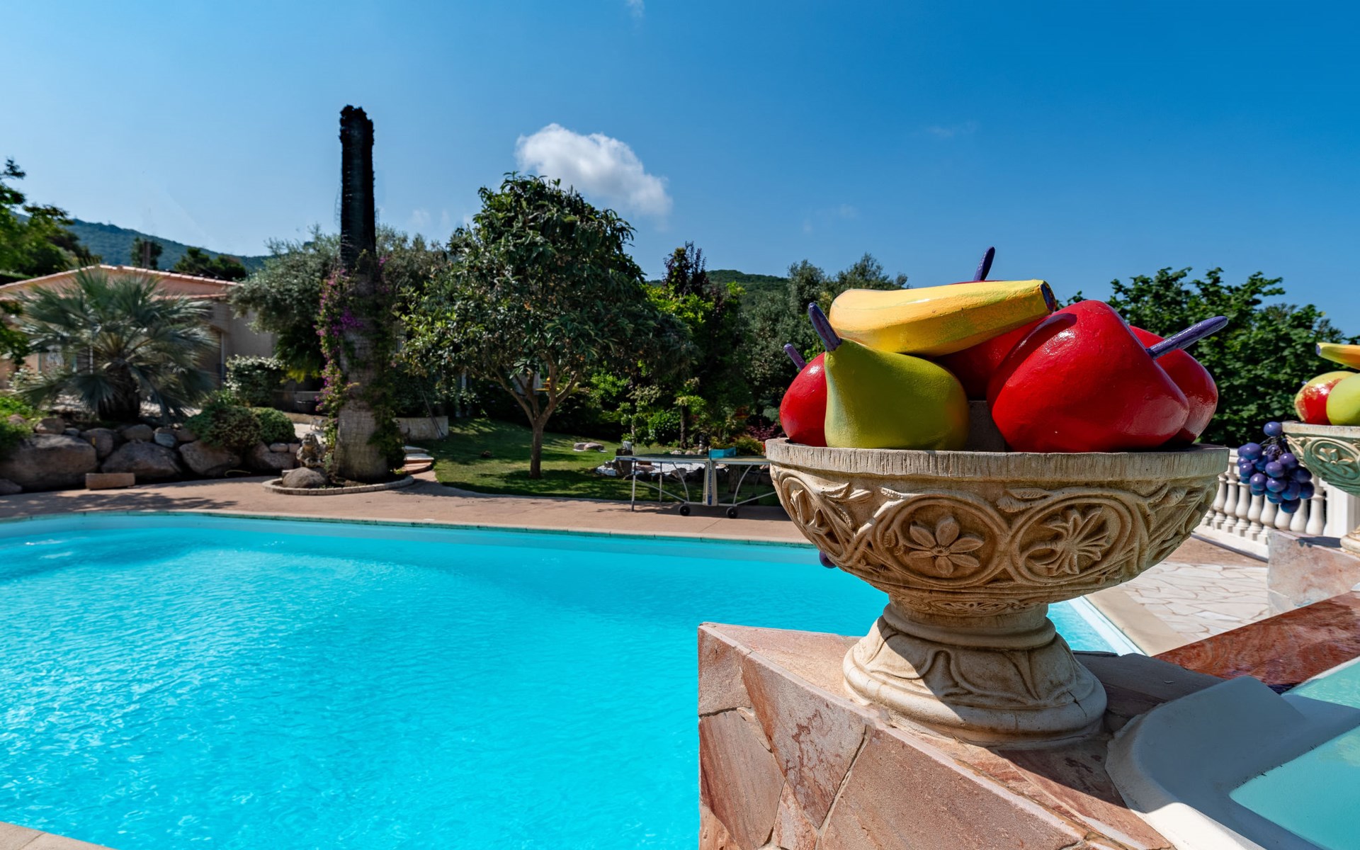 Kleine Feriensiedlung "Campestra". Ausserhalb des Ortes, 6 km vom Zentrum von Chiavari, alleinstehende, ruhige, sonnige Lage, 6 km vom Meer. Zur Mitbenutzung: Garten 4'000 m2 Rasen und Bäumen, Schwimmbad (6 x 13 m, 110 - 240 cm tief, saisonale Verfügbarkeit: 15.Mai. - 30.Okt.) mit Alarmanlage. Tischtennis, Gartenmöbel. Im Hause: Waschmaschine (zur Mitbenutzung, extra). Parkplatz. Lebensmittelgeschäft 6 km, Supermarkt 20 km, Restaurant 6 km, Bushaltestelle 7 km, Sandstrand "Mare e Sole" 6 km, Felsstrand 6 km. Nahe gelegene Sehenswürdigkeiten: Porticcio 20 km. Bitte beachten: Fahrzeug empfohlen. Der Besitzer wohnt auf dem gleichen Grundstück.