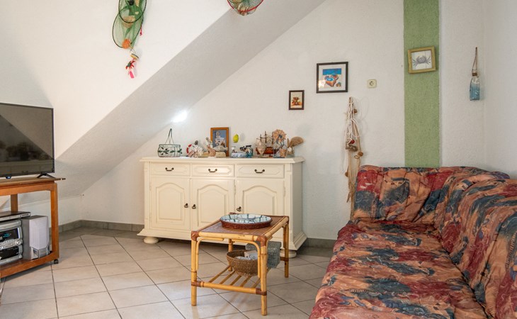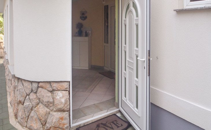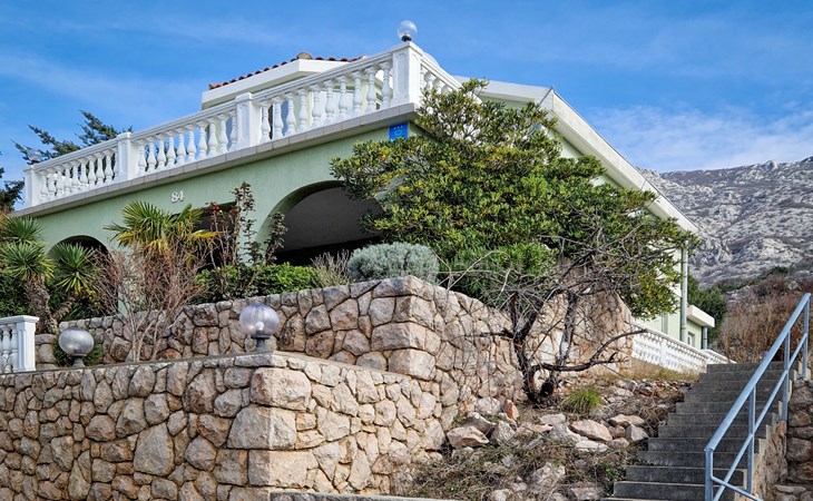 Ribarica 5 km von Karlobag: Einfamilienhaus "Alma", auf 2 Stockwerken. 80 m vom Meer, 80 m vom Strand, an einer Strasse. Zur Alleinbenutzung: Grundstück 300 m2, Blumen und Bäumen. Grill. Im Hause: Internetzugang, Waschmaschine. Parkplatz (für 2 Autos) beim Haus auf dem Grundstück. Einkaufsgeschäft 400 m, Restaurant 550 m, Bäckerei 300 m, Café 500 m, Bushaltestelle 1.3 km, Kieselstrand 80 m. Nahe gelegene Sehenswürdigkeiten: Memorial Center ''Nikola Tesla'' Smiljan 44 km, Plitvice Lakes National Park 91 km.