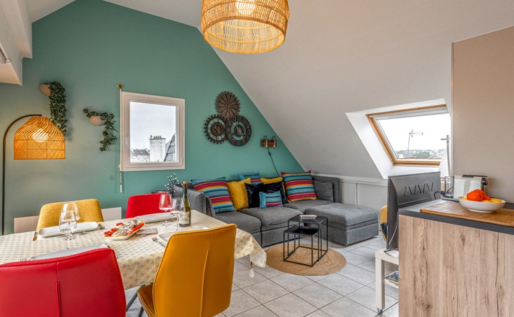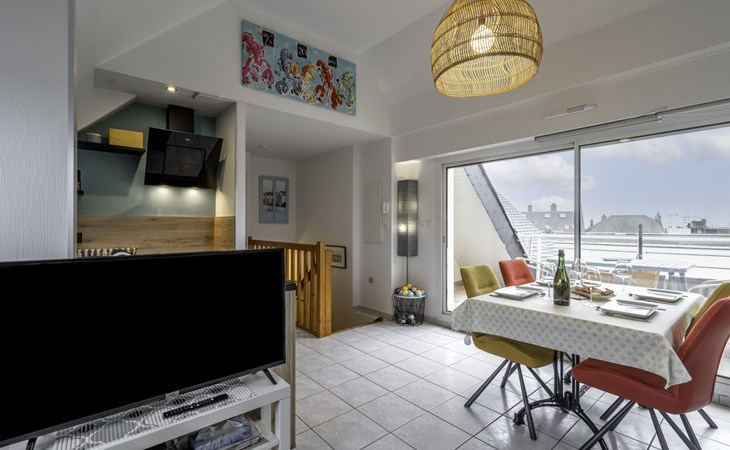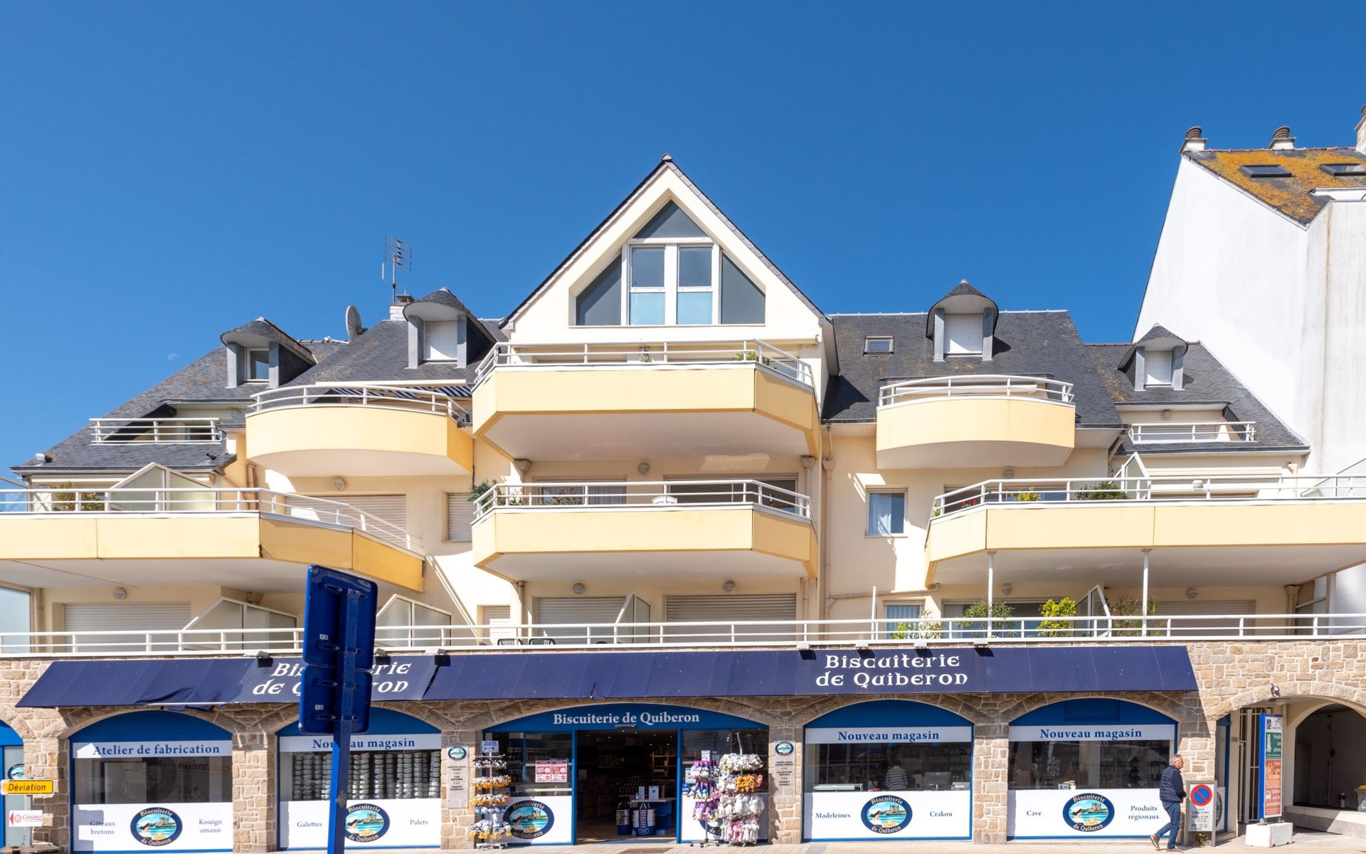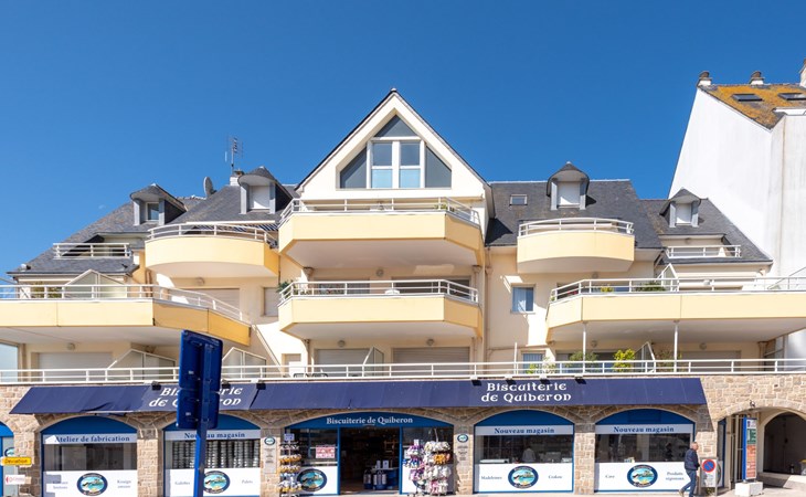 Residenz "Le Hoche", auf 3 Stockwerken. Im Herzen der Stadt, vom Meer, 50 m vom Strand. In der Anlage: Fahrstuhl. Einkaufsgeschäft 30 m, Lebensmittelgeschäft 100 m, Restaurant, Bar, Café 10 m, Fahrradverleih 20 m, Sandstrand "Grande Plage" 50 m, Hallenbad 800 m, Thermalbad "Thalassothérapie de Quiberon" 1 km. Tennis 2 km. Nahe gelegene Sehenswürdigkeiten: Casino de Quiberon 800 m, Thalassothérapie de Quiberon 2 km, Les Alignements de Carnac 18 km, Auray 30 km, Vannes 40 km, Belle-ile-en-Mer, Houat, Hoedic. Die Schlüsselübergabe findet bei der Agentur Interhome in Quiberon statt, 1 km.
