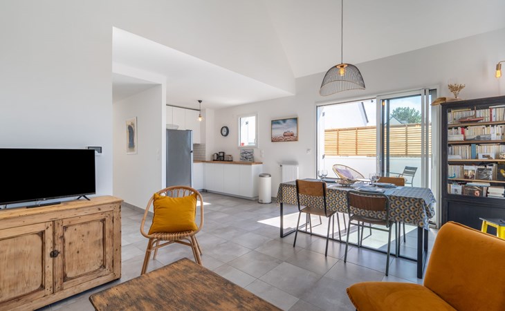 Quiberon: Appartementhaus "Le Clos Moguer", auf 2 Stockwerken. 600 m vom Meer, 1 km vom Strand. Einkaufsgeschäft, Supermarkt, Restaurant, Café 900 m, Sandstrand "La Grande Plage" 1.1 km. Sporthafen 800 m. Nahe gelegene Sehenswürdigkeiten: Carnac 20 km, Vannes 47 km, Lorient 64 km. Die Schlüsselübergabe findet bei der Agentur Interhome in Quiberon statt, 1 km.