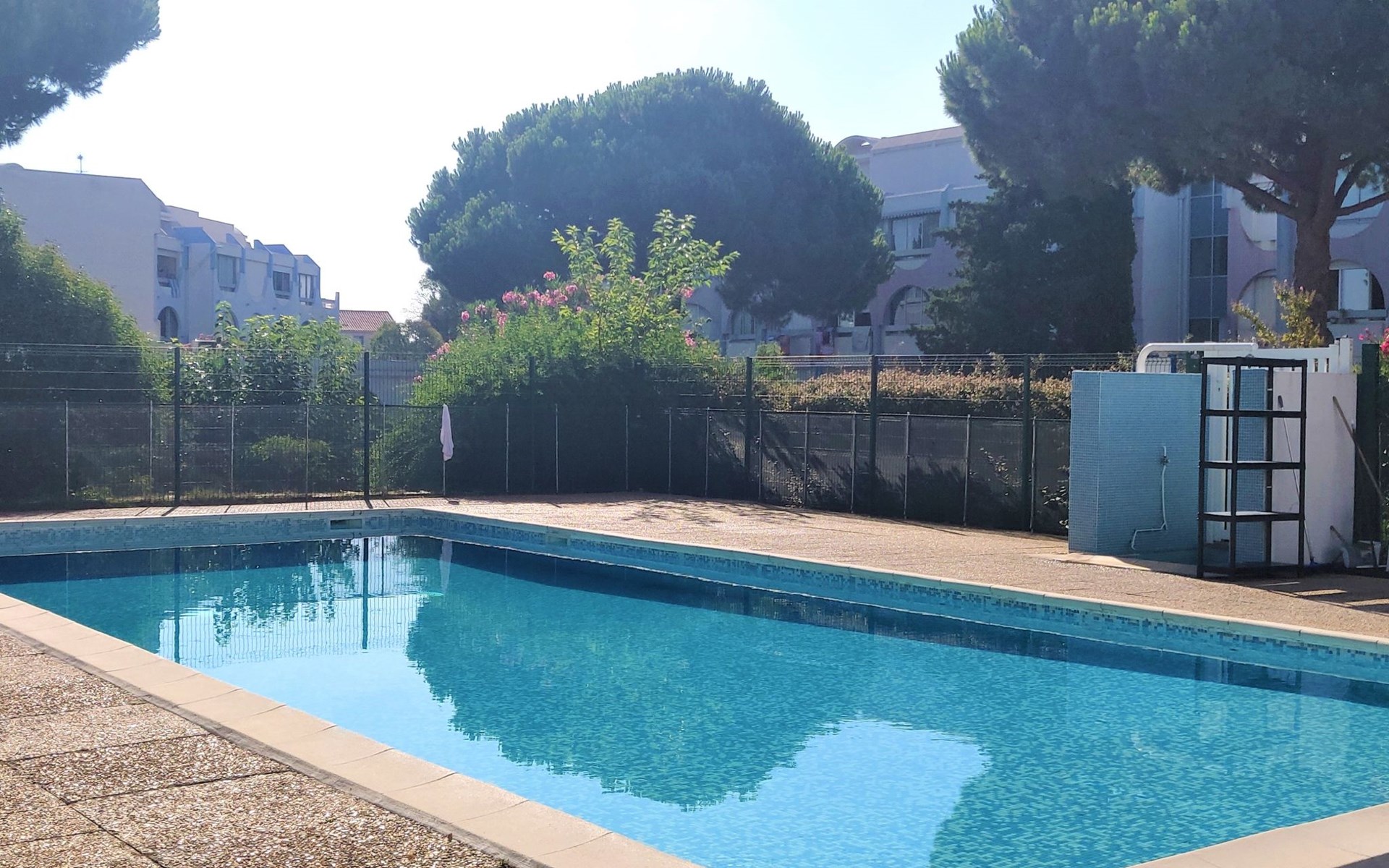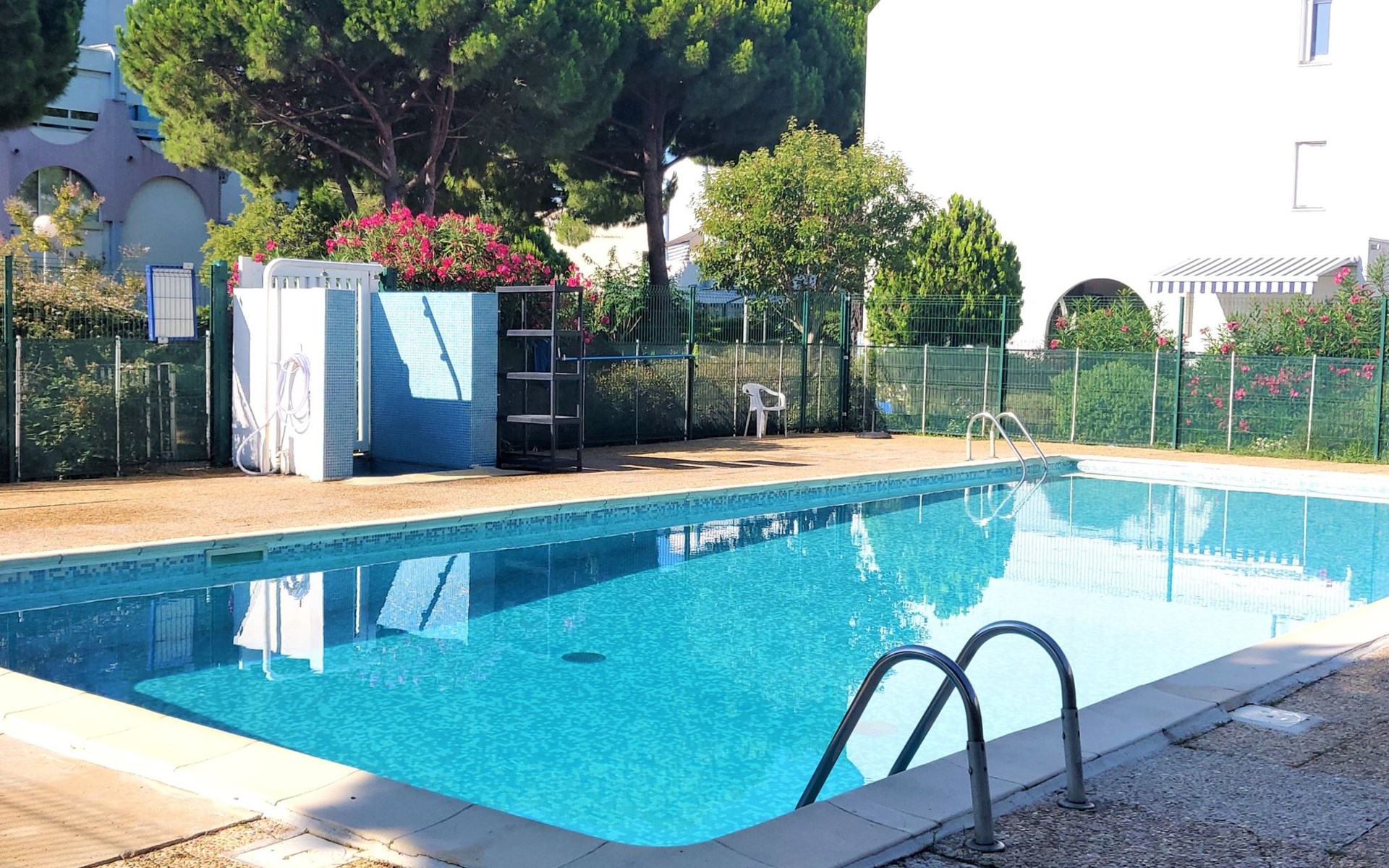 Residenz "Les Floralies II", auf 4 Stockwerken. Im Ortsteil le Palais de la Mer, 900 m vom Meer, 900 m vom Strand. Zur Mitbenutzung: Schwimmbad eckig eingezäunt (6 x 12 m, saisonale Verfügbarkeit: 01.Jul. - 31.Aug.). Kinderspielplatz, öffentliche Parkplätze auf der Strasse. Einkaufsgeschäft 100 m, Lebensmittelgeschäft, Restaurant 100 m, Sandstrand "Plage Nord" 900 m, Park "Luna-Park" 600 m, Thermalbad "Thalazur Les Bains de Camargue" 4.3 km. Minigolf 900 m. Nahe gelegene Sehenswürdigkeiten: Seaquarium 850 m, Casino Flamingo 1 km, Les Arènes du Grau du Roi 2.2 km, Aigues-Mortes 9 km, La Grande Motte 11 km, Nîmes 55 km. Wandergebiete: Réserve Naturelle de Camargue. Bitte beachten: Fahrzeug empfohlen. Die Schlüsselübergabe findet bei der Agentur Interhome in Port Camargue statt, 2 km. Flugplatz 23 km vom Haus. Weitere Unterkünfte sind buchbar. Lunapark (01.07. - 31.08.) 600 m. Das Schwimmbad bleibt montags geschlossen.