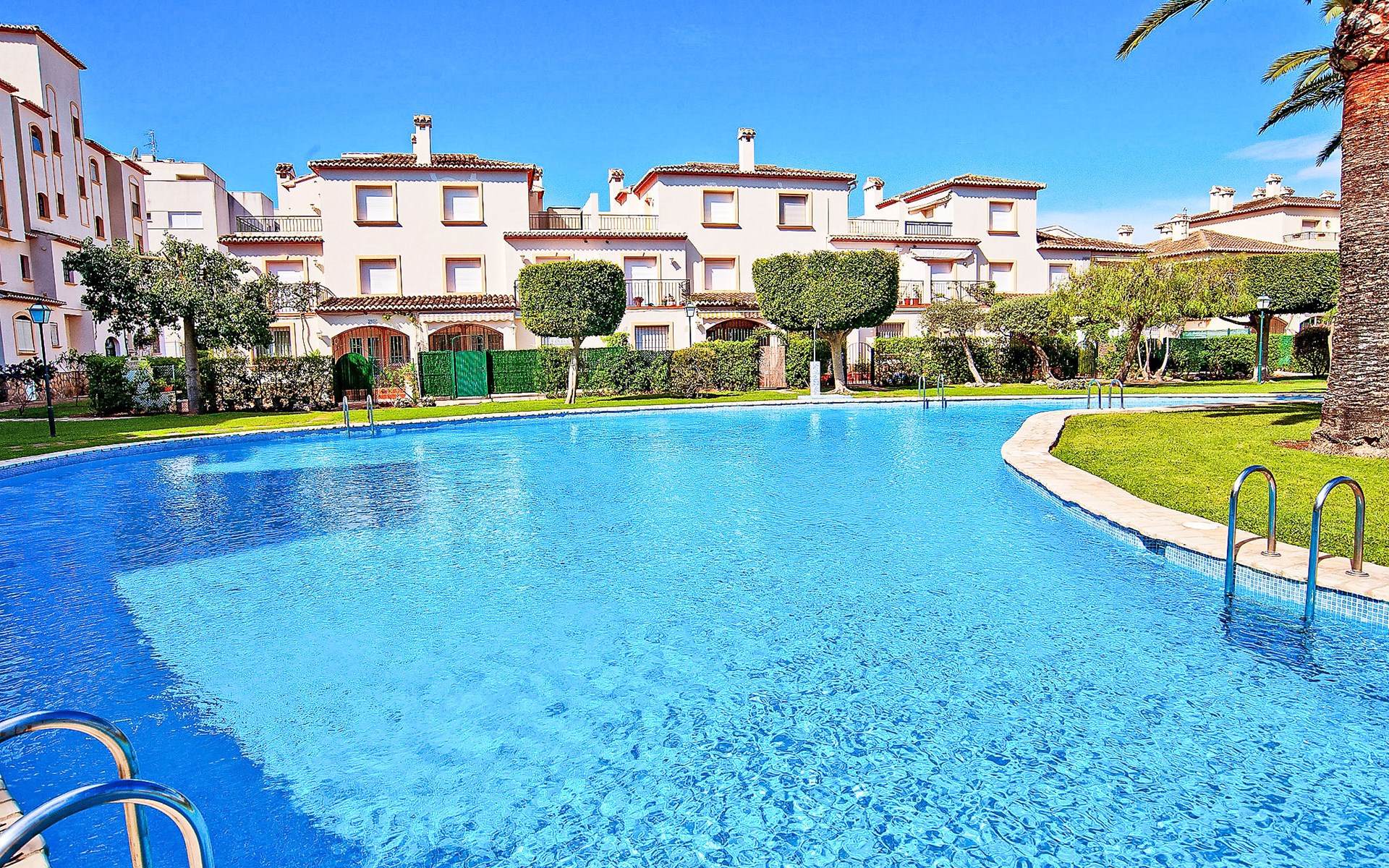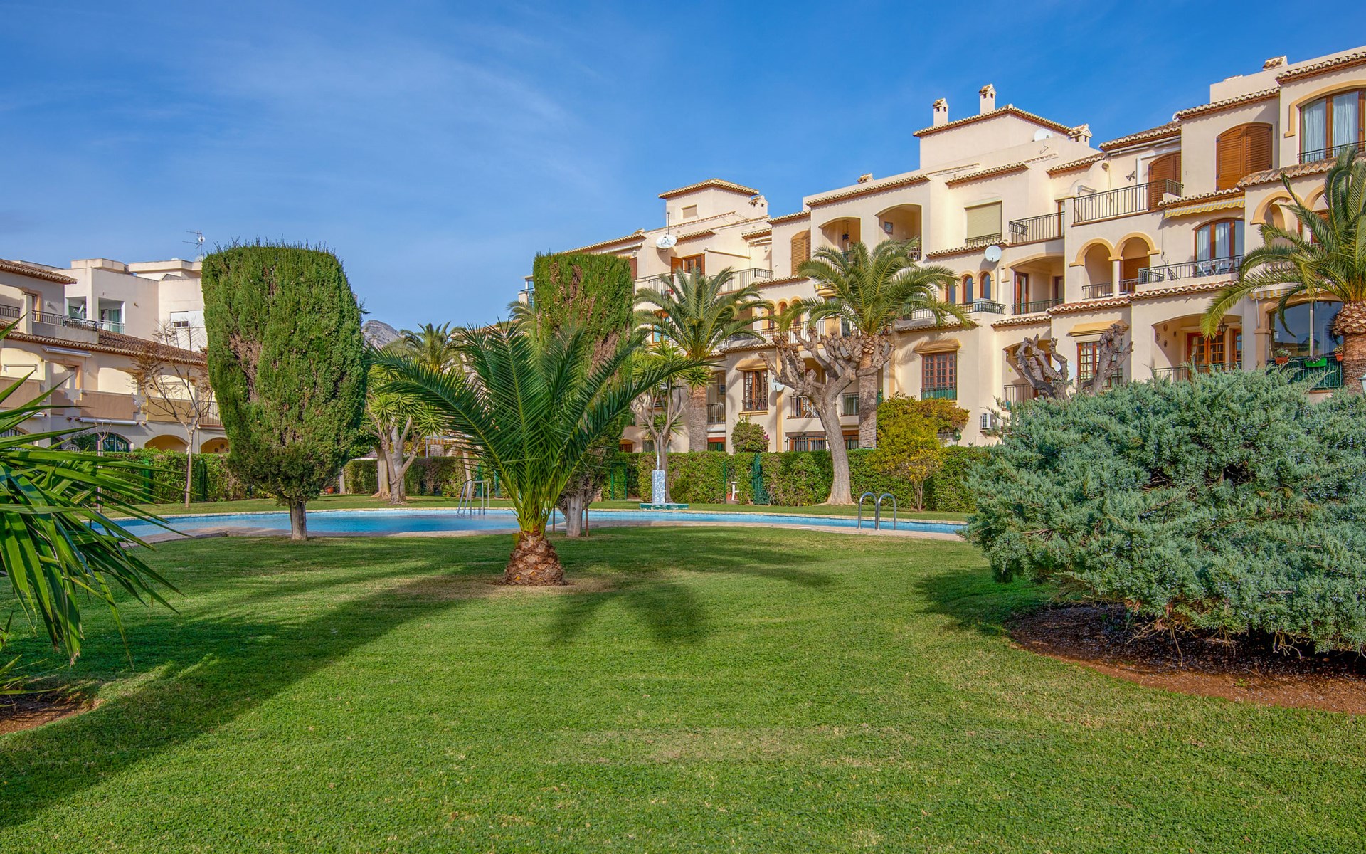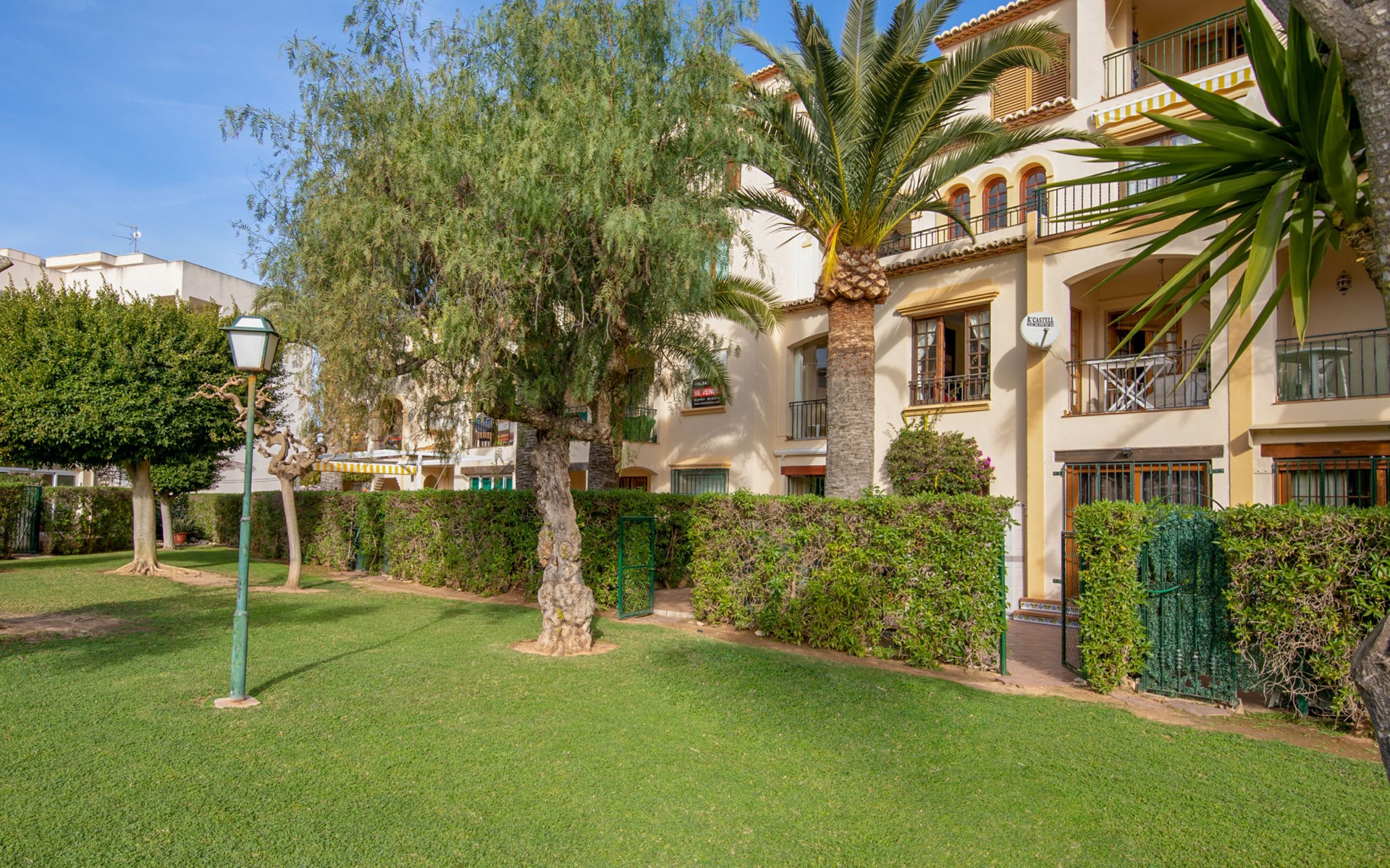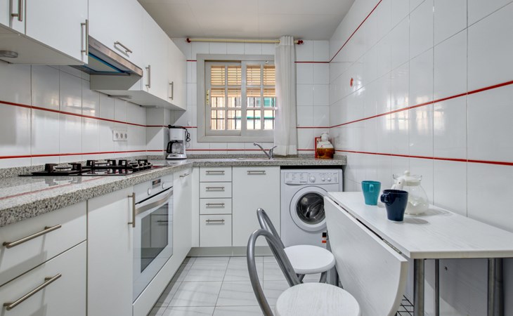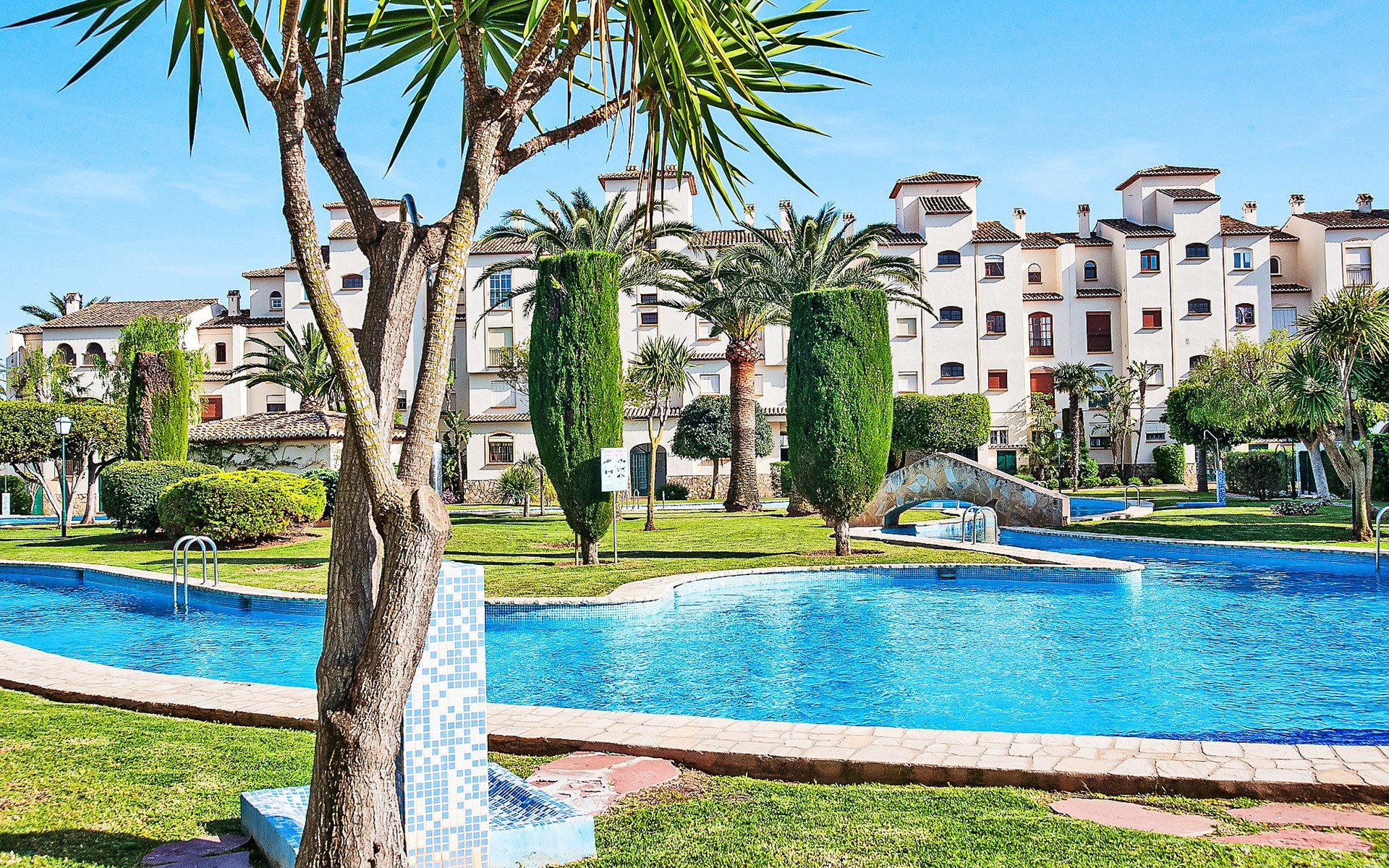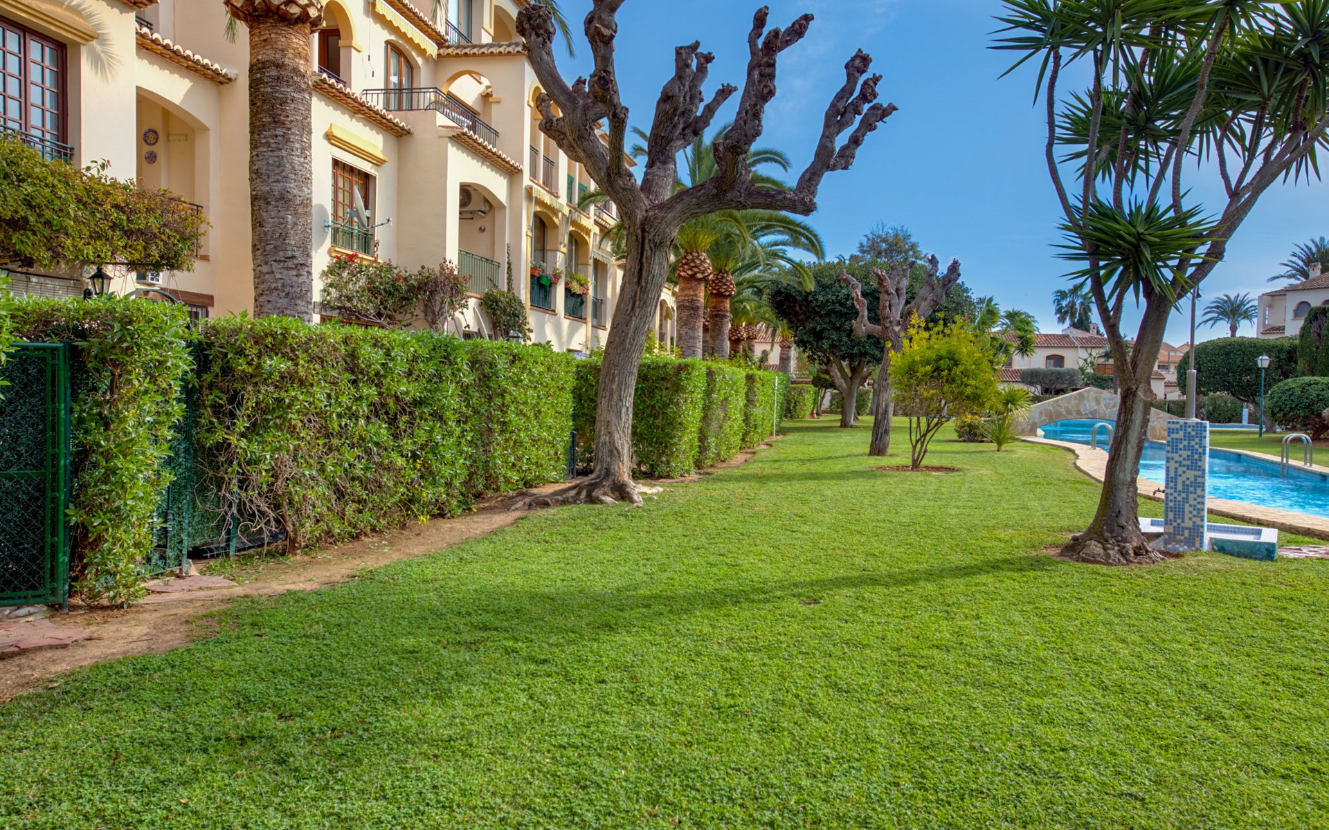 Sehr gemütliche, komfortable Residenz "La Isla". Ruhige, sonnige Lage, 600 m vom Meer. Zur Mitbenutzung: Garten mit Rasen, Liegewiese, Schwimmbad (90 x 60 m, 138 m Durchmesser, 110 - 200 cm tief, saisonale Verfügbarkeit: 01.Jan. - 31.Dez.) mit Innentreppe. Aussendusche. Im Hause: Fahrstuhl. Parkplatz auf dem Grundstück. Einkaufsgeschäft, Supermarkt, Restaurant, Bar 200 m, Bushaltestelle "Parada Arenal" 400 m, Sandstrand "Arenal" 600 m. Surfschule 300 m, Segelschule, Tennis 200 m.