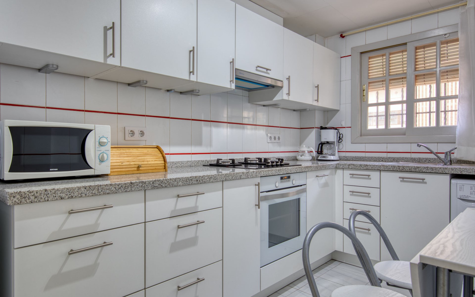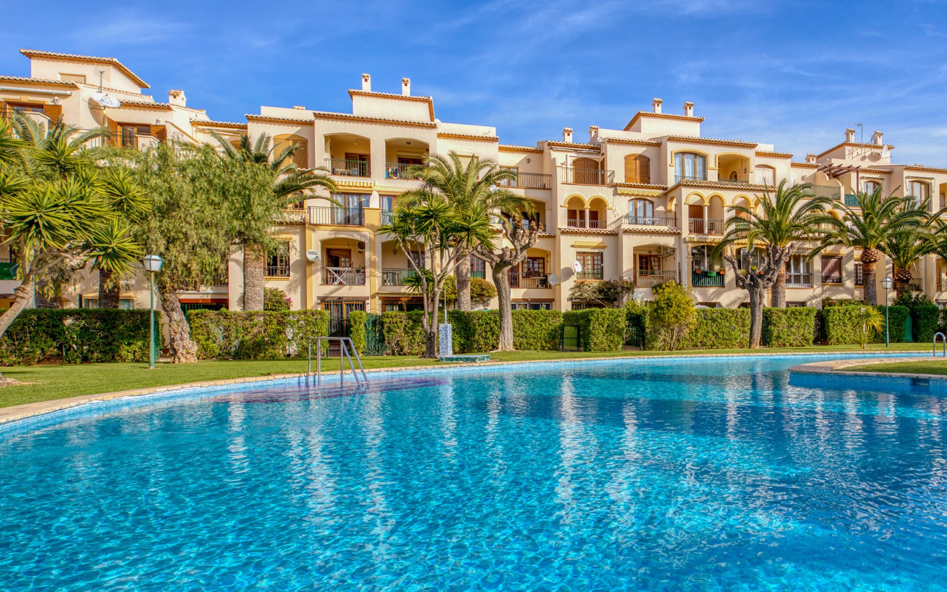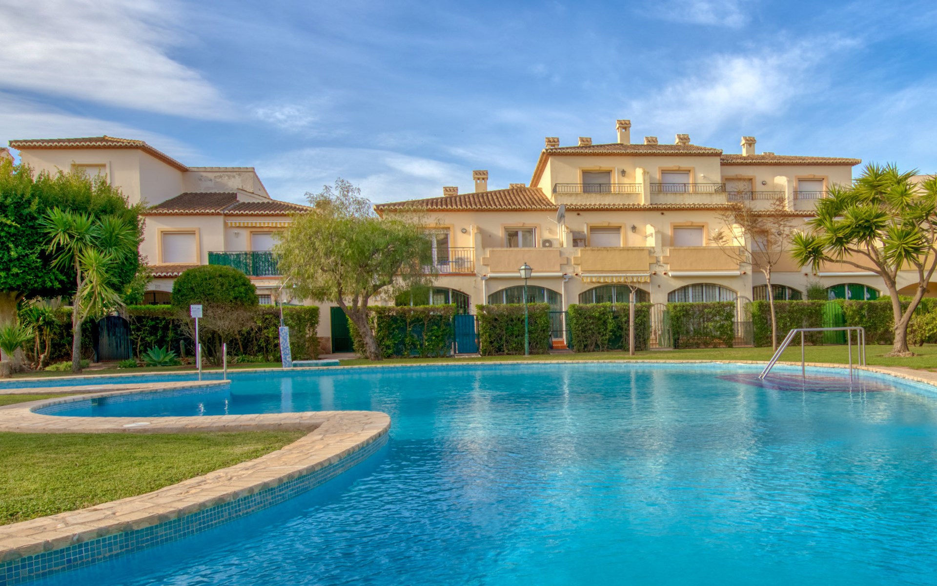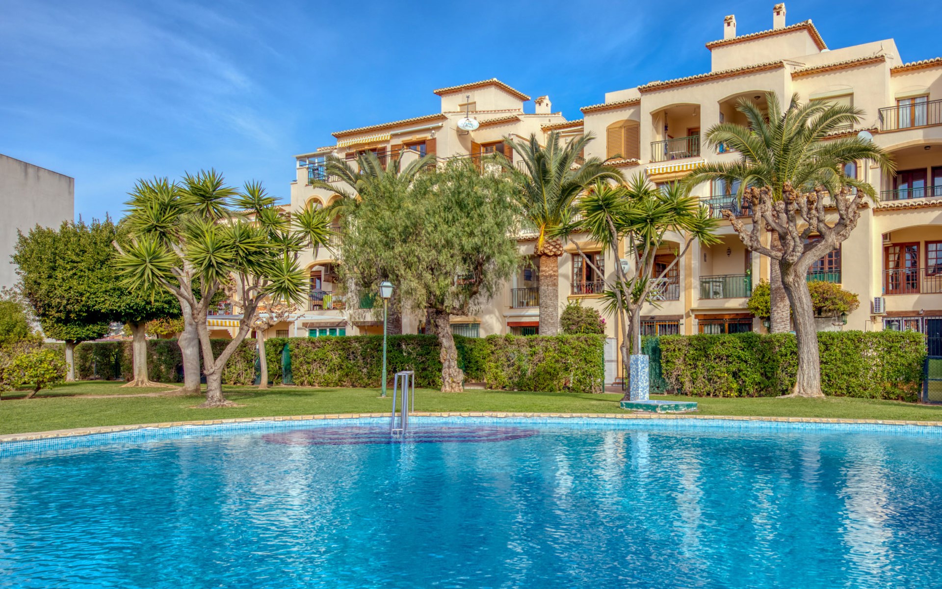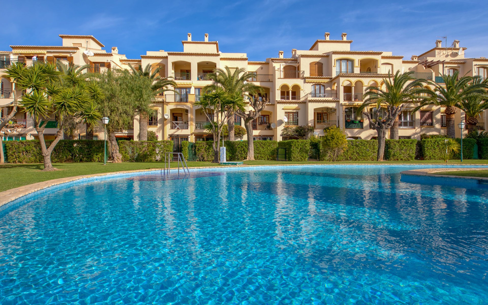 Sehr gemütliche, komfortable Residenz "La Isla". Ruhige, sonnige Lage, 600 m vom Meer. Zur Mitbenutzung: Garten mit Rasen, Liegewiese, Schwimmbad (90 x 60 m, 138 m Durchmesser, 110 - 200 cm tief, saisonale Verfügbarkeit: 01.Jan. - 31.Dez.) mit Innentreppe. Aussendusche. Im Hause: Fahrstuhl. Parkplatz auf dem Grundstück. Einkaufsgeschäft, Supermarkt, Restaurant, Bar 200 m, Bushaltestelle "Parada Arenal" 400 m, Sandstrand "Arenal" 600 m. Surfschule 300 m, Segelschule, Tennis 200 m.