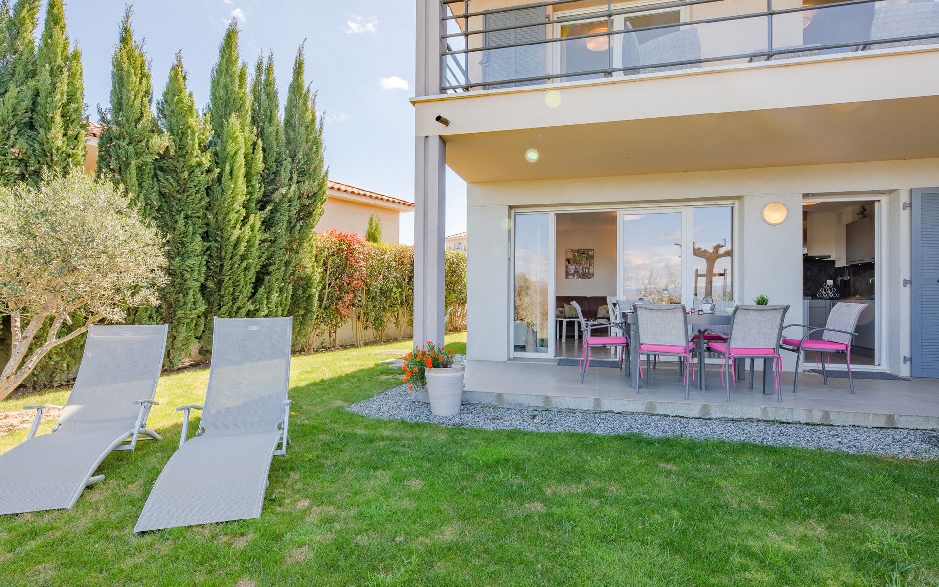 Finca "Only Roc", Baujahr 2021. Ausserhalb des Ortes, 4 km vom Zentrum von Roquebrune, 7.5 km vom Meer, 8 km vom Strand, am Golfplatz. Zur Mitbenutzung: Schwimmbad eckig (saisonale Verfügbarkeit: 01.Mai. - 30.Sep.). Dusche/WC im Poolbereich. Einkaufsgeschäft 4 km, Lebensmittelgeschäft 2 km, Einkaufszentrum 12 km, Bushaltestelle "Only Roc" 30 m, Bahnstation "Fréjus" 13 km, Sandstrand "Saint Aygulf" 7 km, Kieselstrand "Calanque des Louvans" 6 km, Tauchzentrum 13 km, Thermalbad "Thalasso de Port Fréjus" 13 km, See de l'Aréna 5 km. Sporthafen 7 km, Golfplatz (18 Loch) 2 km, Segelschule 13 km, Reitstall 1 km, Sportzentrum 7 km. Nahe gelegene Sehenswürdigkeiten: Lunapark, Aqualand 12 km, Fréjus 4 km, Saint Raphaël 15 km, Saint Tropez 30 km, Cannes 47 km, Nice 73 km. Bekannte Skigebiete sind gut erreichbar: Auron, Isola 2000 150 m. Bekannte Seen in der Umgebung sind gut erreichbar: Lac de St Cassien 50 km, Lac du Du Verdon 95 km. Wandergebiete: Estérel 20 km. Bitte beachten: Fahrzeug empfohlen.