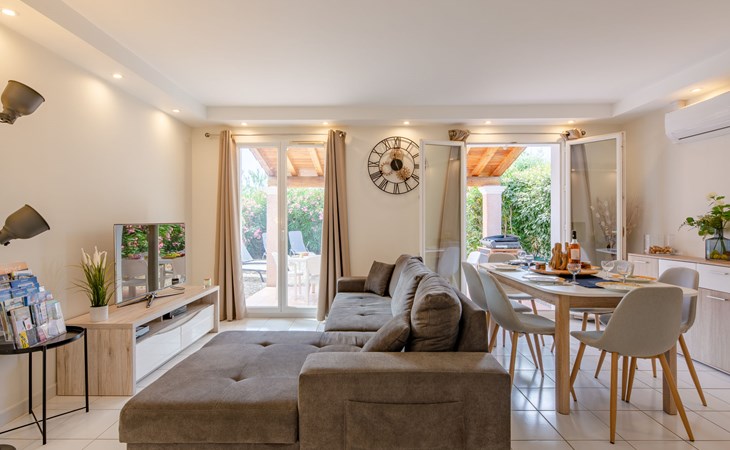 Residenz "Le Green Village". Am Ortsrand, 5 km vom Zentrum von Roquebrune sur Argens, ausserhalb des Ortes, 6 km vom Zentrum von Saint Aygulf, in einem Wohnquartier, 7 km vom Meer, 7 km vom See, 7 km vom Strand, am Golfplatz. Zur Mitbenutzung: Schwimmbad eckig eingezäunt (10 x 25 m, 150 - 200 cm tief, saisonale Verfügbarkeit: 01.Mai. - 30.Sep. Öffnungszeiten Schwimmbad: 09:00-20:00). Dusche/WC im Poolbereich. Einkaufsgeschäft 3 km, Einkaufszentrum 11 km, Bushaltestelle "La Grande Bastide" 1.2 km, Bahnstation "Fréjus" 12 km, Sandstrand "Saint Aygulf" 7 km, Kieselstrand "Calanque du Pont de Bois" 7 km, Park "Areca" 7 km, Tauchzentrum 12 km, Thermalbad "Thalasso des Issambres" 7 km. Sporthafen 7 km, Golfplatz (18 Loch) 200 m, Segelschule 12 km, Reitstall 500 m, Sportzentrum 6 km. Nahe gelegene Sehenswürdigkeiten: Aqualand, Luna Park 11 km, Fréjus 12 km, Saint Raphaël 15 km, Saint Tropez 30 km, Cannes 47 km, Nice 73 km. Bekannte Skigebiete sind gut erreichbar: Auron, Isola 2000 150 km. Bekannte Seen in der Umgebung sind gut erreichbar: Lac de St Cassien 50 km, Lac du Du Verdon 95 km. Wandergebiete: Estérel 20 km. Bitte beachten: Fahrzeug empfohlen. Die Residenz wird durch elektrische Tore geschlossen. Die Schlüsselübergabe findet bei der Agentur Interhome in Saint Aygulf statt, 7 km.