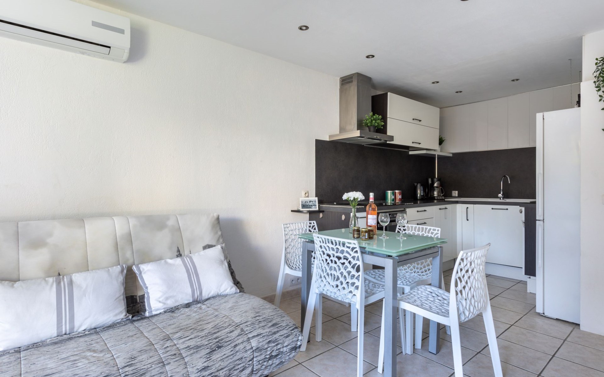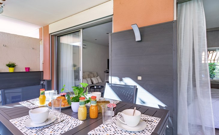 Appartementhaus "Le Marbeau". Im Ortsteil Cros de Cagnes, ruhige Lage in einem Wohnquartier, 550 m vom Meer, 500 m vom Strand, Richtung Süden. Lebensmittelgeschäft 450 m, Supermarkt 450 m, Einkaufszentrum 3.5 km, Restaurant 700 m, Bar, Bäckerei 400 m, Café 260 m, Bahnstation "Gare de Cros de Cagnes" 1 km, Steinstrand "Plage publique" 550 m. Golfplatz (18 Loch) 14 km, Segelschule 1.4 km, Tennis 2 km, Reitstall 8 km, Radweg 750 m. Nahe gelegene Sehenswürdigkeiten: Chateau Grimaldi 1.8 km, St Paul de Vence 7 km, Marineland Antibes 6 km, Nice 11 km, Cannes 21 km, Monaco 31 km. Bekannte Seen in der Umgebung sind gut erreichbar: Lac St Cassien 50 km. Wandergebiete: Col de Vence 20 km, Parc national du Mercantour 62 km.