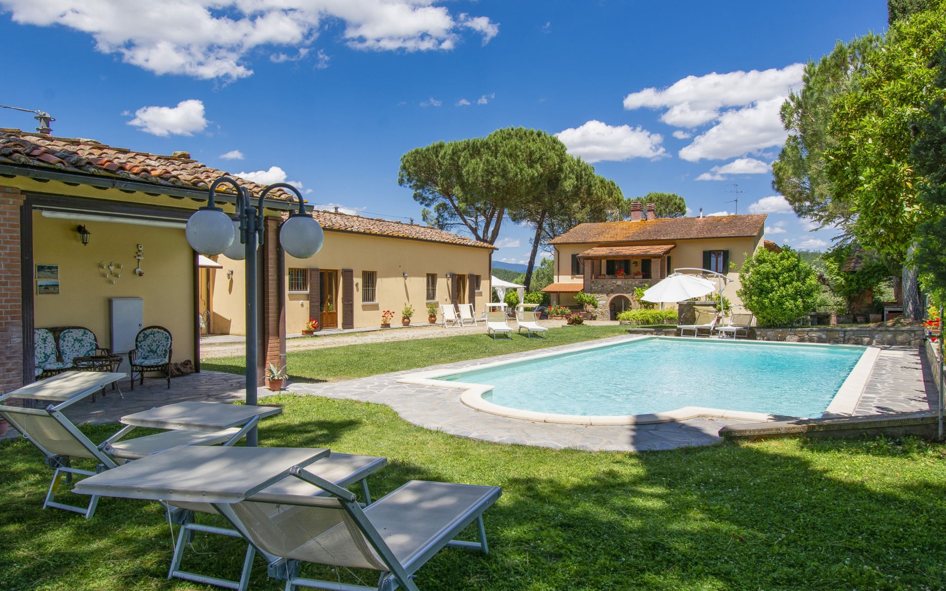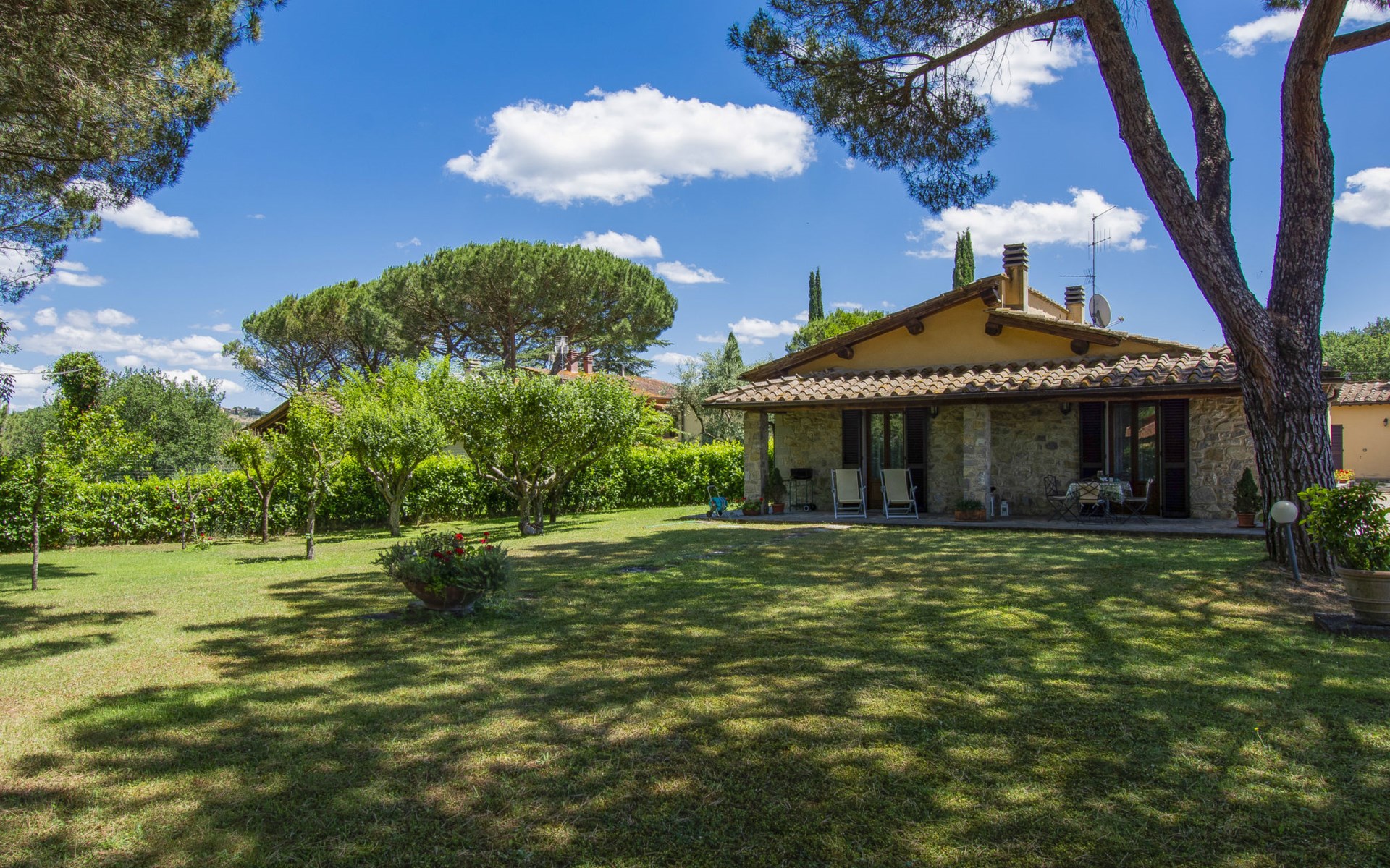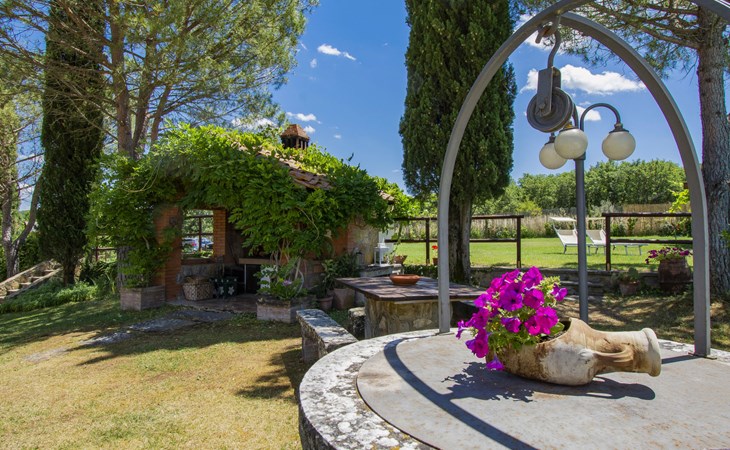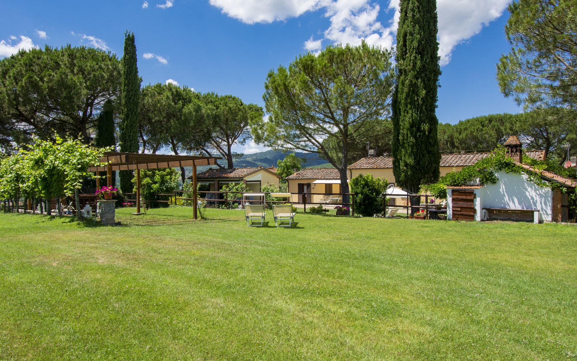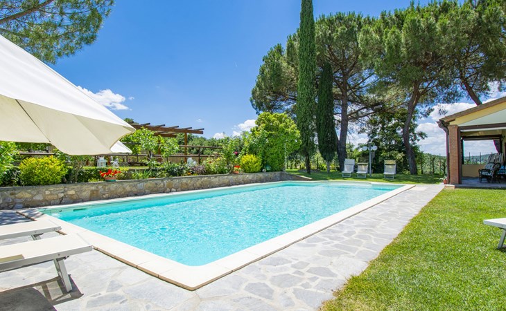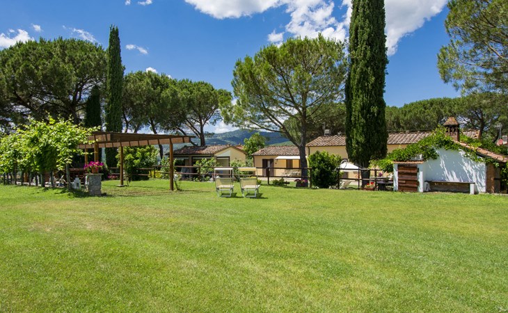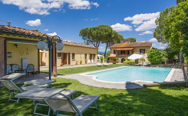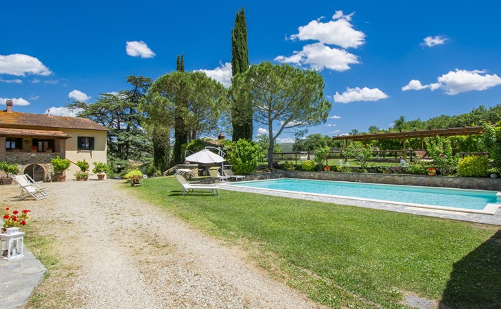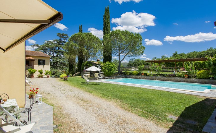 Residenz "Cedri Alti", umgeben von Bäumen und Feldern. 4 Häuser in der Residenz. Oberhalb von Gavignano in Val d'Ambra, 5 km vom Zentrum von Bucine, 1 km vom Zentrum von Ambra, 32.5 km vom Zentrum von Arezzo, ruhige, erhöhte Lage. Zur Mitbenutzung: Grundstück 14 ha, Garten 6'000 m2 (eingezäunt) mit Rasen und Bäumen, Wiese, Obstgarten, Schwimmbad (12 x 6 m, 70 - 240 cm tief, saisonale Verfügbarkeit: 15.Apr. - 31.Okt. Öffnungszeiten Schwimmbad: 00:01-24:00). Aussendusche, Poolhaus, Tischtennis, Terrasse, Gartenmöbel, Grill. Im Hause: Tischtennis, Tischfussball. Parkplatz. Einkaufsgeschäft 1.4 km, Supermarkt 7 km, Bushaltestelle 500 m, Bahnstation "Bucine" 3 km, Sandstrand "Castiglione della Pescaia" 125 km, Freibad 1 km. Tennis 1 km, Reitstall 1 km. Nahe gelegene Sehenswürdigkeiten: Siena 40 km, Montepulciano 55 km, Firenze 65 km, Equestrian Center Arezzo 25 km. Bitte beachten: geeignet für Familien.